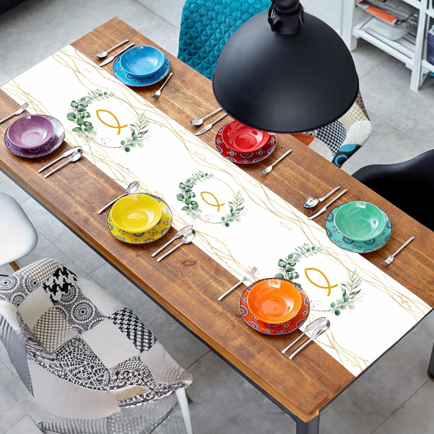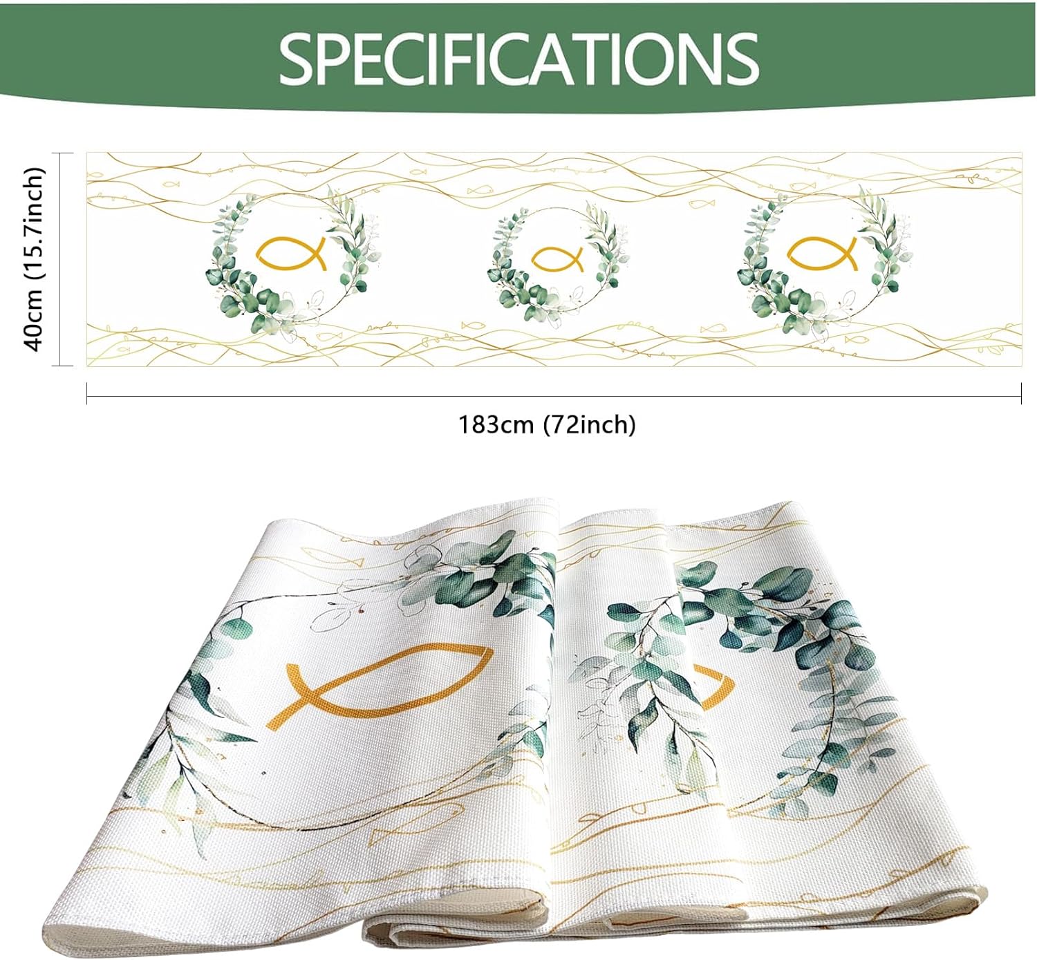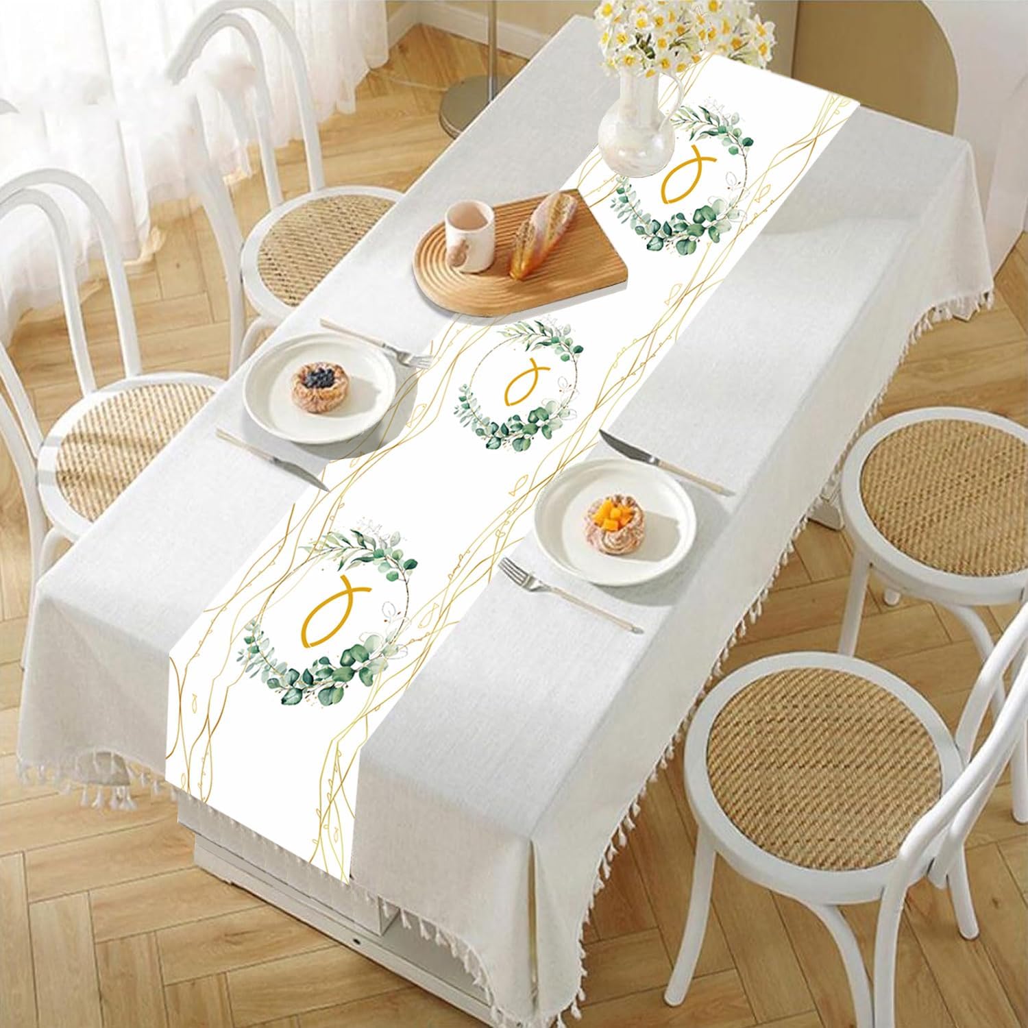 Dimensioni della decorazione della tavola: 1 runner da tavolo per battesimo. Caratteristiche decorazione tavolo comunione e cresima: 183 x 40 cm. Si prega di consentire un errore di 1-2 cm dovuto alla misurazione manuale. È adatto per la maggior parte dei tavoli domestici di diverse dimensioni. Design del pesce per il battesimo: pesce dorato nella corona, la tovaglia per comunione e cresima presenta colori classici e vivaci e un motivo stampato unico, che esalta l'atmosfera festosa. Materiale di alta qualità: il nostro runner da tavolo decorativo per la prima comunione e il battesimo è realizzato in lino bianco spesso e resistente, non si sgualcisce o si restringe facilmente, non sbiadisce mai. Non graffia il tuo tavolo e protegge il tuo tavolo dai graffi. Questi runner da tavolo sono realizzati con la massima cura e precisione, il che consente a questi runner da tavolo in lino di mantenere bene la forma e renderli durevoli. Ampio utilizzo: i runner da tavola per battesimo, comunione e cresima sono bellissime decorazioni per battesimi, comunioni, cresime, baby shower. Sono perfetti come decorazione per le cene. Riutilizzabile e facile da pulire: lavabile in lavatrice e stendere il runner da tavolo ad asciugare. Resistente e facile da pulire, rimane come nuovo dopo ogni lavaggio.