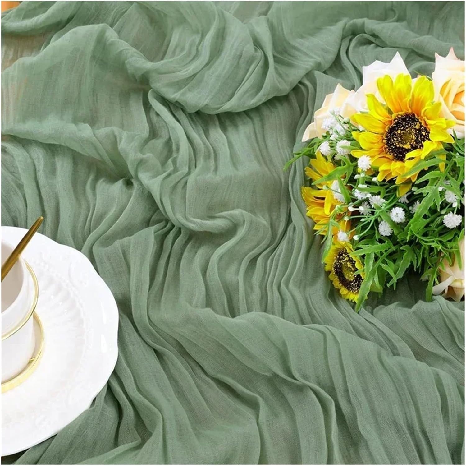 Runner da Tavola in Garza Runner da tavola for Tavolo da Pranzo in Garza da 3 Pezzi, Decorazione Rustica for la tavola, for Feste di Matrimonio, Spiaggia di Campagna(Green,90X180cm)
