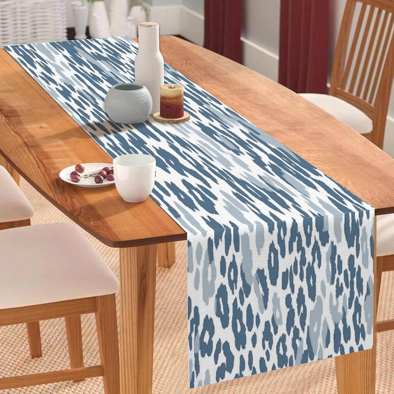 Materiale della tovaglia: il nostro runner da tavola è realizzato in poliestere. Sono resistenti e progettati per un uso a lungo termine. Sono cuciti saldamente, morbidi, leggeri e resistenti al calore, proteggono efficacemente il piano del tavolo Elegante decorazione per la casa: i nostri runner da tavola splendidamente stampati aggiungono un tocco di eleganza al tuo arredamento. Sono adatti per tavoli da pranzo in cucina, matrimoni, feste a tema, vacanze e celebrazioni per eventi speciali Dimensioni perfette: le nostre tovaglie misurano 33 x 182,9 cm, ideali per tavoli da pranzo per 4-6 persone. Si adattano perfettamente al tuo tavolo, migliorando la tua esperienza culinaria Facile da pulire: le tovaglie sono facili da pulire. Possono essere lavati in lavatrice con ciclo delicato, quindi asciugati a bassa temperatura o asciugati all'aria. Questo ti fa risparmiare tempo Regalo perfetto: i motivi unici ed eleganti completano l'arredamento della tua casa. Un ottimo regalo per familiari e amici