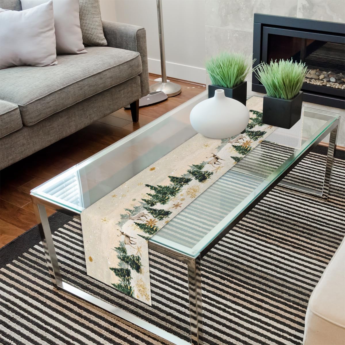 Runner da tavola natalizio con cervi e fiocchi di neve, 33 x 274 cm, decorazione per la casa e le feste