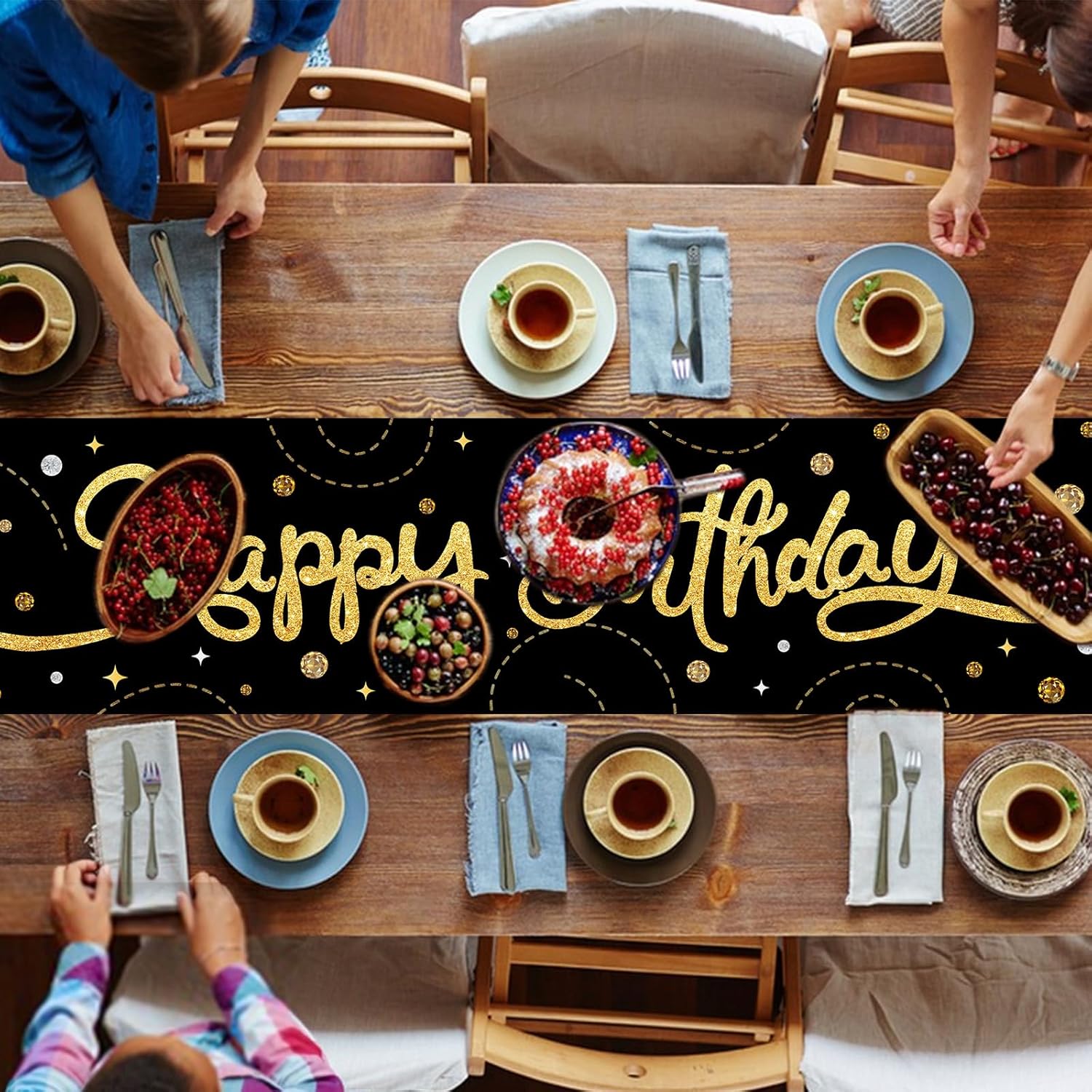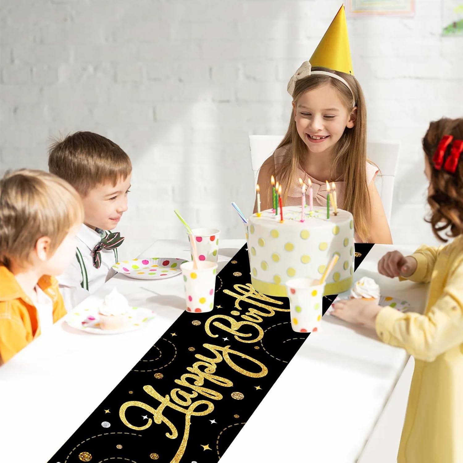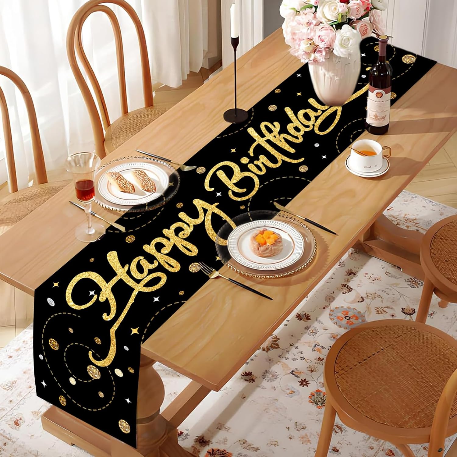 Runner da tavolo nero per compleanno: riceverete una tovaglia di compleanno di dimensioni 180 x 35 cm con scritta dorata. Con la scritta "Happy Birthday", questa decorazione di compleanno è adatta per tavoli da 6 a 8 posti ed è ideale per feste per bambini e adulti. Perfetto come runner da tavolo per compleanno o decorazione di compleanno Materiale: questa tovaglia di compleanno è realizzata in tessuto Oxford. È impermeabile, antistrappo e resistente e protegge il tavolo da graffi, macchie e danni al calore. Ideale per decorazioni di compleanno, mantiene il colore e la forma originali anche dopo numerosi lavaggi Facile da pulire: basta arrotolarlo e lavarlo dopo la festa. Non si restringe, non perde pelucchi e non sbiadisce, perfetto per decorazioni di compleanno riutilizzabili, colore nero Uso: perfetto per cucina, sala da pranzo, feste e occasioni speciali. Può essere utilizzato anche come runner da tavolo nero o per decorare comò, tavolini, supporti TV e molto altro ancora Design decorativo: con il suo design unico con colori vivaci e motivi vivaci, è riutilizzabile e aggiunge un tocco di eleganza a qualsiasi tavolo di compleanno o decorazione della casa