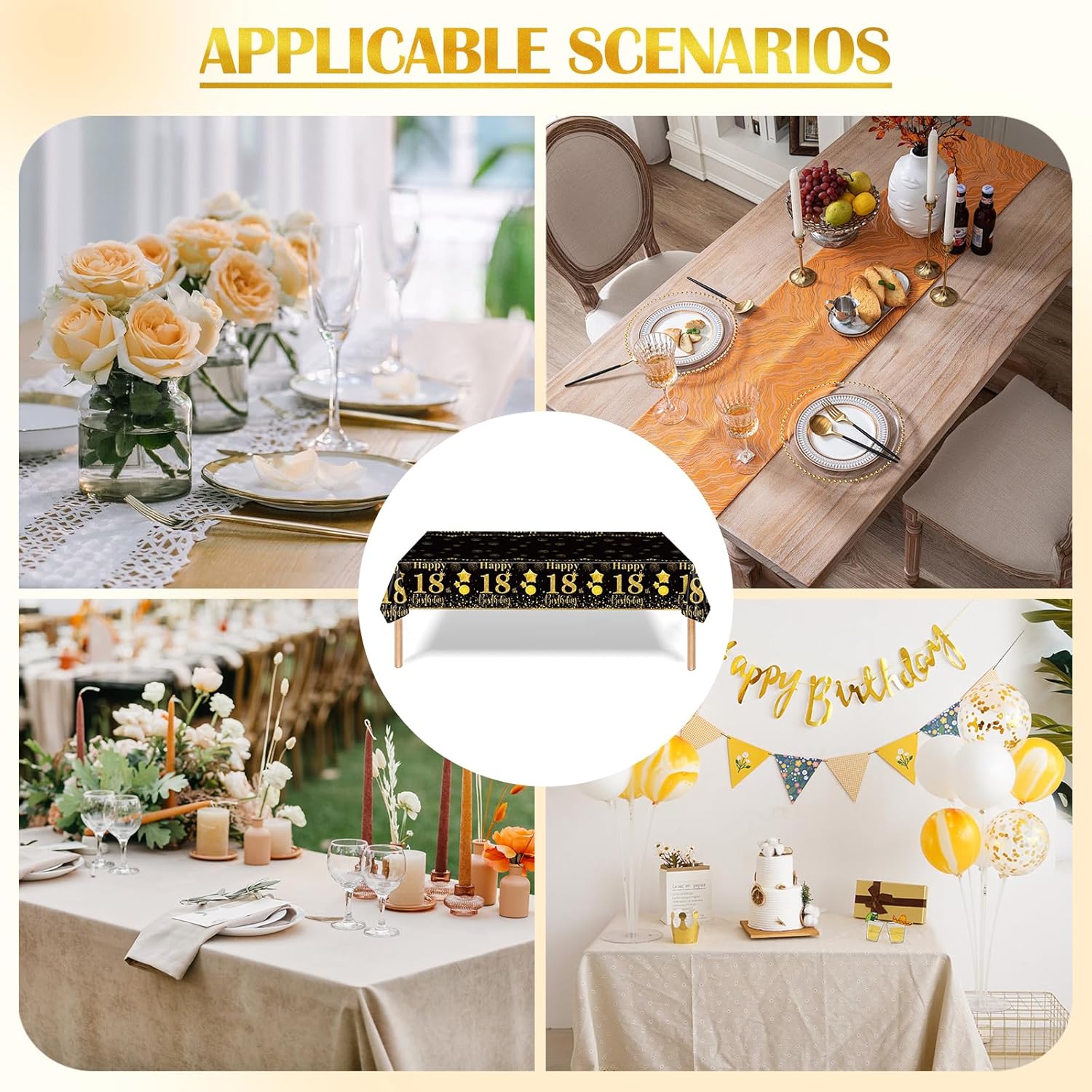 Dimensioni Adatte al Tavolo: questo runner da tavola Happy Birthday nero e dorato misura 137 x 274 cm, è adatto a un tavolo che può ospitare 4-6 persone, si adatta meglio al tuo tavolo e ti offre una piacevole esperienza culinaria. Design Elegante: il nostro runner da tavola Happy Birthday presenta un design di lusso con eleganti elementi neri e dorati. Il runner da tavola presenta numeri luminosi, stelle, palloncini e torta. Materiale Impermeabile: le bandierine da tavola sono realizzate in plastica, un tessuto impermeabile che resiste facilmente alle macchie e agli schizzi, ideale per le feste di compleanno. Comodo da Usare: questo runner da tavola per compleanni può proteggere il tuo tavolo da prato da graffi, macchie, versamenti e usura imprevisti, decorando al contempo la tua cucina, la tua festa e il tuo banchetto. Ampia Applicazione: il nostro runner da tavola non solo può decorare il tavolo da prato, ma anche il comò, il tavolino da caffè, il mobile TV, la scarpiera, il letto, ecc. Adatto per matrimoni, compleanni, picnic e altre occasioni speciali.
