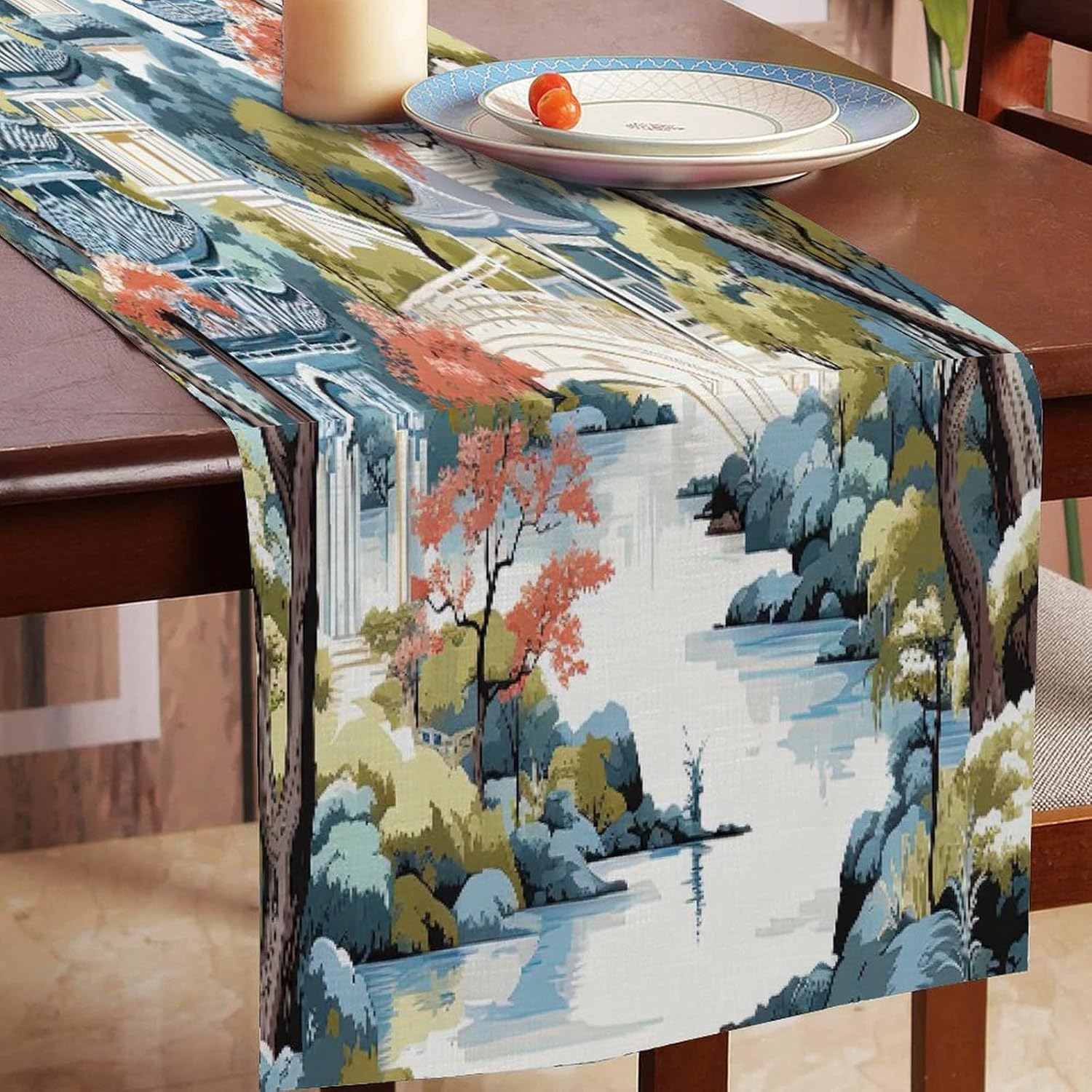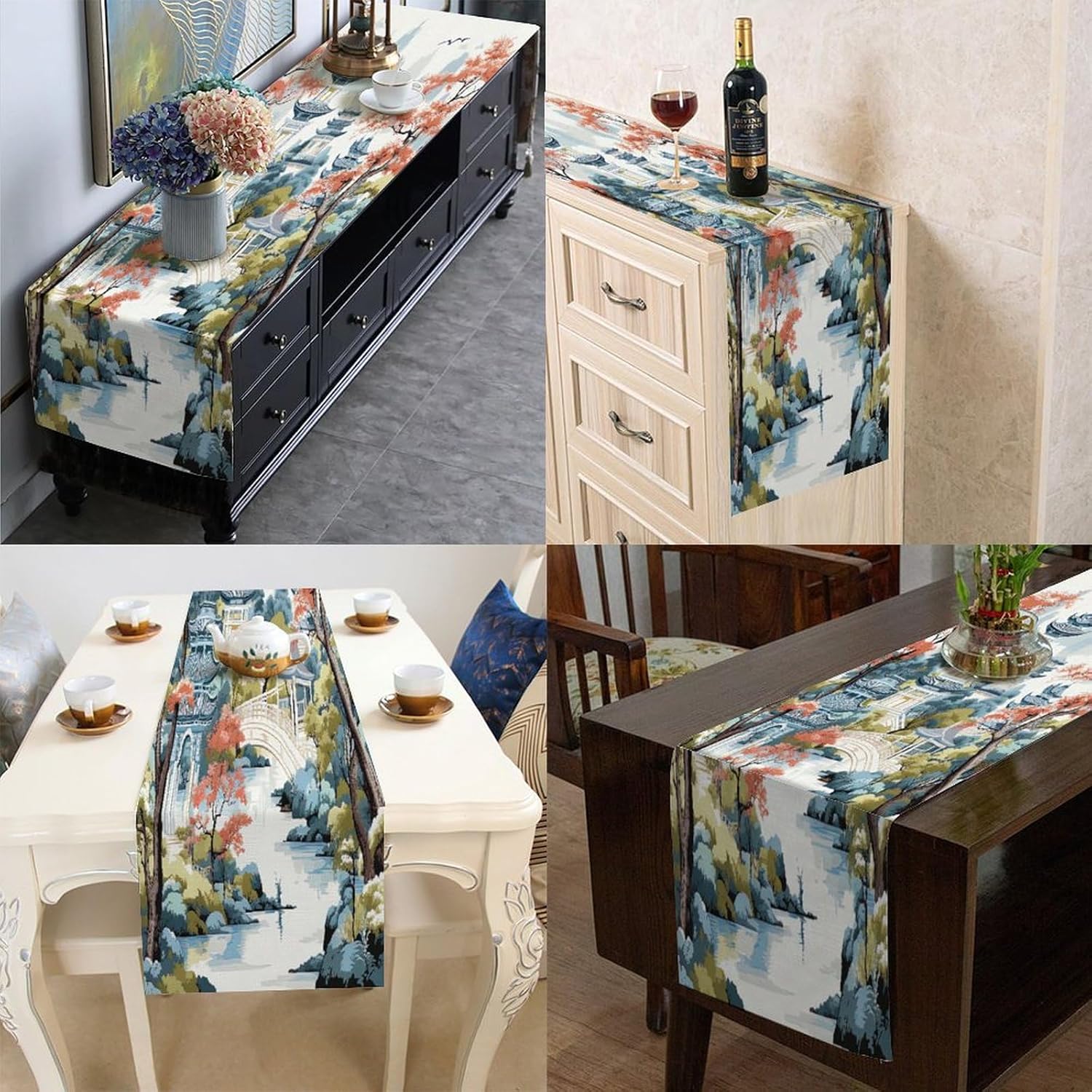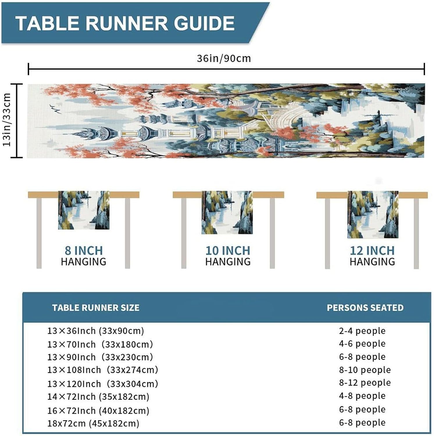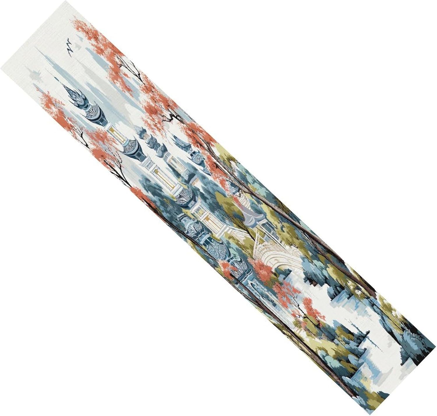 Runner da tavolo cineserie Pagoda corallo bianco asiatico 13x36 pollici tovaglietta decorativa per cucina sala da pranzo festa riunione di famiglia vacanza runner decorazione
