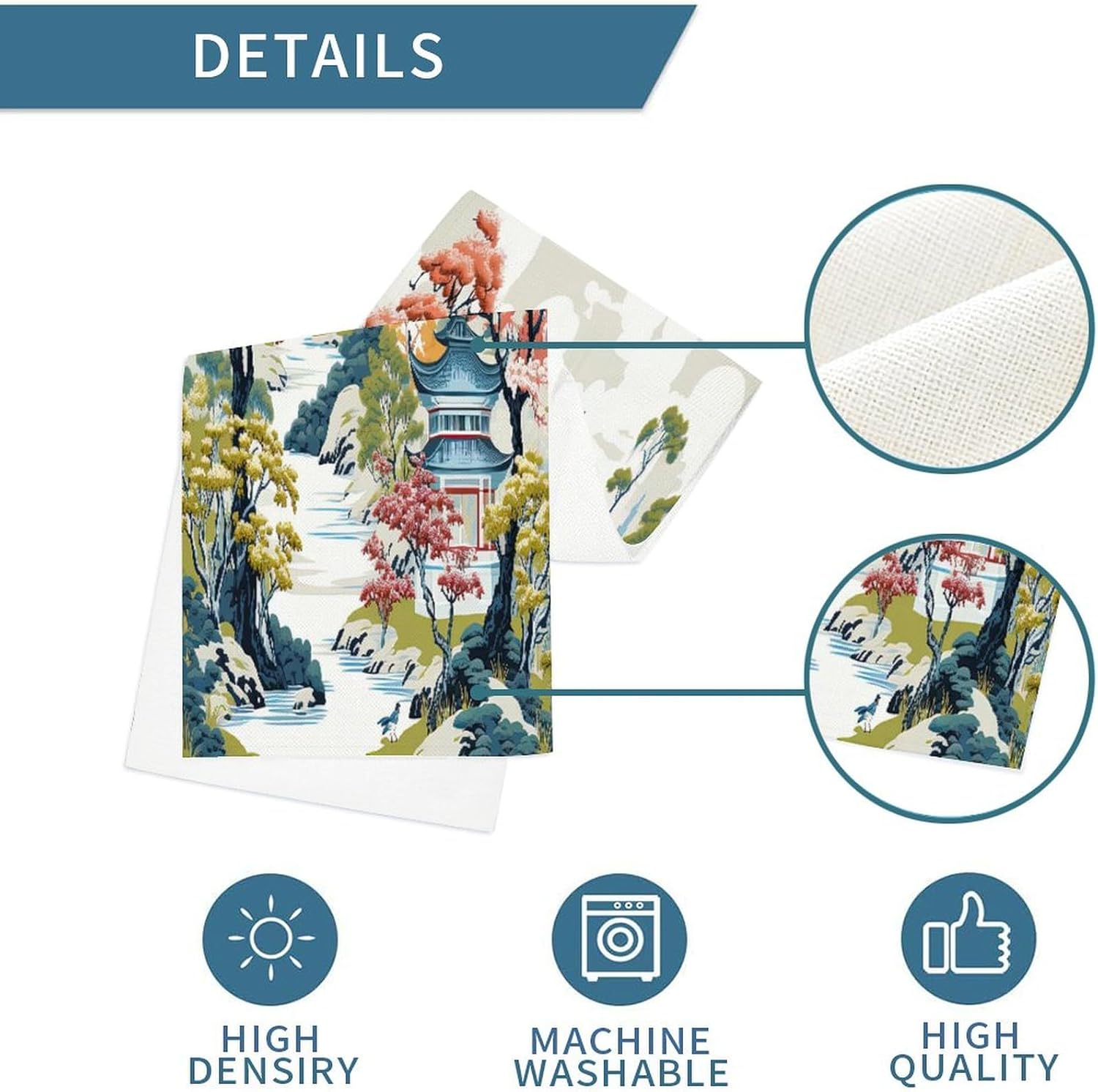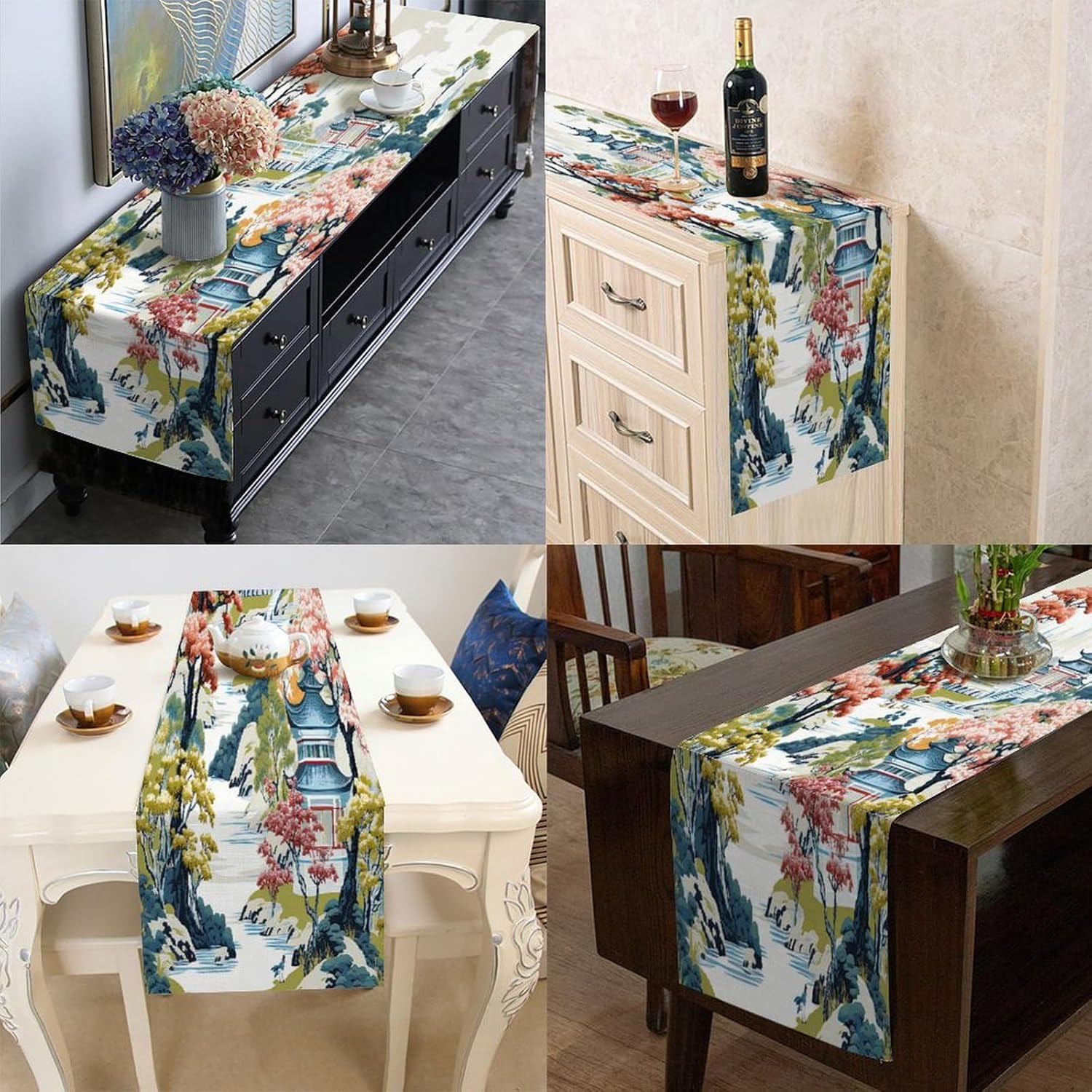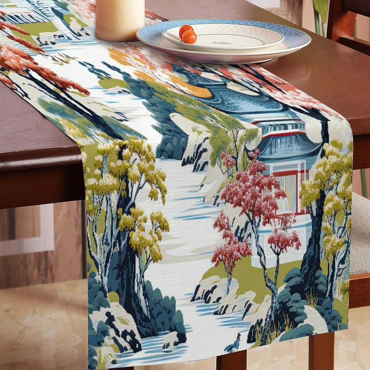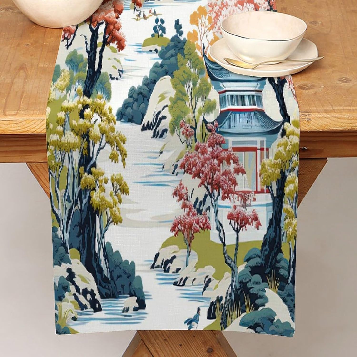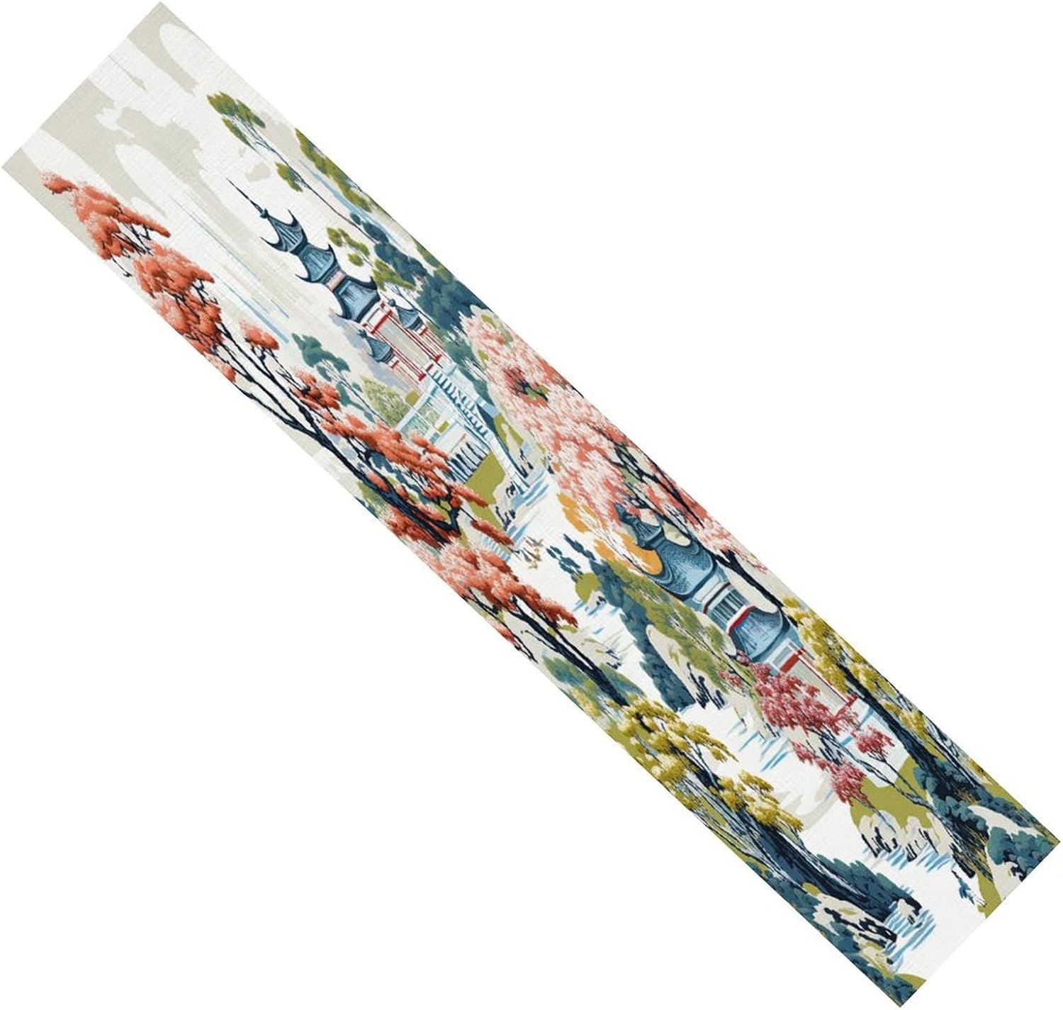 Runner da tavolo cineserie Pagoda Runner da tavolo asiatico corallo bianco 13x12 pollici Tappetino decorativo per cucina Sala da pranzo Feste Riunioni di famiglia Decorazione runner da tavola