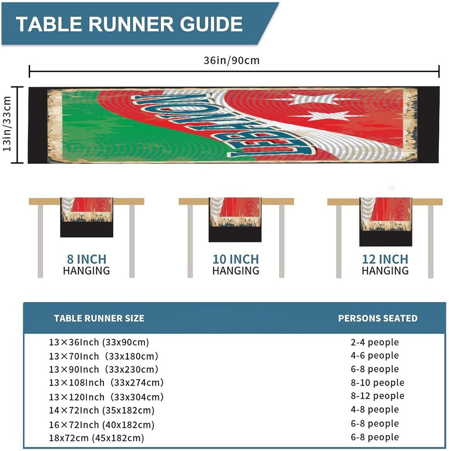 Runner da tavolo con bandiera del Libano, decorazione stagionale per cucina e tavolo da pranzo, decorazione per interni ed esterni, decorazione per casa, sala da pranzo e feste, 33 x 91 cm
