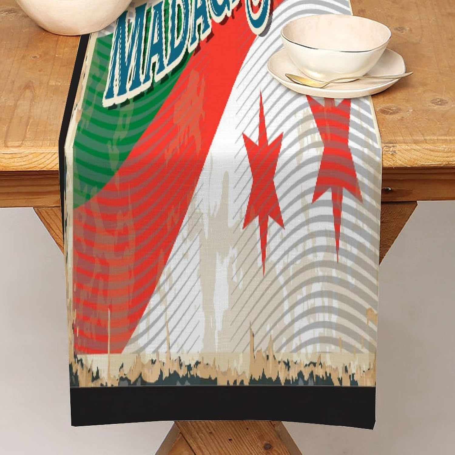 Runner da tavolo con bandiera del Madagascar, decorazione stagionale per cucina, tavolo da pranzo, decorazione per interni ed esterni, sala da pranzo per feste, 33x308 cm