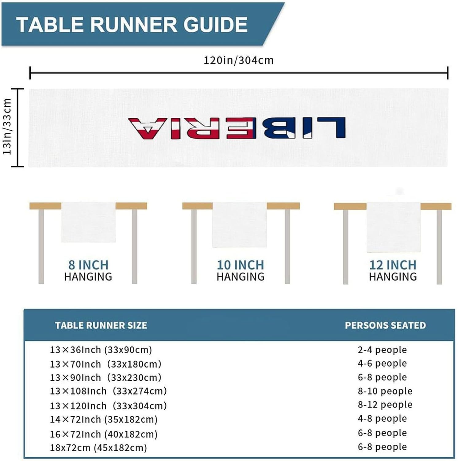 Runner da tavolo con bandiera della Liberia, runner da tavolo per le vacanze, decorazione da tavolo per cucina, tavolo da pranzo, decorazione per la casa e le feste, 33 x 305 cm