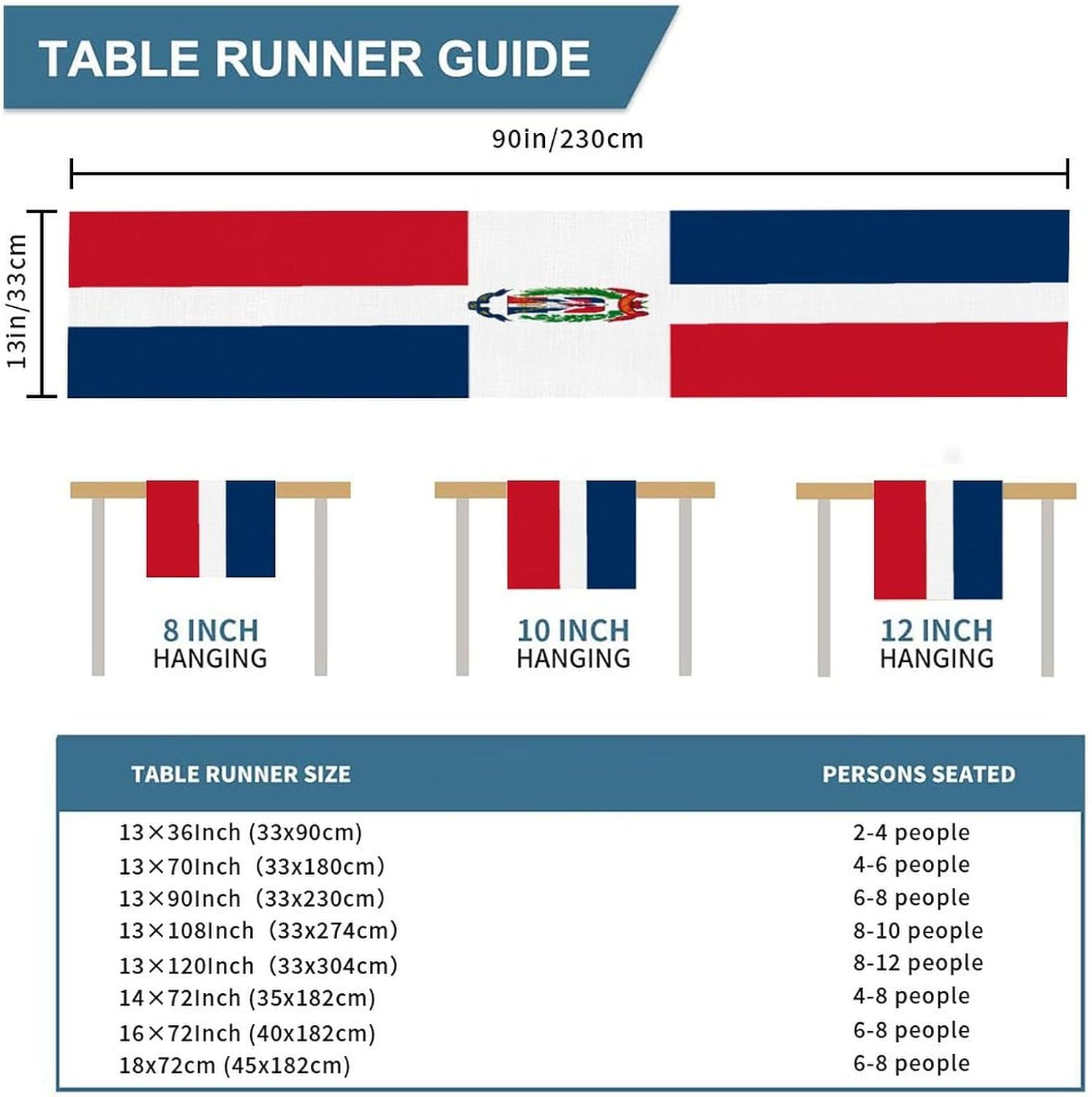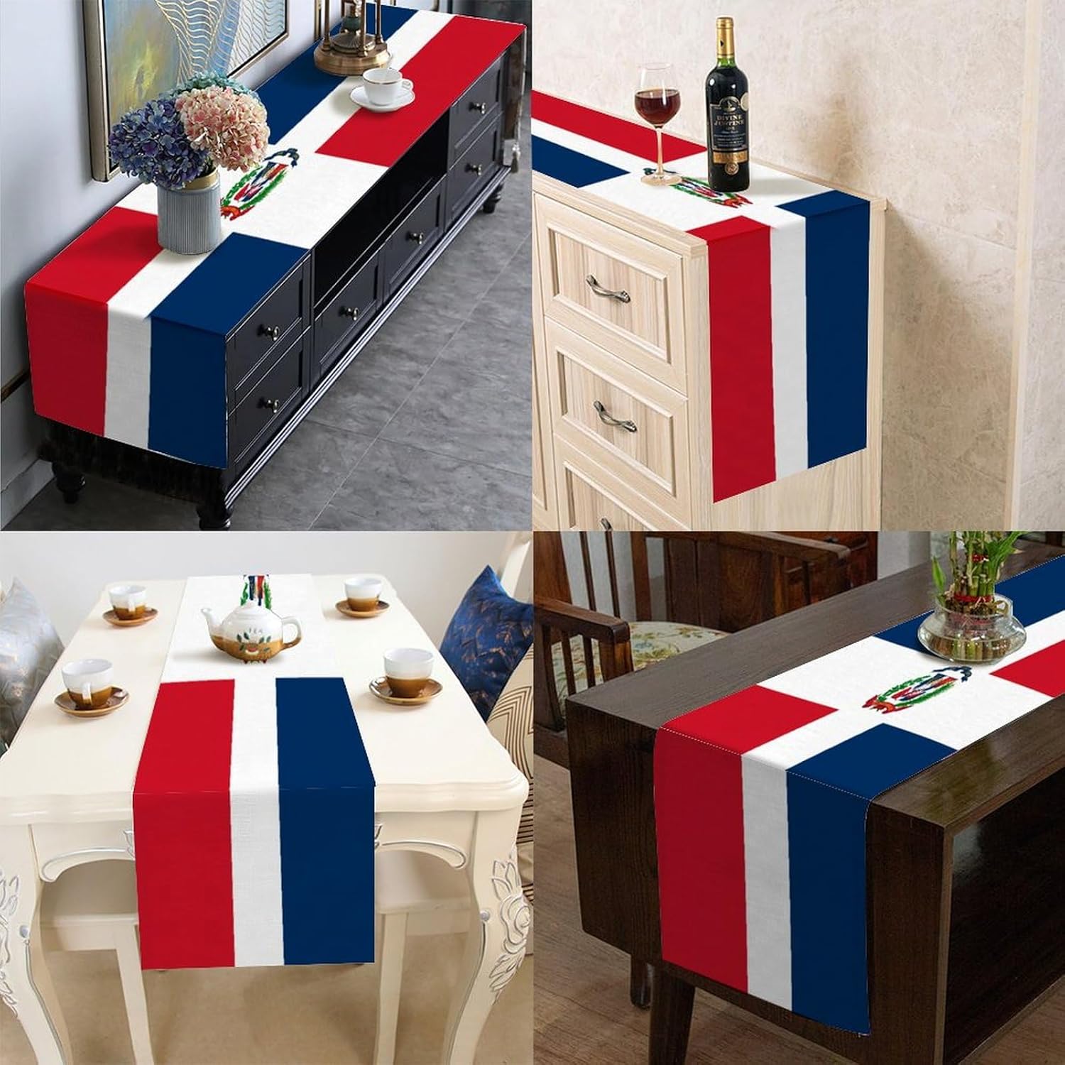 Runner da tavolo con bandiera della Repubblica Dominicana, decorazione stagionale per cucina e tavolo da pranzo, decorazione per interni ed esterni, decorazione per casa, sala da pranzo, feste, 33 x