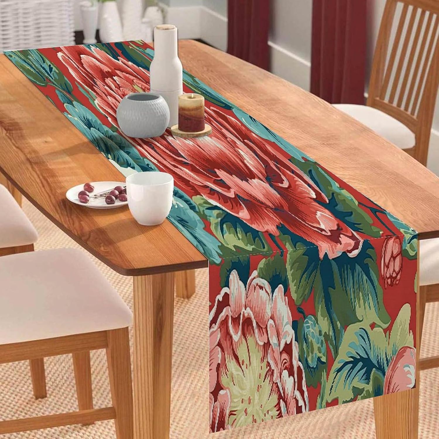 Dimensioni: 304 x 33 cm. Materiale: realizzato in morbido lino di cotone, comodo e durevole, resistente all'usura. Protegge la superficie del tavolo per la decorazione quotidiana della tavola, proteggendo la superficie del tavolo da pentole calde, graffi, danni causati dal calore. [Grande decorazione]: i runner da tavola sono un modo veloce, facile ed economico per aggiornare il tavolo della sala da pranzo, la camera da letto, il comò. Sarà il tuo compagno perfetto per colazione, pranzo e cena. Questa tovaglia dal design elegante aumenterà il fascino del tavolo da pranzo. [Uso multiuso]: alla ricerca di un runner da tavola per più occasioni? Non cercare più! Questo runner da tavola può andare dal ringraziamento alla festa di Natale ed è ottimo anche per una serata estiva informale. Sarà anche un regalo perfetto per i tuoi cari per l'inaugurazione della casa, il Ringraziamento o Natale. Ampia applicazione: caratterizzato da un motivo elegante con un bel bordo con nappe, sembra bello e vintage. Adatto per l'uso quotidiano, balli, matrimoni, feste o qualsiasi vacanza speciale. Ideale per uso interno ed esterno, come cucina, giardino, tè pomeridiano, caffè, cene, balcone, potlucks.