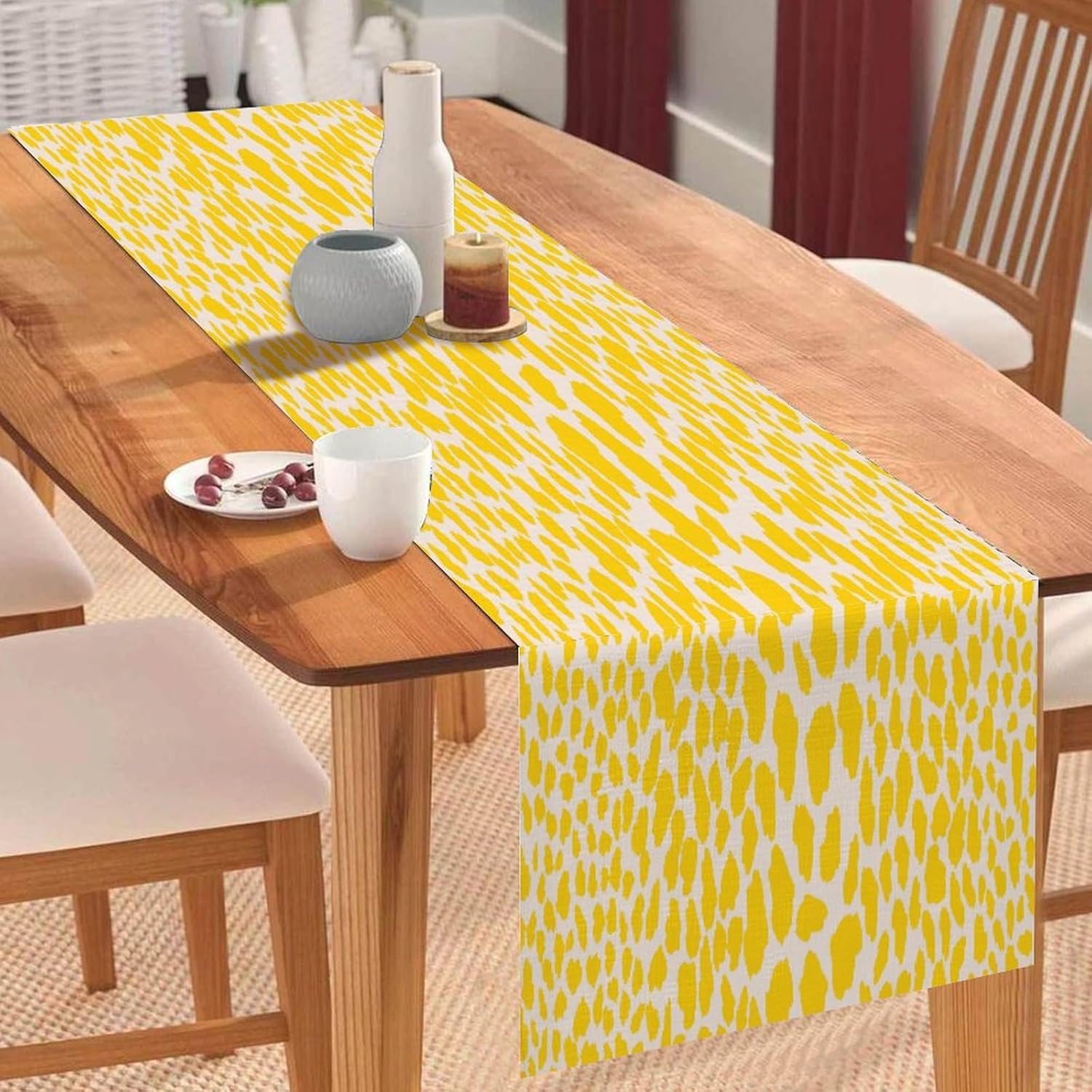 Dimensioni: 304 x 33 cm. Materiale: realizzato in morbido lino di cotone, comodo e durevole, resistente all'usura. Protegge la superficie del tavolo per la decorazione quotidiana della tavola, proteggendo la superficie del tavolo da pentole calde, graffi, danni causati dal calore. [Grande decorazione]: i runner da tavola sono un modo veloce, facile ed economico per aggiornare il tavolo della sala da pranzo, la camera da letto, il comò. Sarà il tuo compagno perfetto per colazione, pranzo e cena. Questa tovaglia dal design elegante aumenterà il fascino del tavolo da pranzo. [Uso multiuso]: alla ricerca di un runner da tavola per più occasioni? Non cercare più! Questo runner da tavola può andare dal ringraziamento alla festa di Natale ed è ottimo anche per una serata estiva informale. Sarà anche un regalo perfetto per i tuoi cari per l'inaugurazione della casa, il Ringraziamento o Natale. Ampia applicazione: caratterizzato da un motivo elegante con un bel bordo con nappe, sembra bello e vintage. Adatto per l'uso quotidiano, balli, matrimoni, feste o qualsiasi vacanza speciale. Ideale per uso interno ed esterno, come cucina, giardino, tè pomeridiano, caffè, cene, balcone, potlucks.