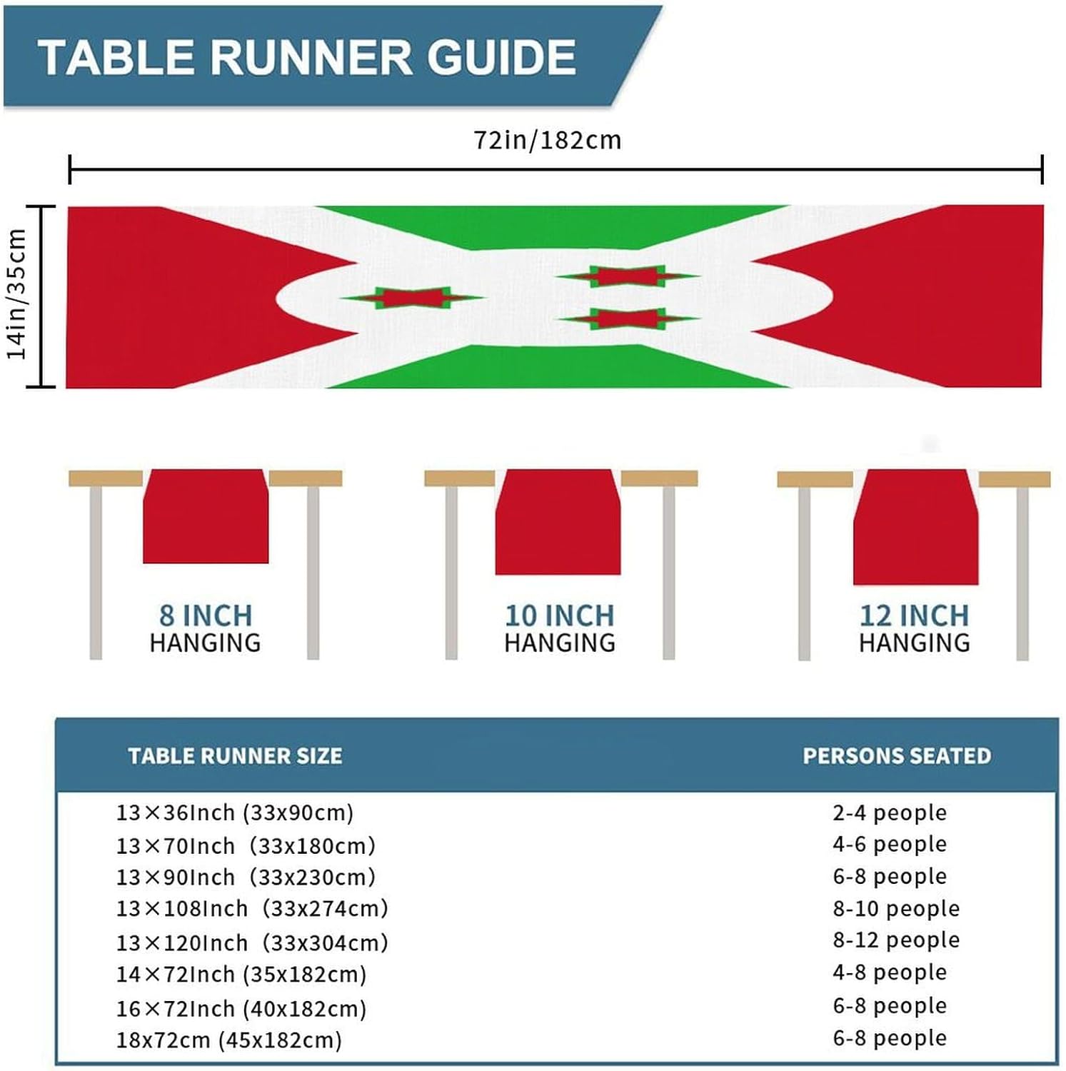 Runner da tavolo con bandiera nazionale del Burundi, decorazione stagionale per cucina, tavolo da pranzo, decorazione per interni ed esterni, sala da pranzo per feste, 35,6 x 178,1 cm