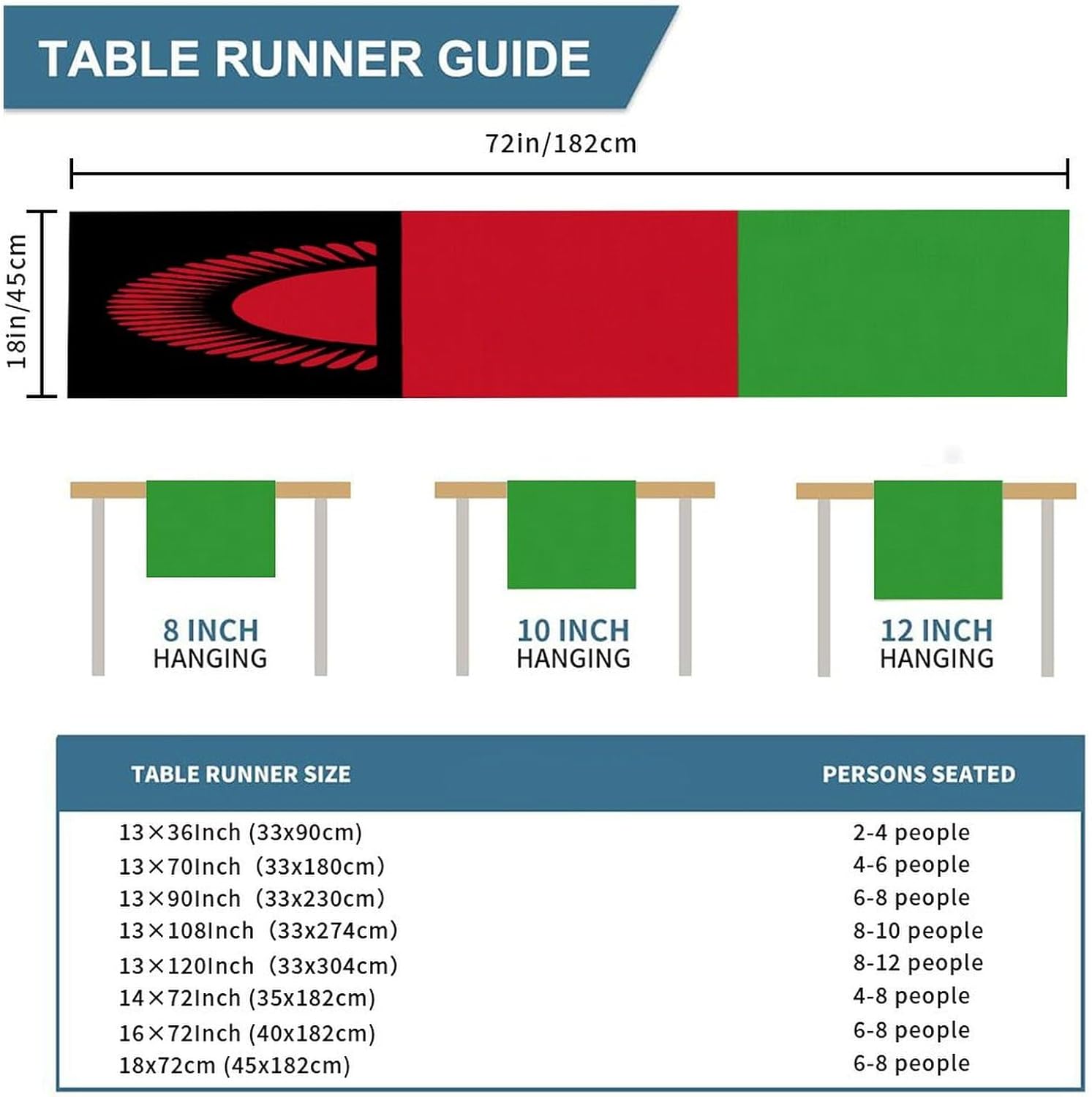 Runner da tavolo con bandiera nazionale del Malawi, decorazione stagionale per la cucina, tavolo da pranzo, decorazione per interni, esterni, casa, sala da pranzo, festa, 18x78 pollici