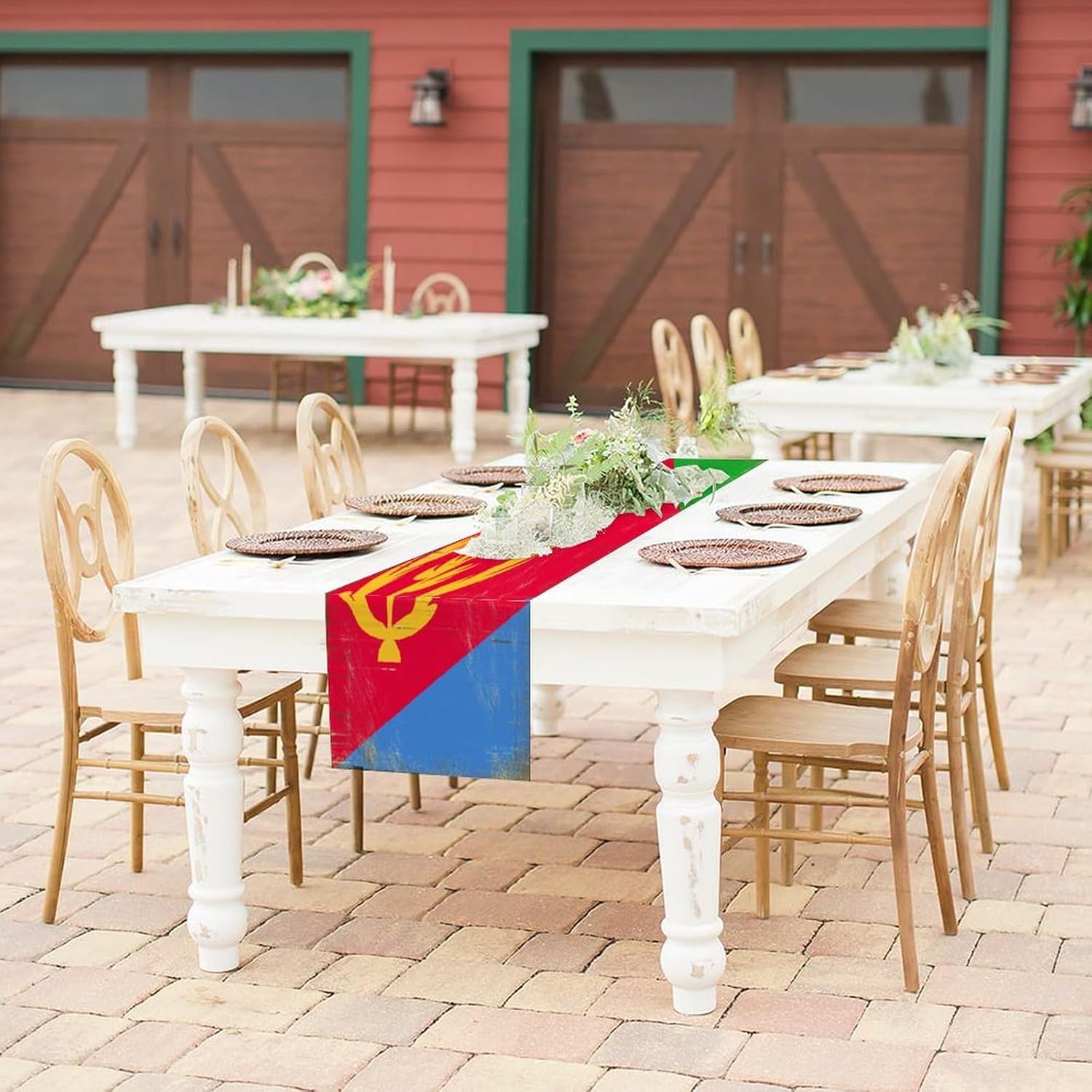 Runner da tavolo con bandiera nazionale dell'Eritrea stile vintage 13x108 pollici Runner da tavolo da caffè dell'Eritrea in cotone e lino, morbido runner da tavola per feste, camere da letto, comò, decorazione