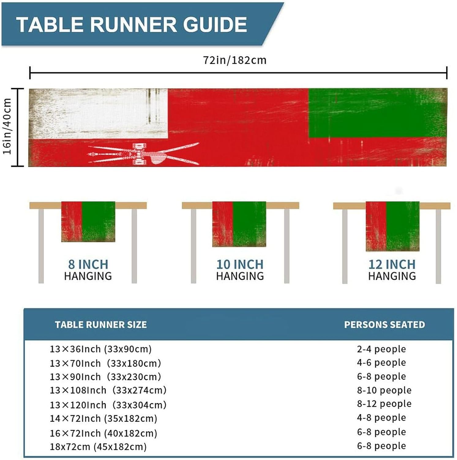 Runner da tavolo con bandiera nazionale dell'Oman stile vintage, 40,6 x 182 cm, runner da tavolo per divano in cotone e lino, morbido runner da tavola per feste, camera da letto, comò, decorazione