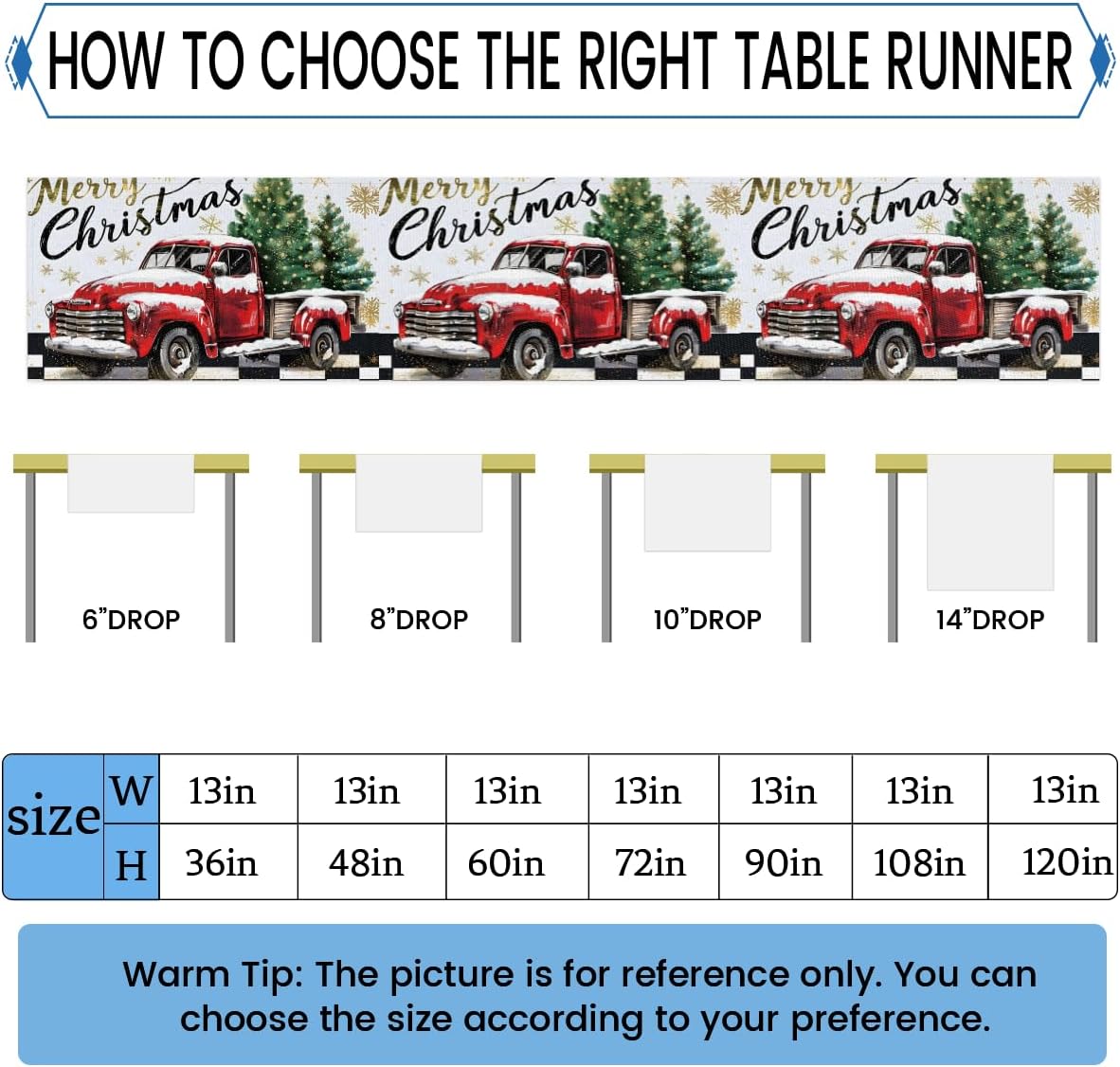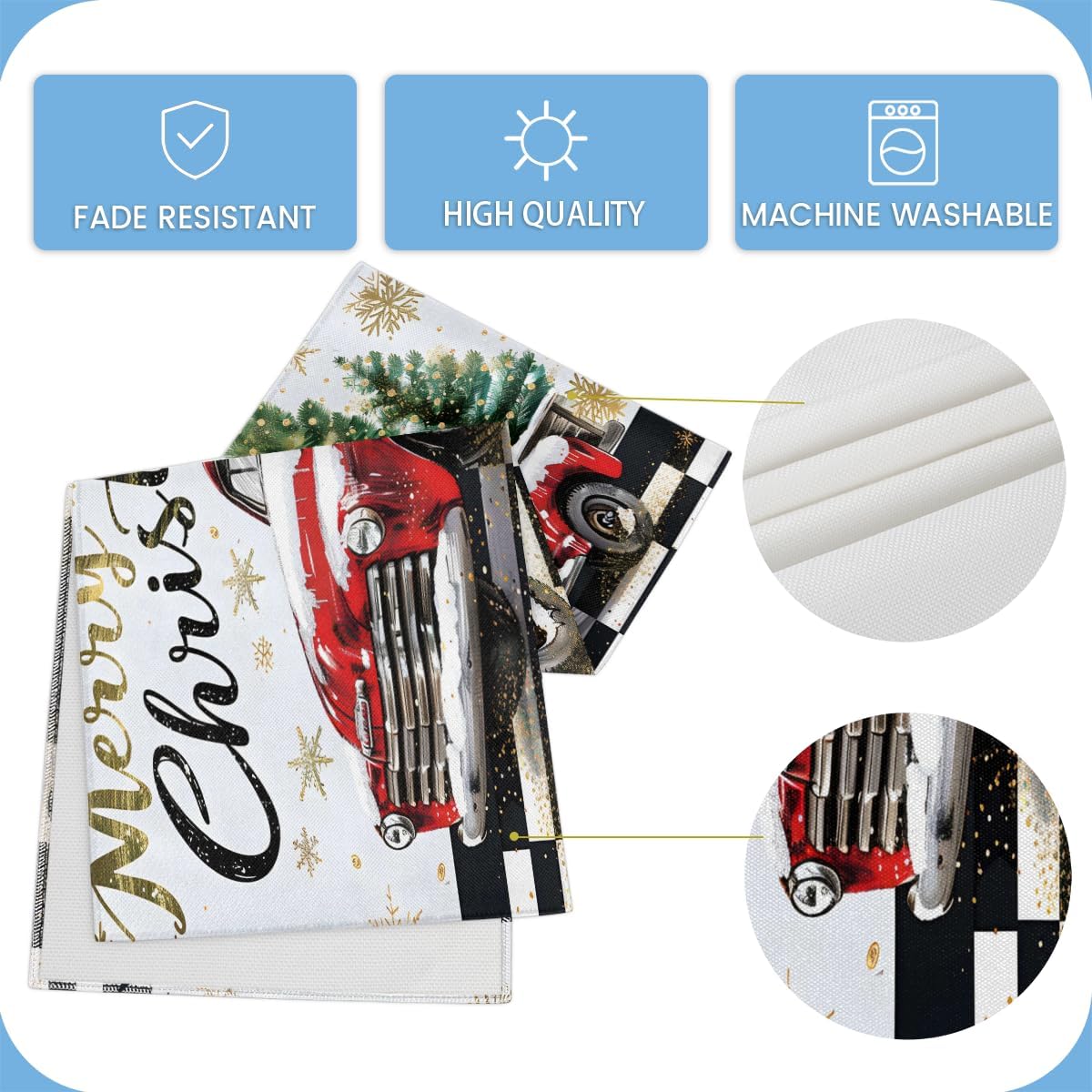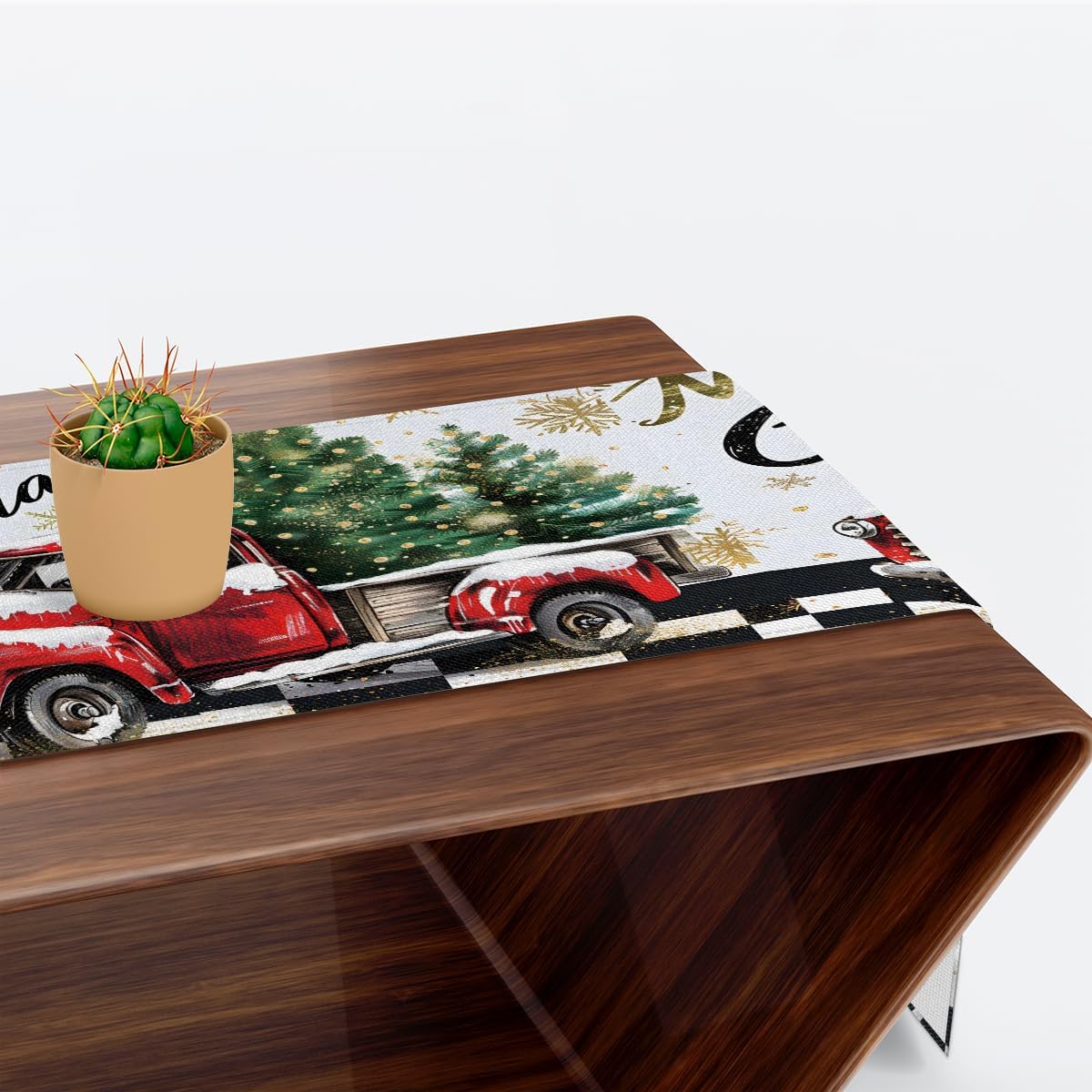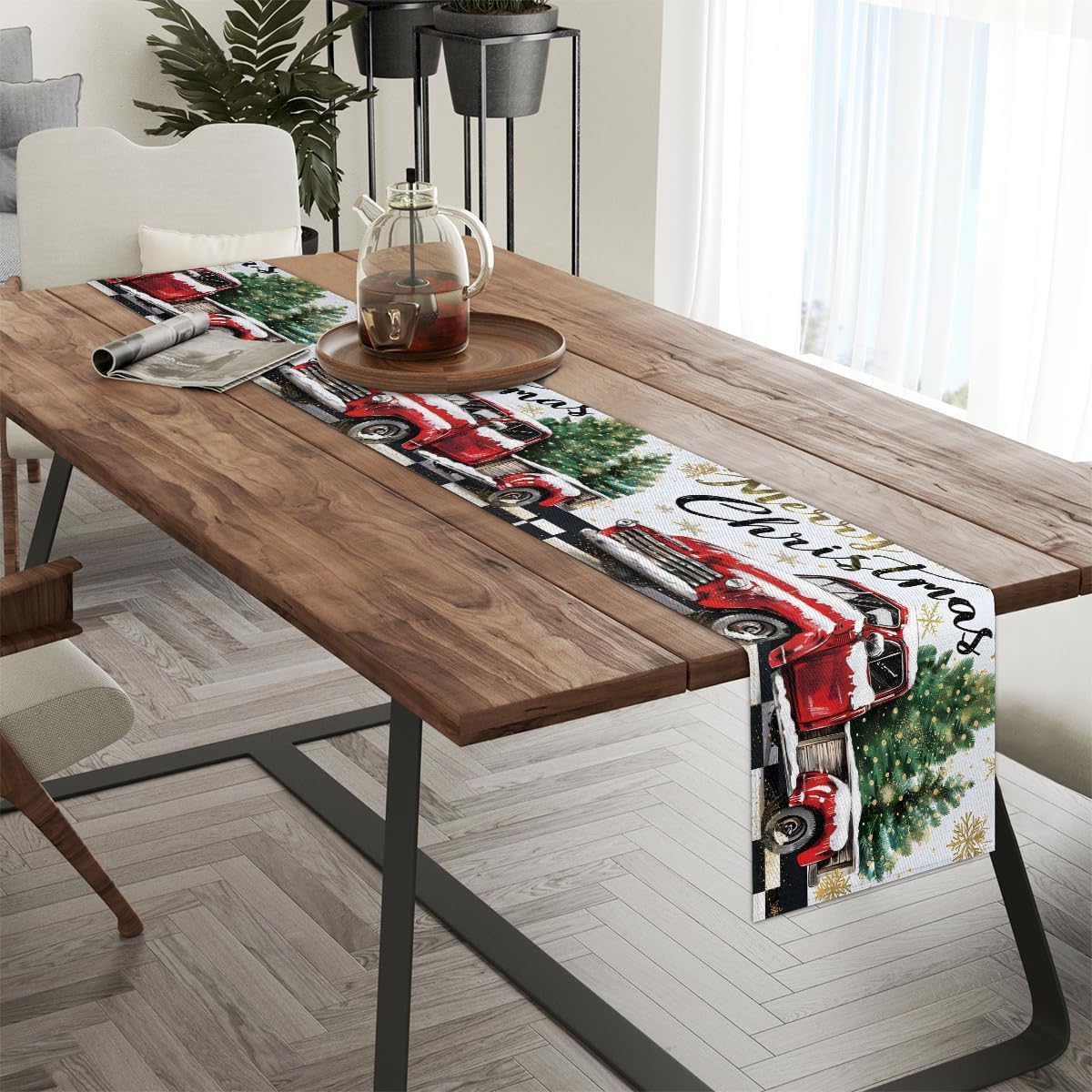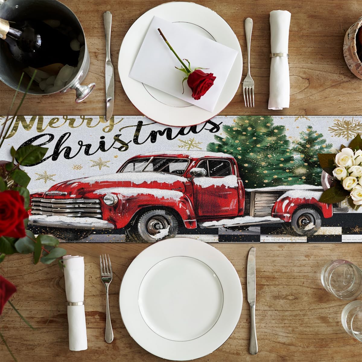 Runner da tavolo con camion rosso a quadri con scritta Merry Christmas, 33 x 183 cm, decorazione per tavolo da pranzo per la casa e le feste