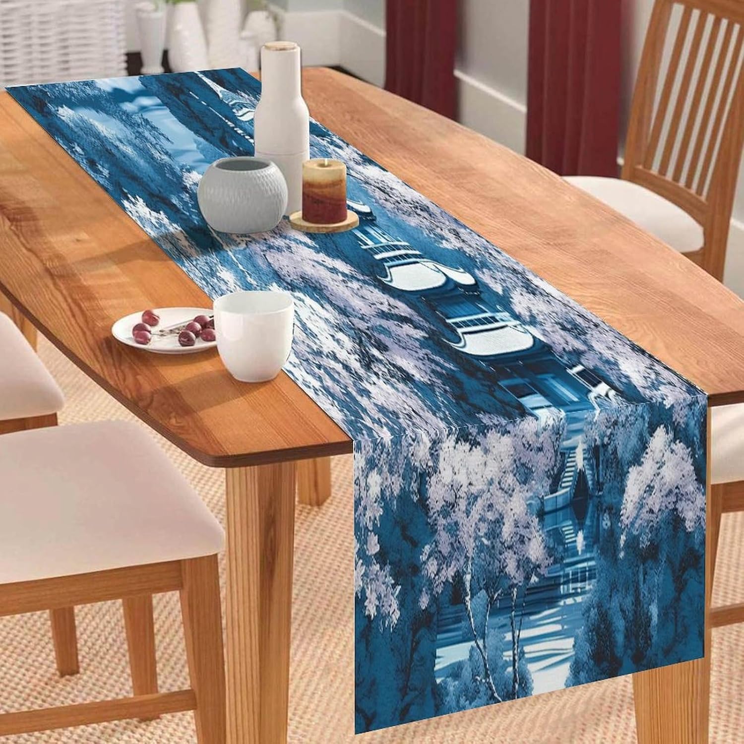 Runner da tavolo con foglie di Natale, 33 x 183 cm, decorazione per tavolo da pranzo per la casa e le feste