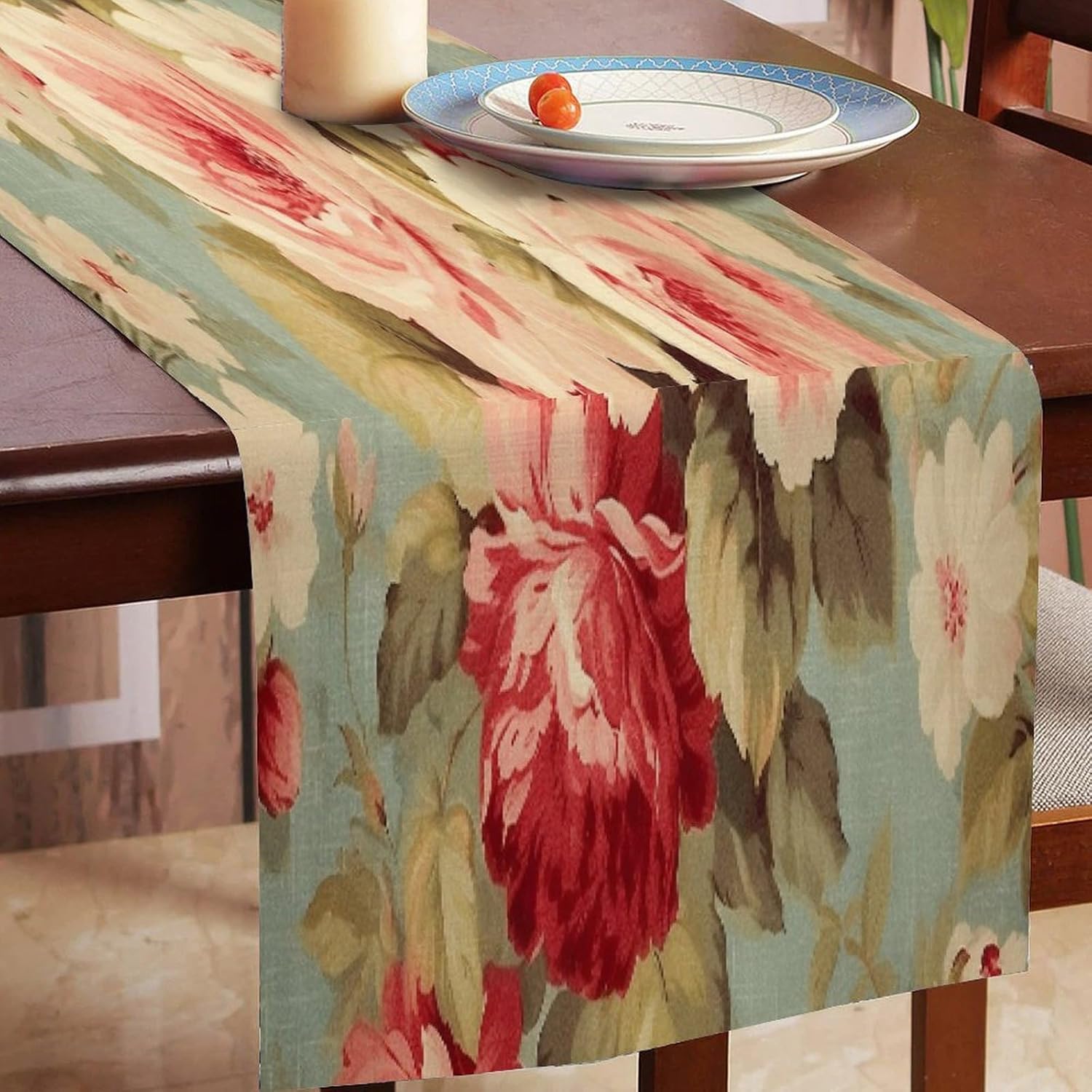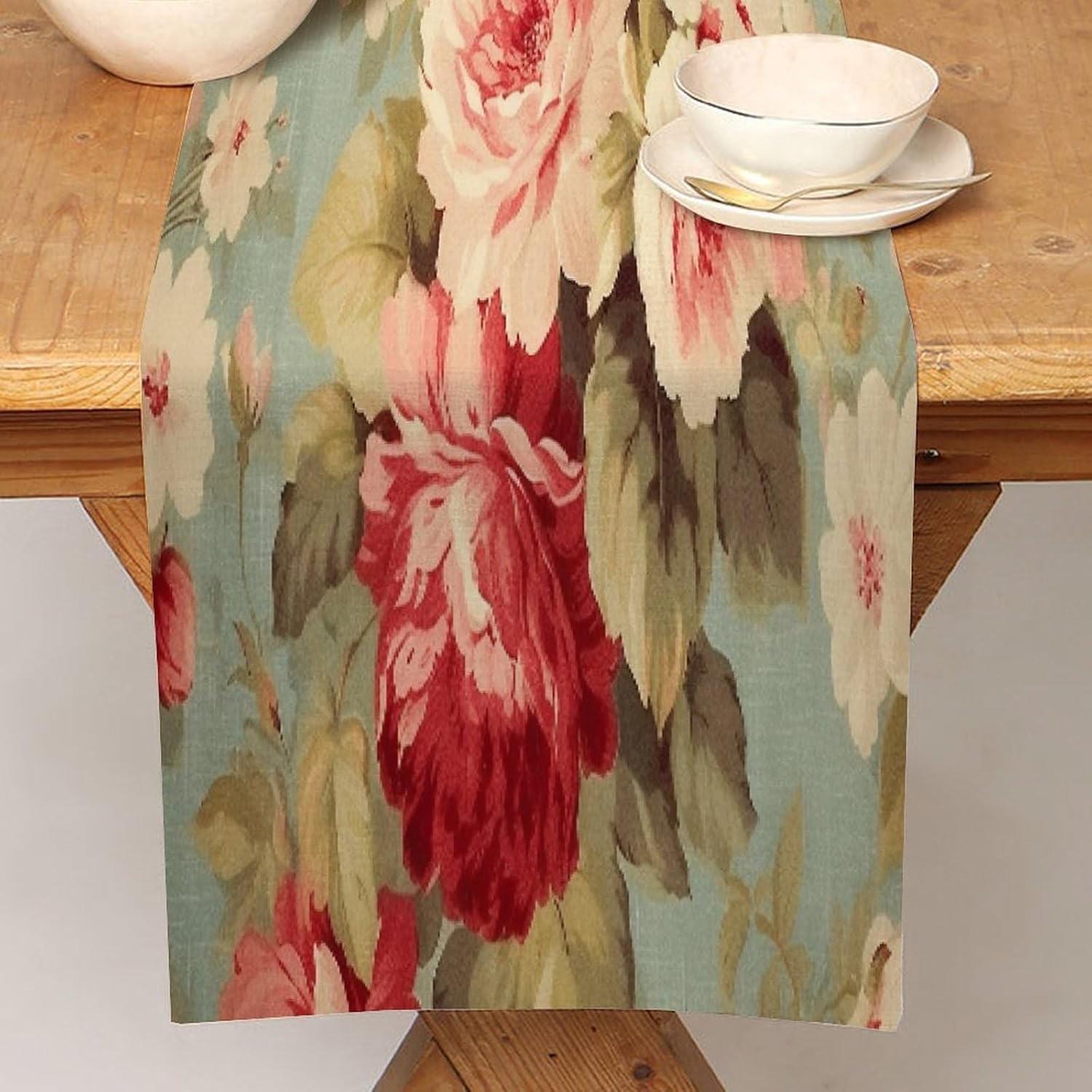 Runner da tavolo con rose rosa cavolo romantico, 40,6 x 182,9 cm, tovaglia decorativa per la casa, per cucina, sala da pranzo, feste, riunioni di famiglia, vacanze, runner da tavola decorazione