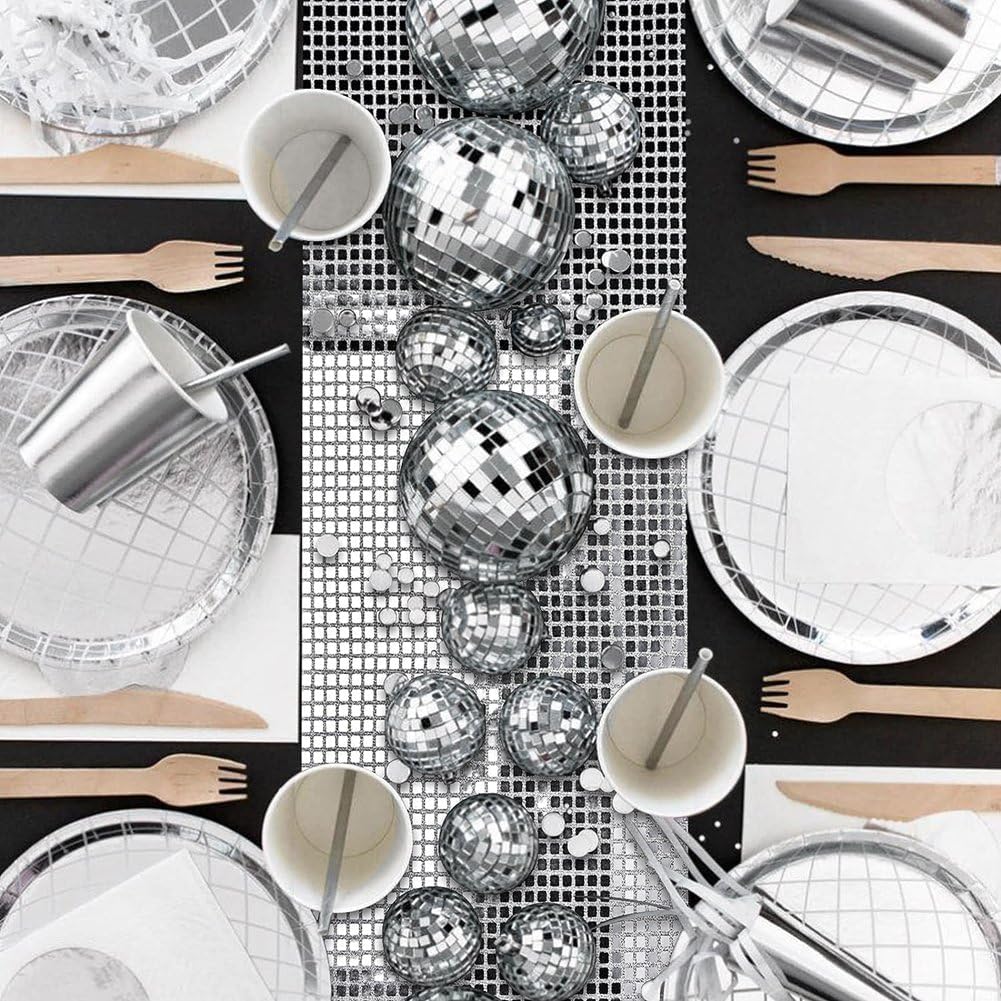 Materiale: questi runner da tavolo in d' sono realizzati principalmente in paillettes di qualità e materiale in poliestere, affidabili e morbidi, non facili da sbiadire, la robusta rende il runner da tavolo di durata, ti servirà a lungo Dimensioni: ogni runner da tavolo per feste in discoteca misura circa 12 x 108 pollici/ 30 x 274 cm, si adatta a qualsiasi tavolo fino a 8 piedi di lunghezza, adatto per la decorazione delle feste. Superficie a specchio glitterata: le nostre decorazioni da tavolo in metallo argentato sono incastonate con paillettes scintillanti come specchi, che sono brillanti e pieni di una sensazione squisita, facili da abbinare agli stili di e resi più accattivanti, aggiungeranno un tocco vivace alla tua cena tavolo. Cosa ottieni: 1 pezzo di runner da tavolo in di specchio in , tovaglie e scintillanti che possono soddisfare le tue esigenze di decorazione del tavolo da pranzo a tema Ampia gamma di applicazioni: puoi utilizzare questi runner da tavolo a specchio per decorare feste a tema e festività, come feste di compleanno, feste '70, feste '80, feste a tema neon, feste in discoteca, matrimoni, ricevimenti, banchetti, baby feste in doccia, addio al nubilato, Natale e così via; posizionarli sui tavoli e sui banconi dei bar aggiungerà effetti glitter più brillanti e attirerà facilmente l'attenzione degli ospiti