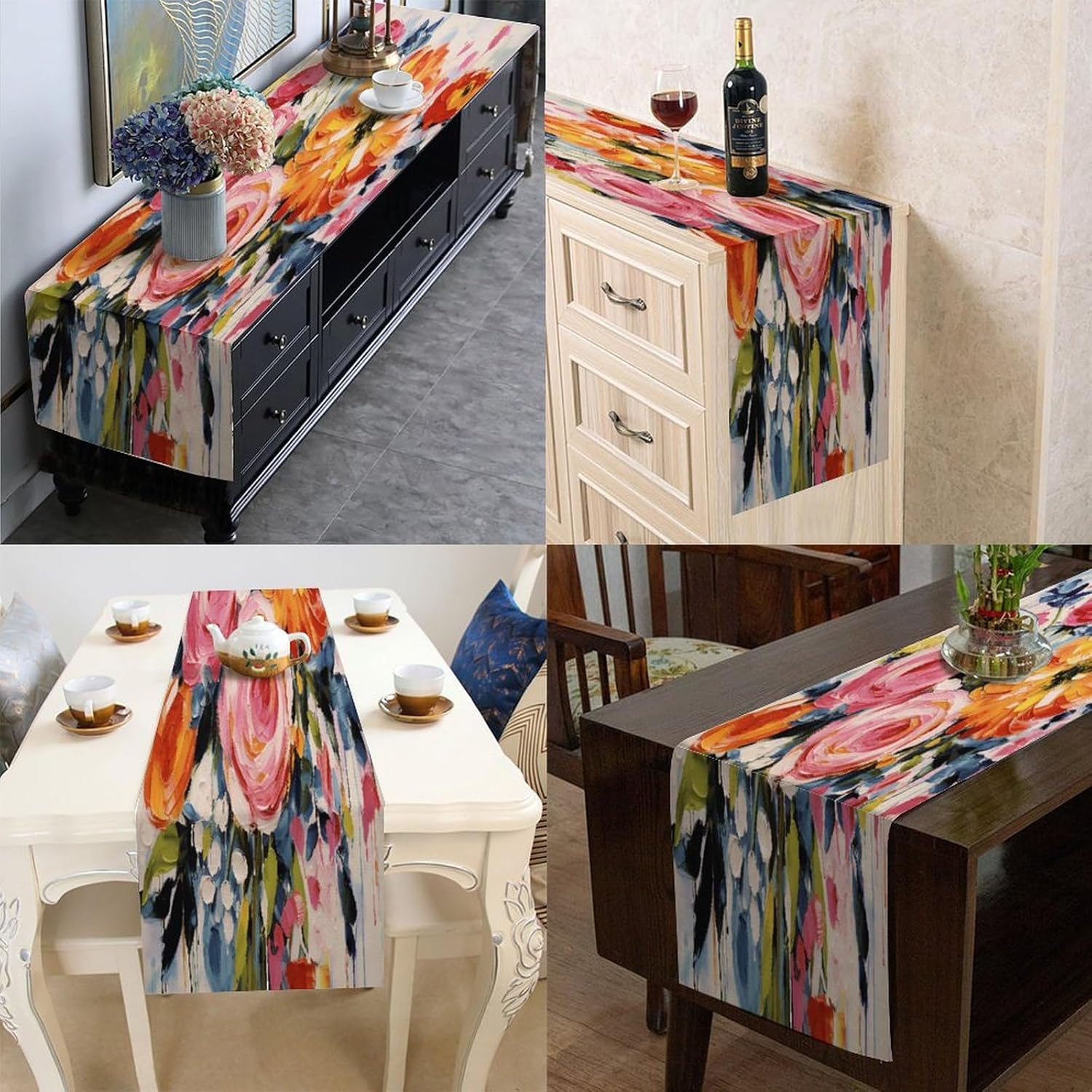 Runner da tavolo da pranzo colorato con rose floreali rosa per comò, sciarpe, runner da cucina per cene in fattoria, feste festive, matrimoni, eventi, decorazione, 40,6 x 183 cm