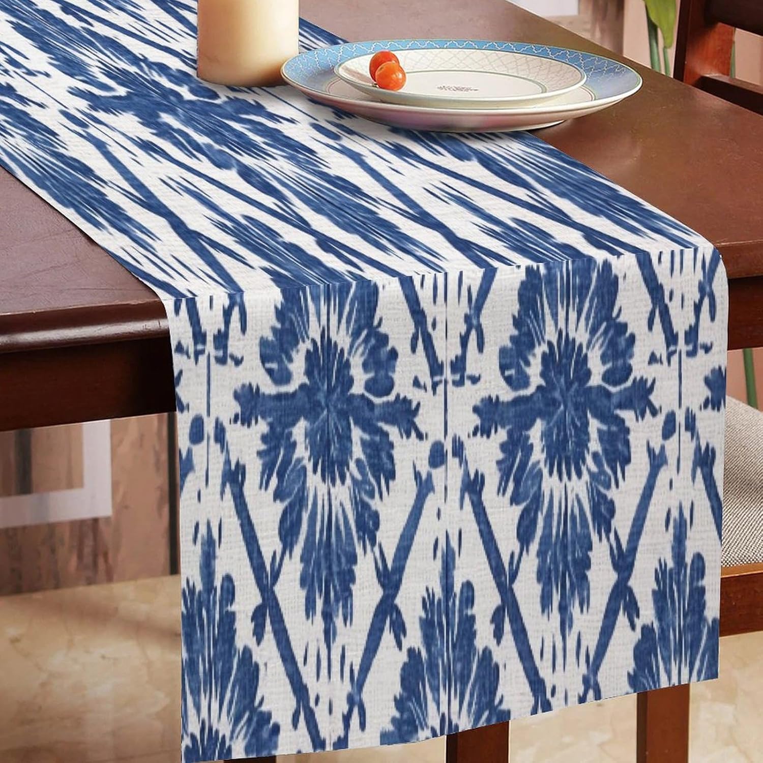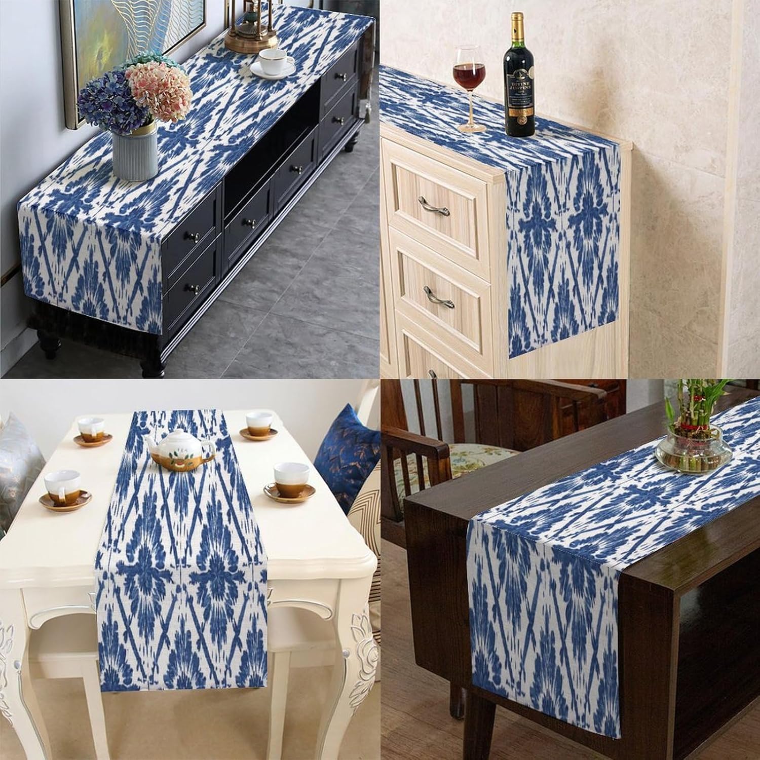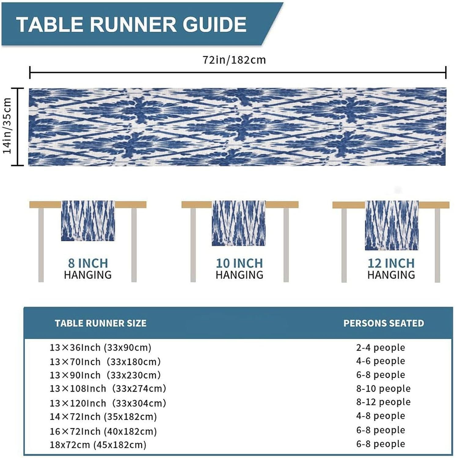 Runner da tavolo da pranzo con graticcio blu indaco, sciarpe, runner da cucina per cene in fattoria, feste festive, matrimoni, eventi, decorazione, 35,6 x 182,9 cm