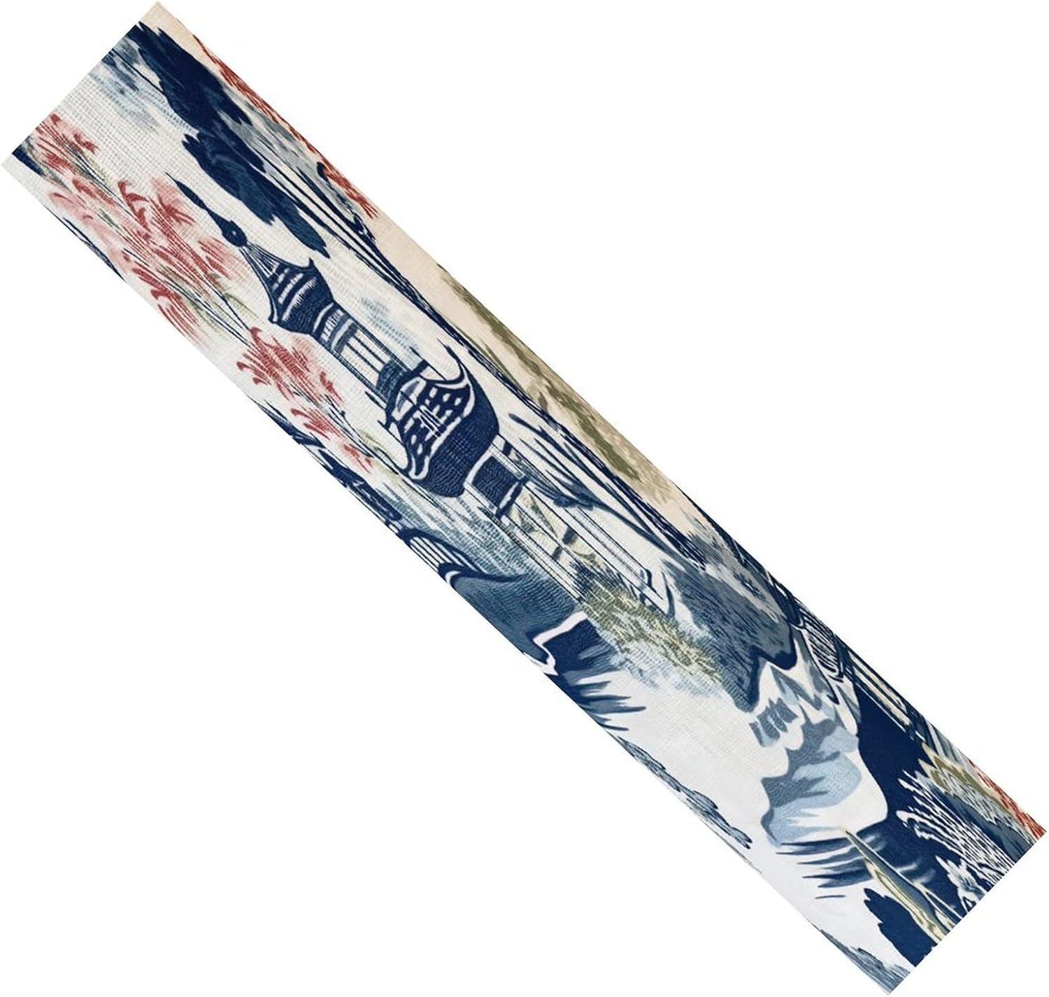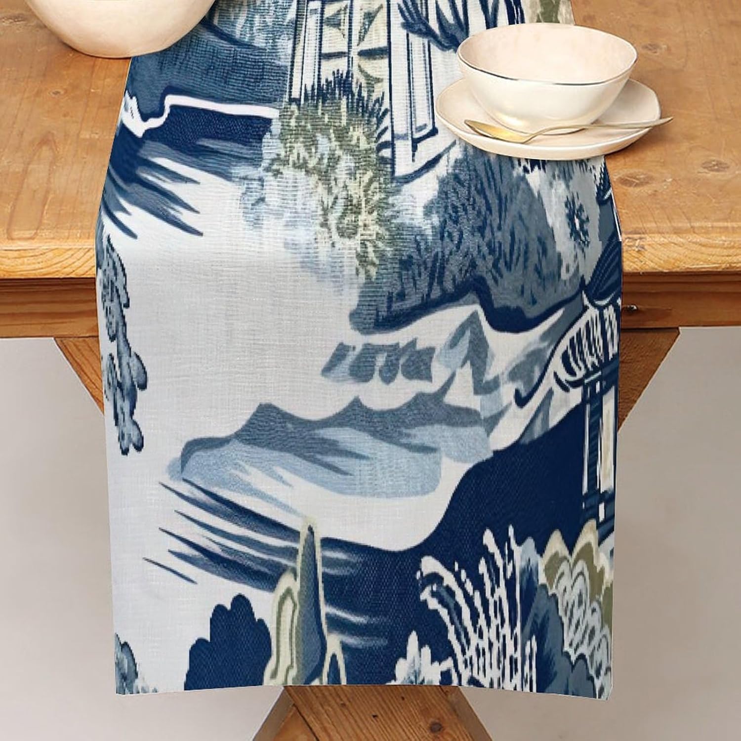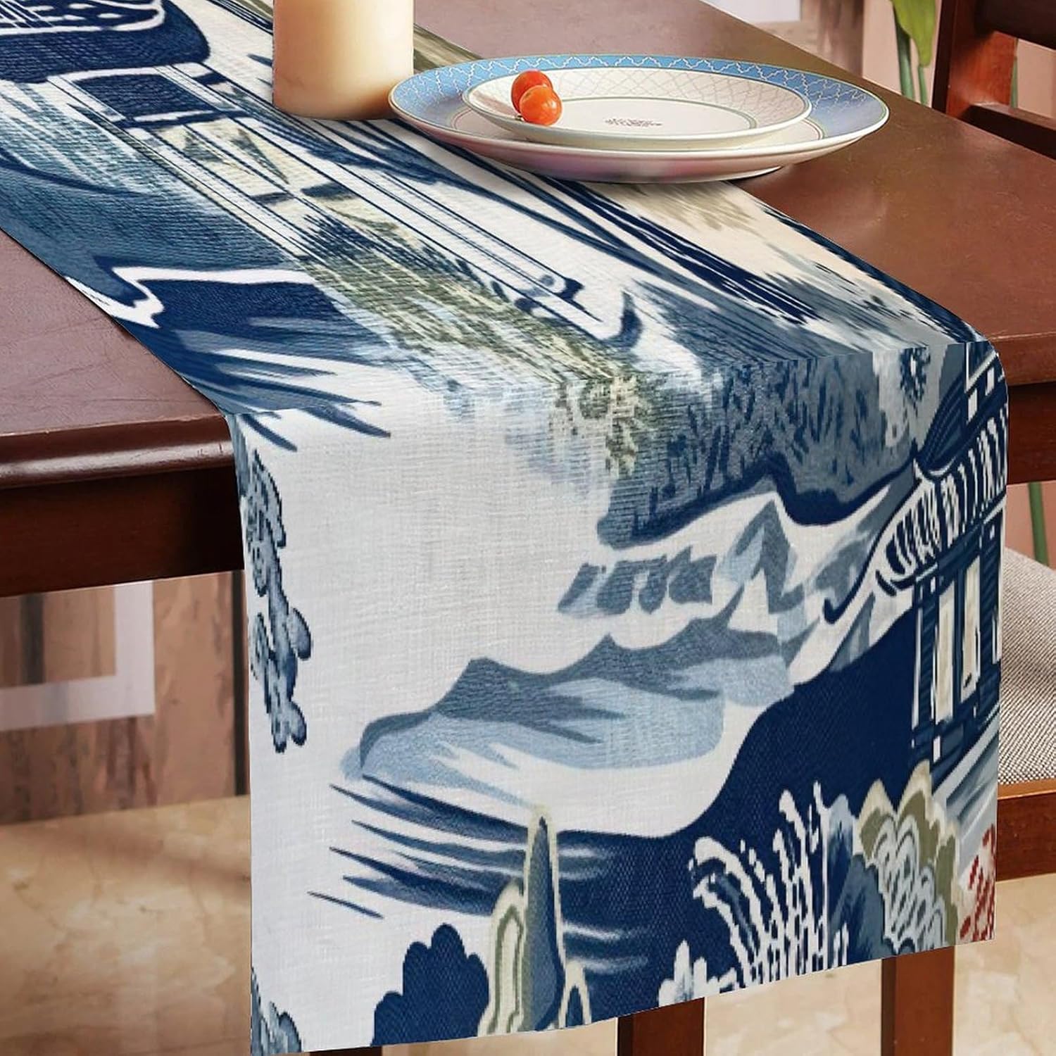 Runner da tavolo divertente da chef Chinoiserie Pagoda in cotone e lino in stile fattoria, runner da tavolo per tavolo da pranzo da cucina, decorazione per feste per occasioni speciali