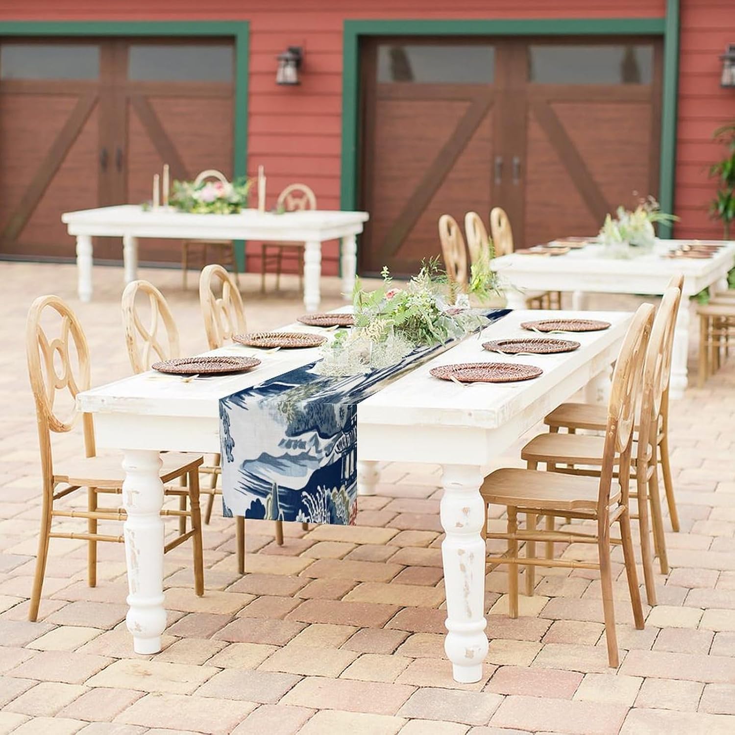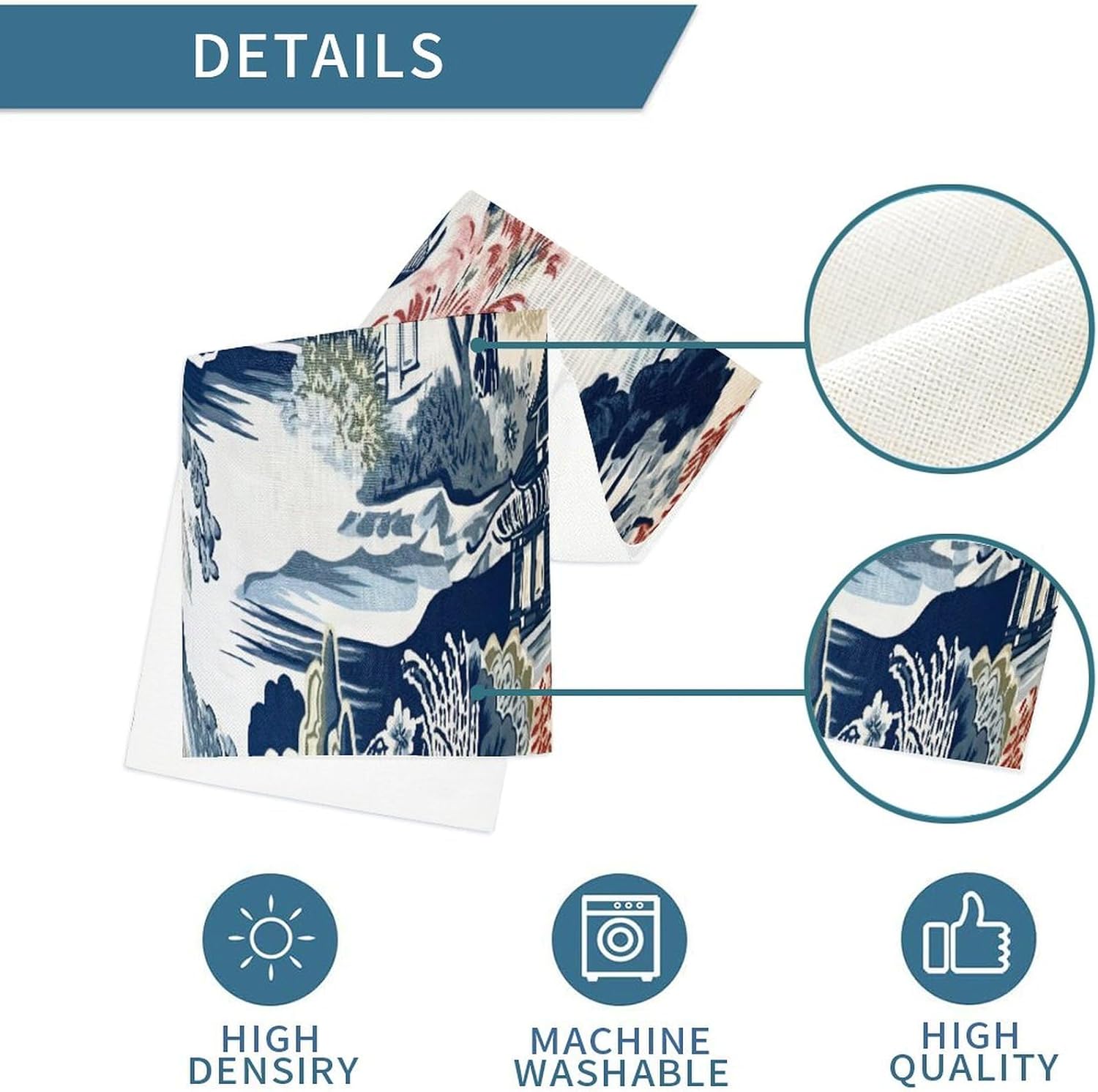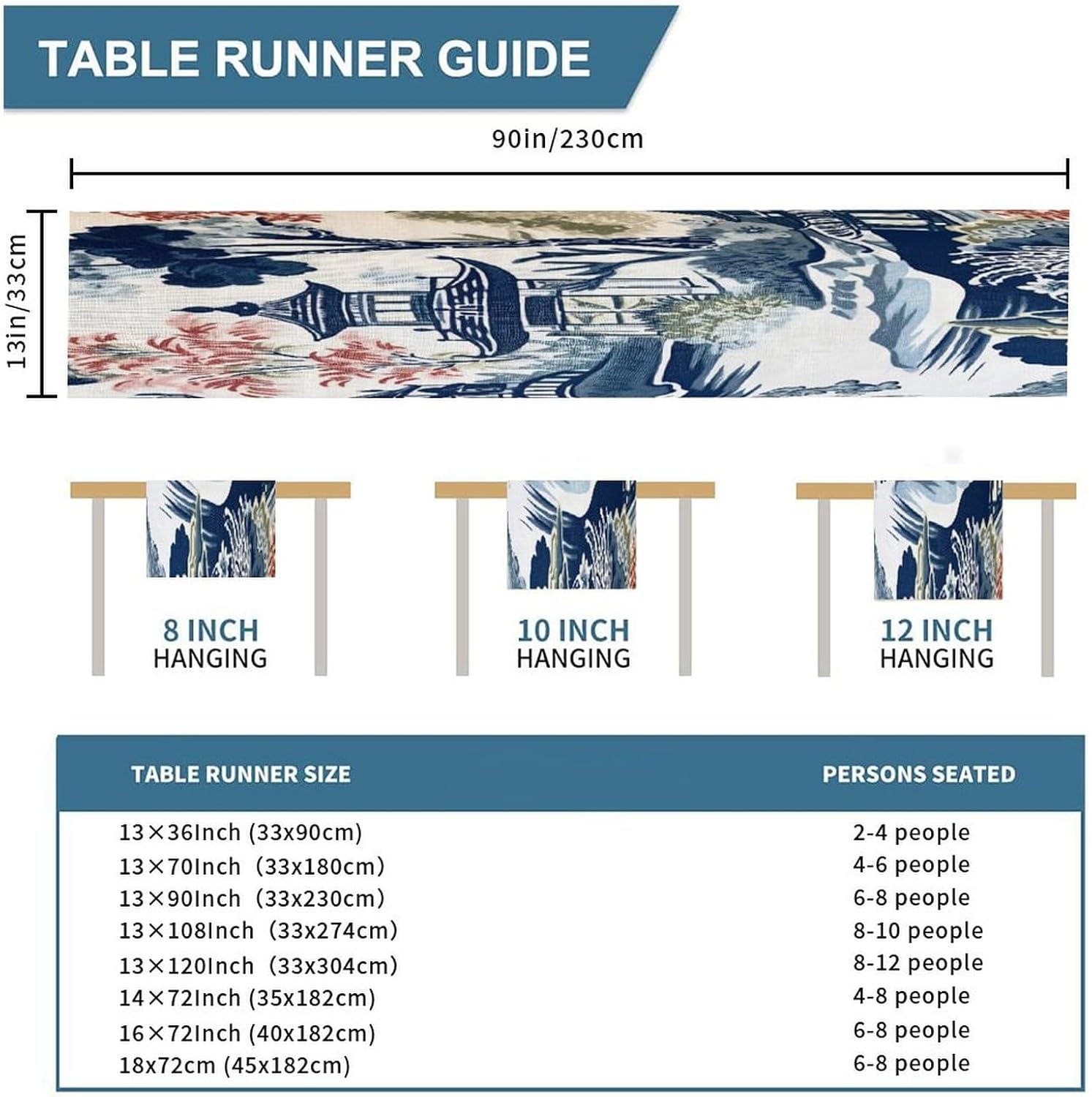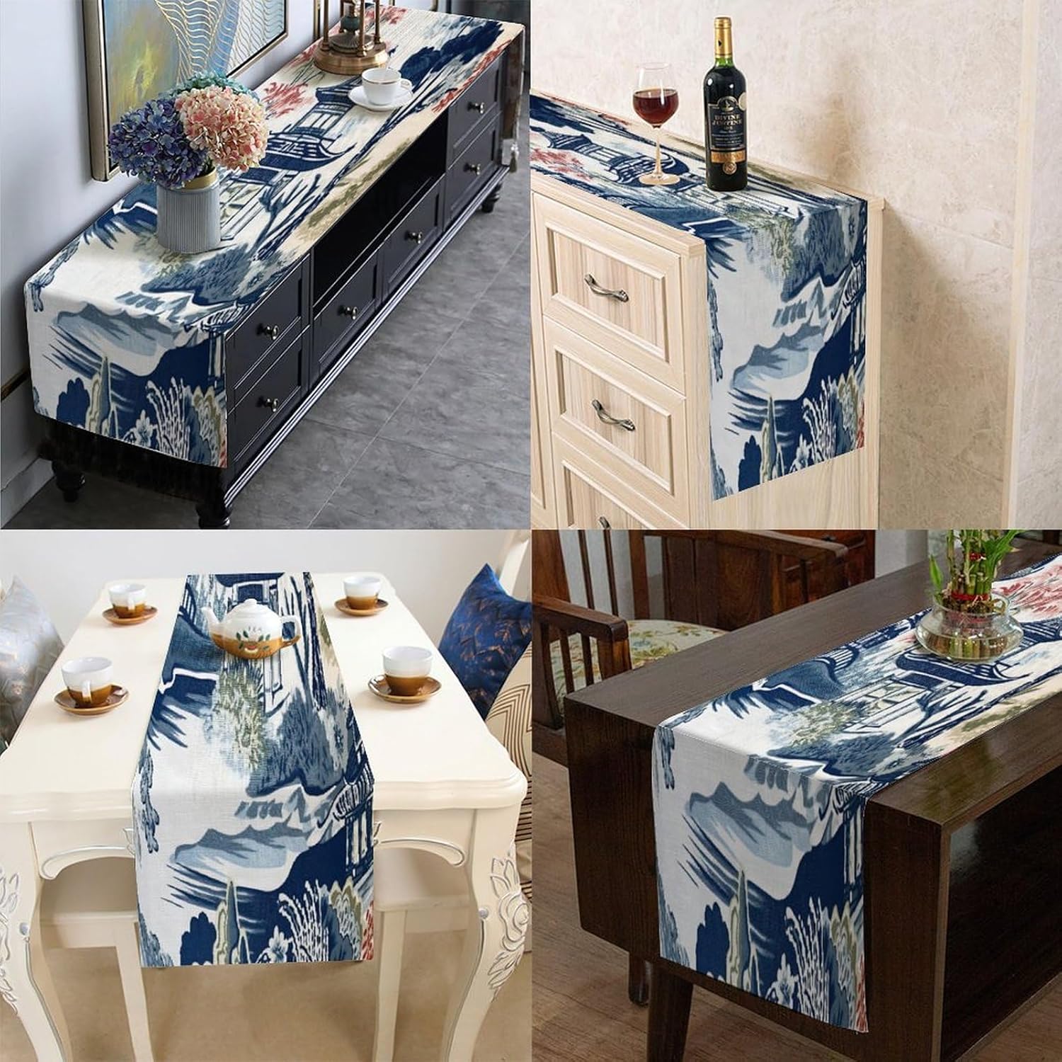 Runner da tavolo divertente da chef Chinoiserie Pagoda in cotone e lino in stile fattoria, runner da tavolo per tavolo da pranzo da cucina, decorazione per feste per occasioni speciali