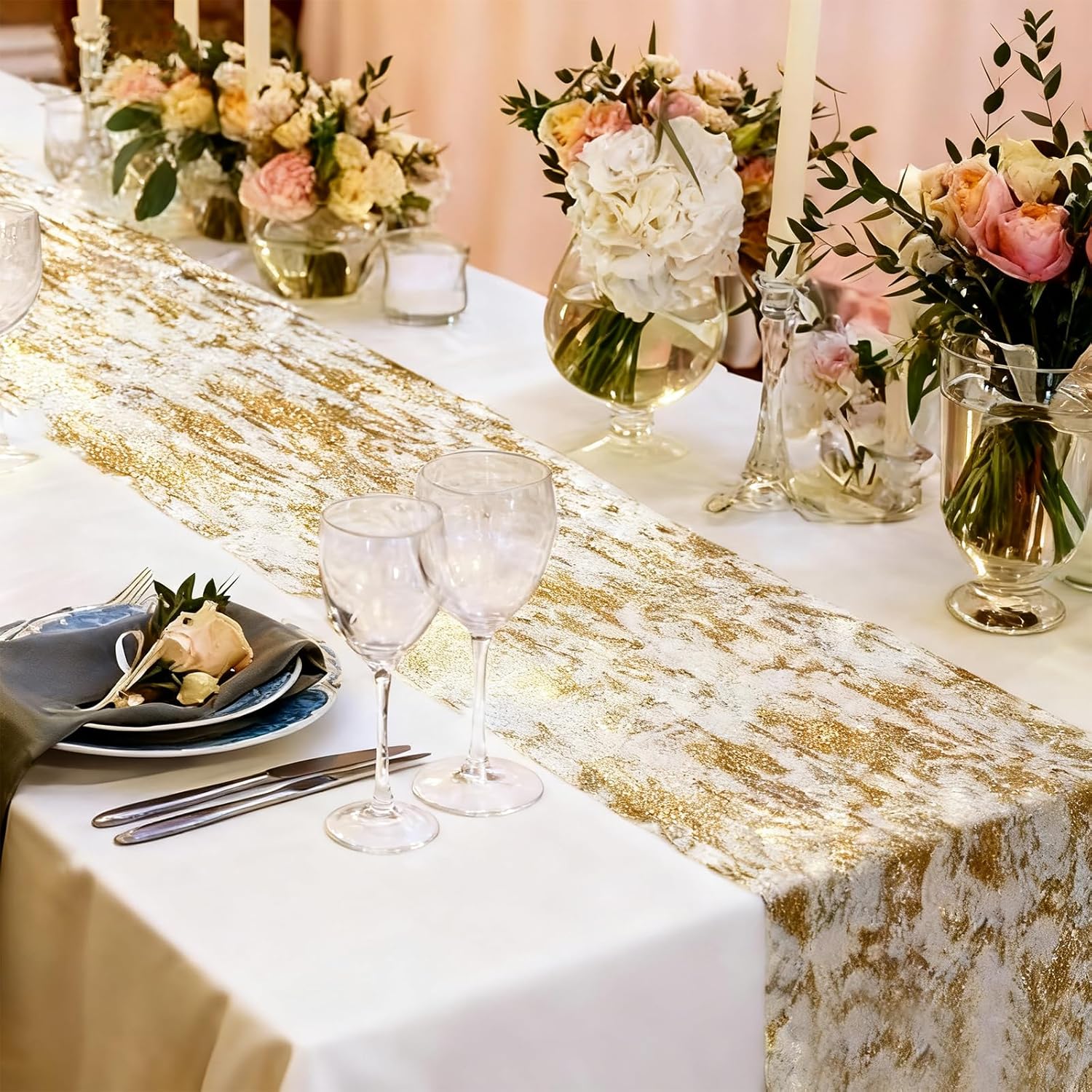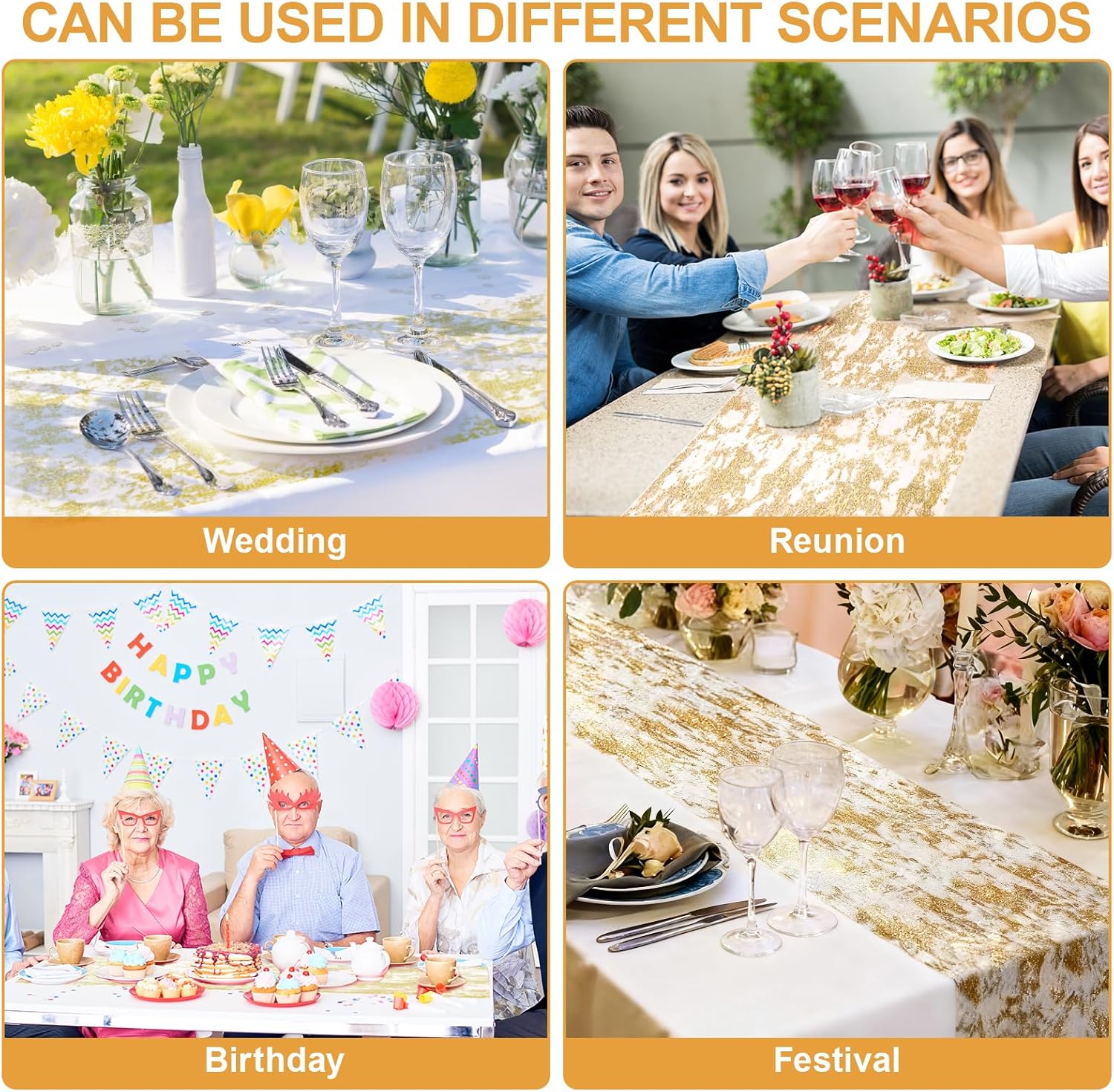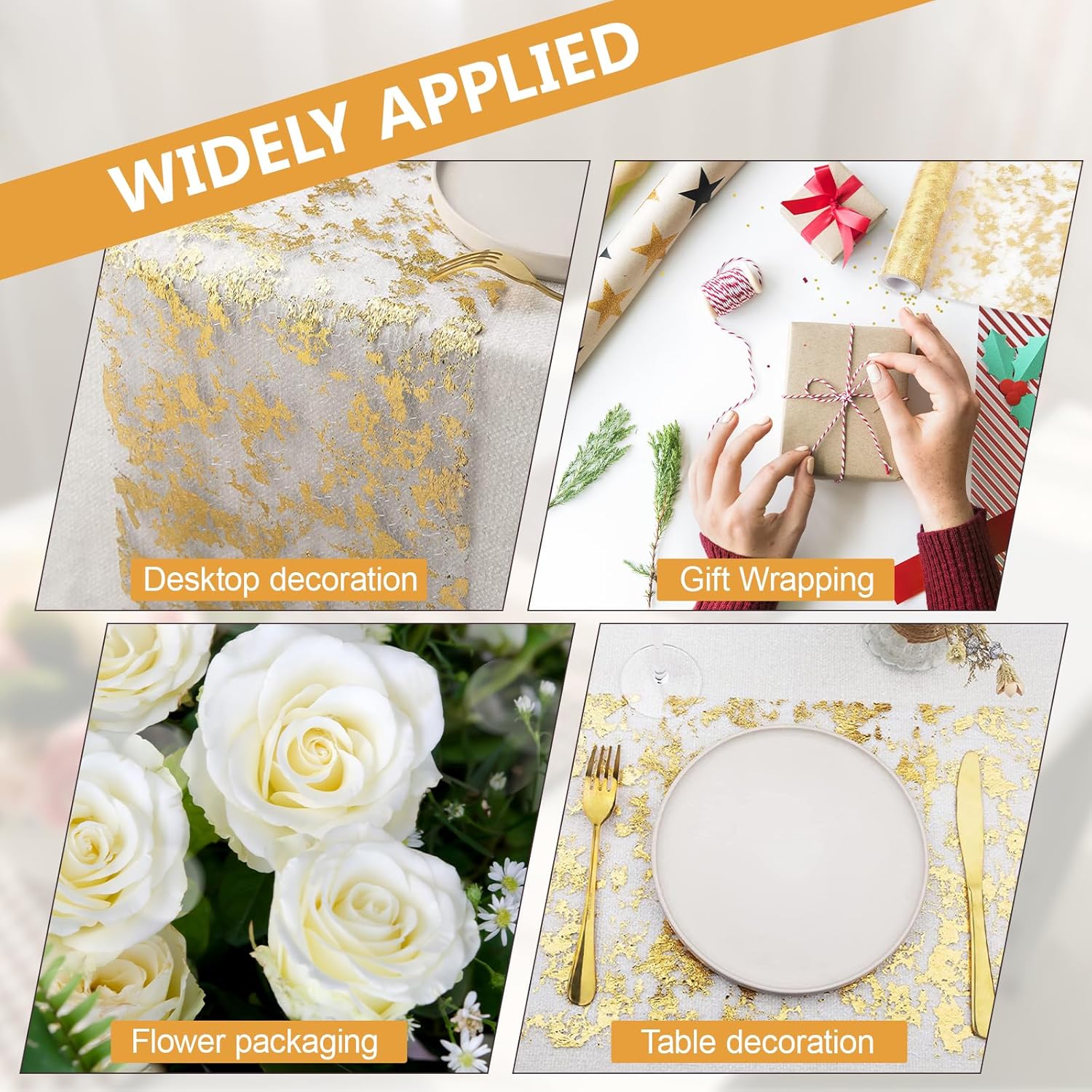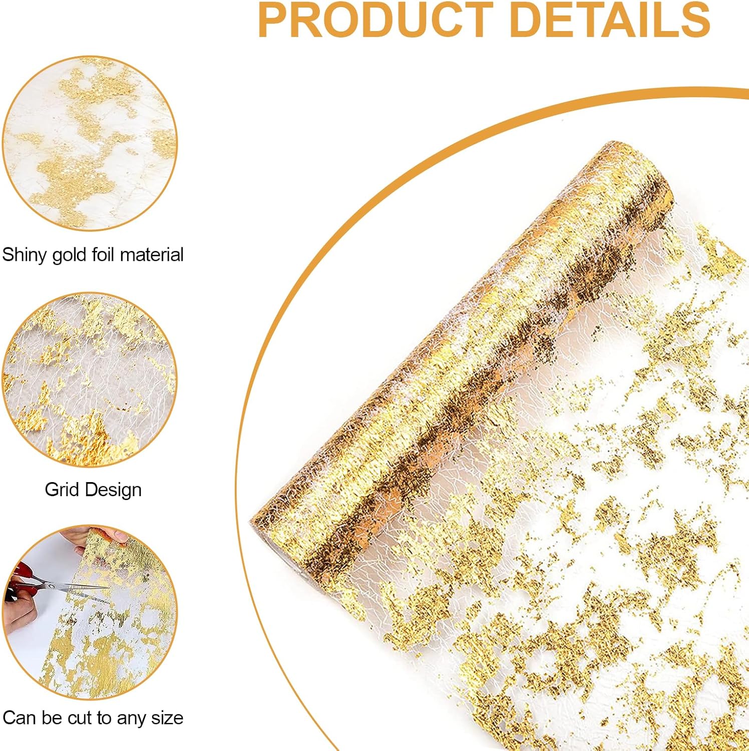 Materiale di alta qualità: questo runner da tavolo è realizzato in tessuto di poliestere e lamina metallica dorata, che lo rende un elemento accattivante grazie al suo colore premium e allo stile vintage. Dimensioni del prodotto: fino a 9 metri di lunghezza e 28 cm di larghezza. È facile da tagliare e regolare. Stile elegante: il runner da tavolo dorato presenta un motivo stampato a caldo, che gli conferisce un aspetto scintillante ed elegante. La tovaglia scintillante aggiunge un tocco di glamour alla tua tavola da pranzo e rende le stoviglie e il loro contenuto chic, sofisticati ed eleganti. Accessorio decorativo: oltre a essere utilizzato come tovaglia, può essere utilizzato anche per confezionare fiori, come decorazione natalizia e come nastro regalo. Uso versatile: in interni, può essere utilizzato per lavori artigianali, decorare vasi e regali; in esterni, può essere utilizzato per decorare tavoli da pranzo, tavoli per banchetti, tavoli per birrerie, porte, finestre, terrazze, ecc.