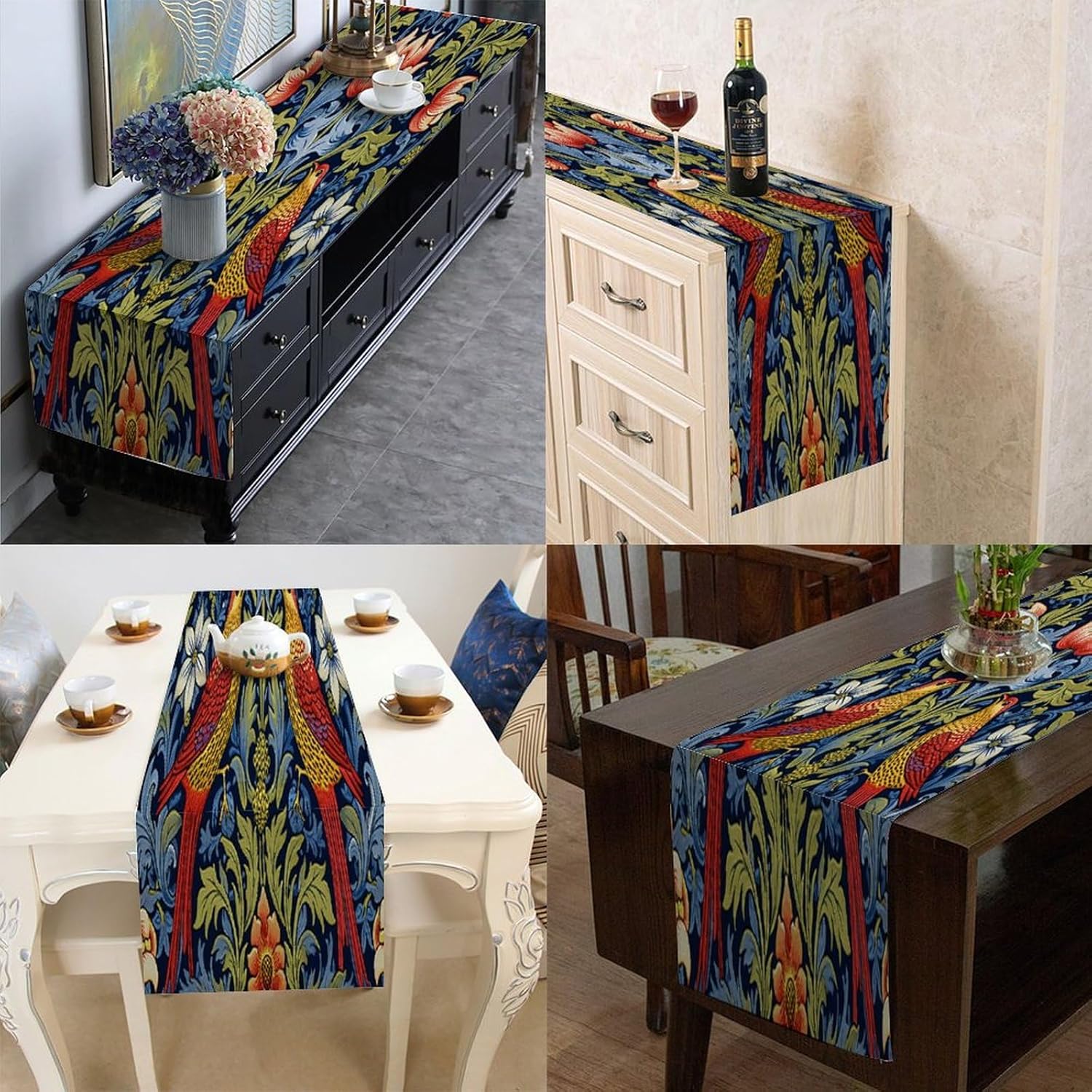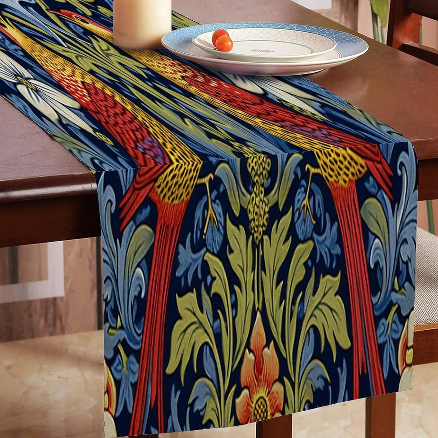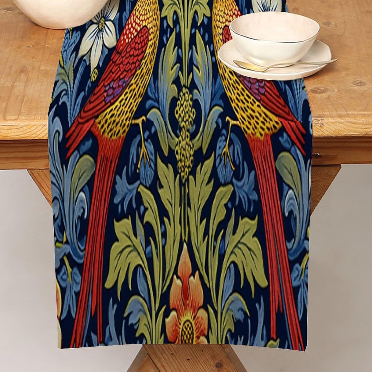 Runner da tavolo in cotone e lino con fiori di uccelli da chef divertenti, stile rustico, runner da tavolo per tavolo da pranzo da cucina, decorazione per feste per occasioni speciali