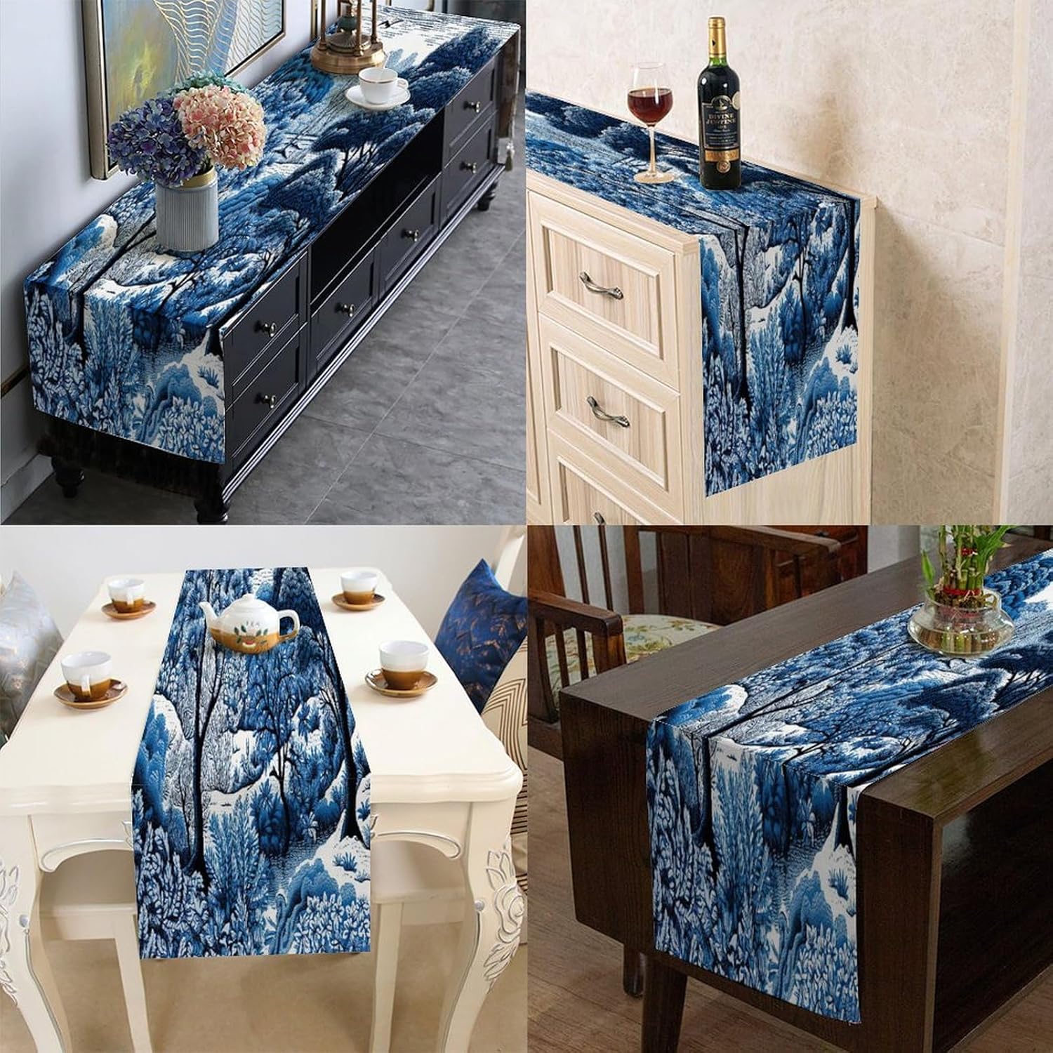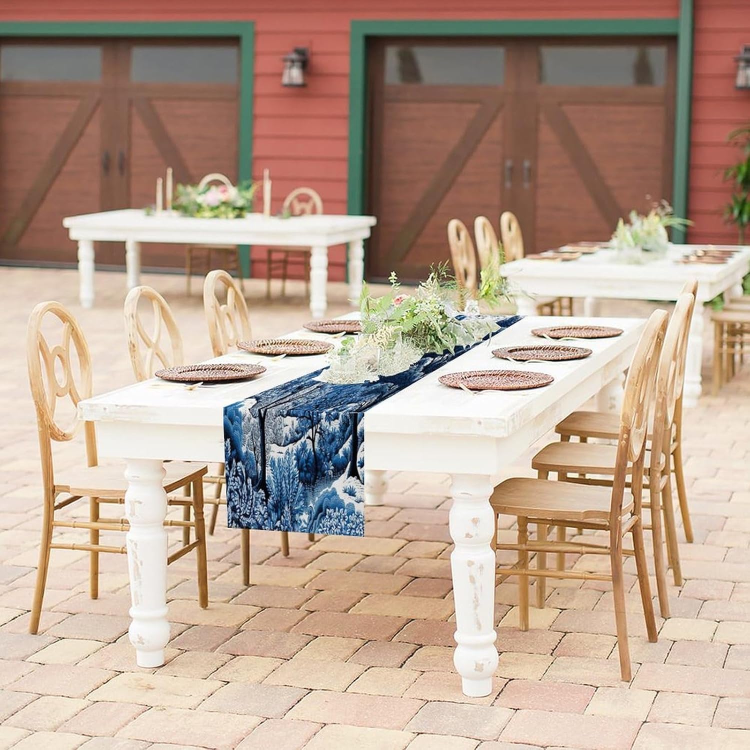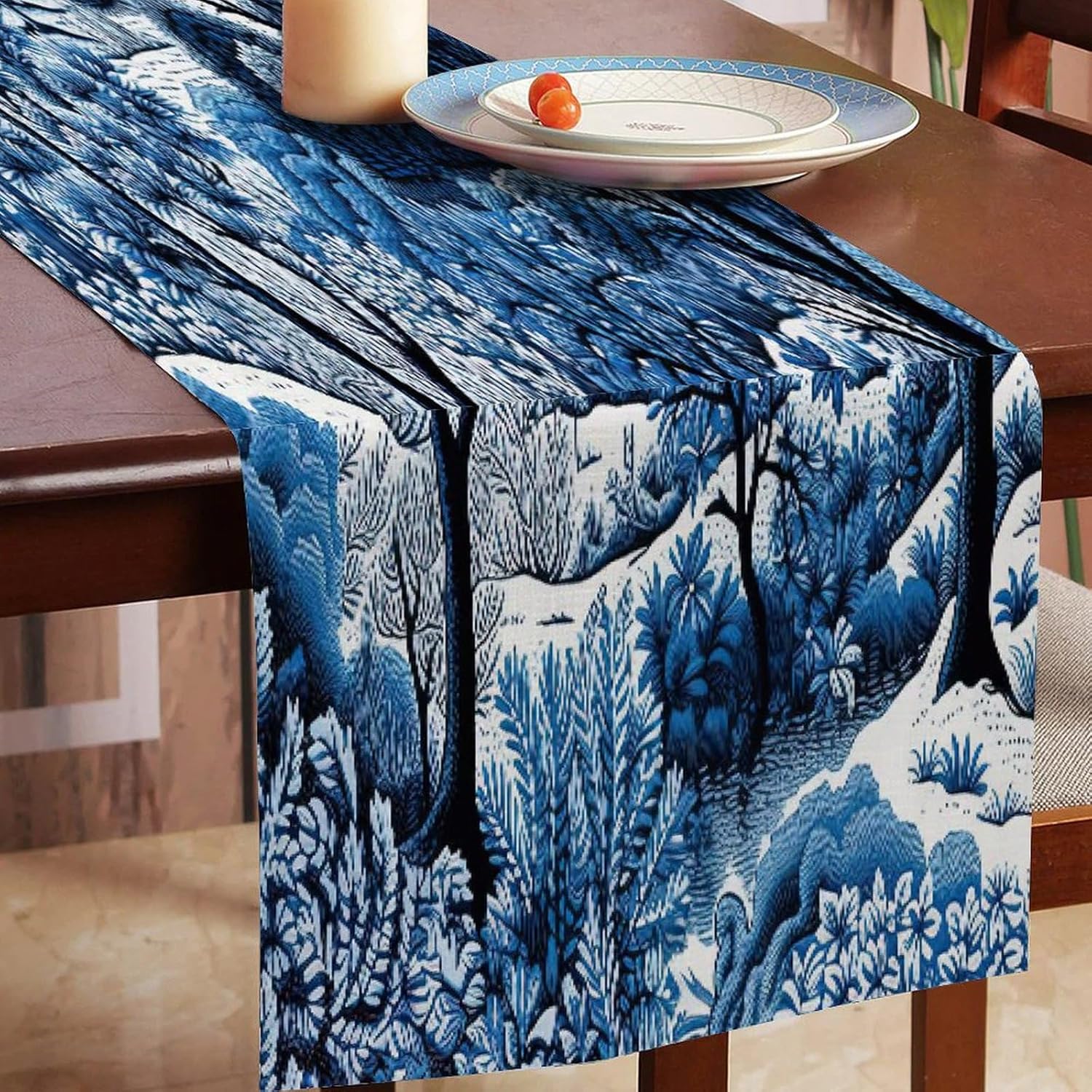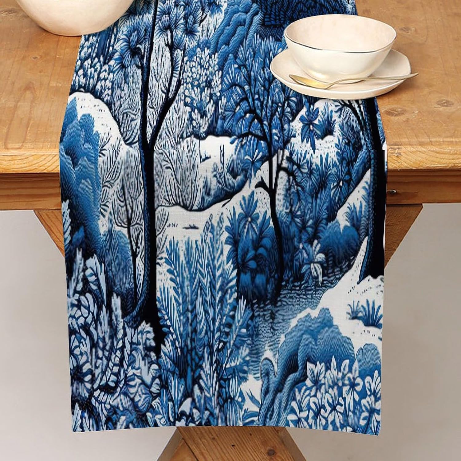 Runner da tavolo in cotone e lino con motivo cinese divertente chef blu bianco indaco Decorazioni per la cucina in stile rustico per tavolo da pranzo da cucina Decorazione per feste per occasioni speciali