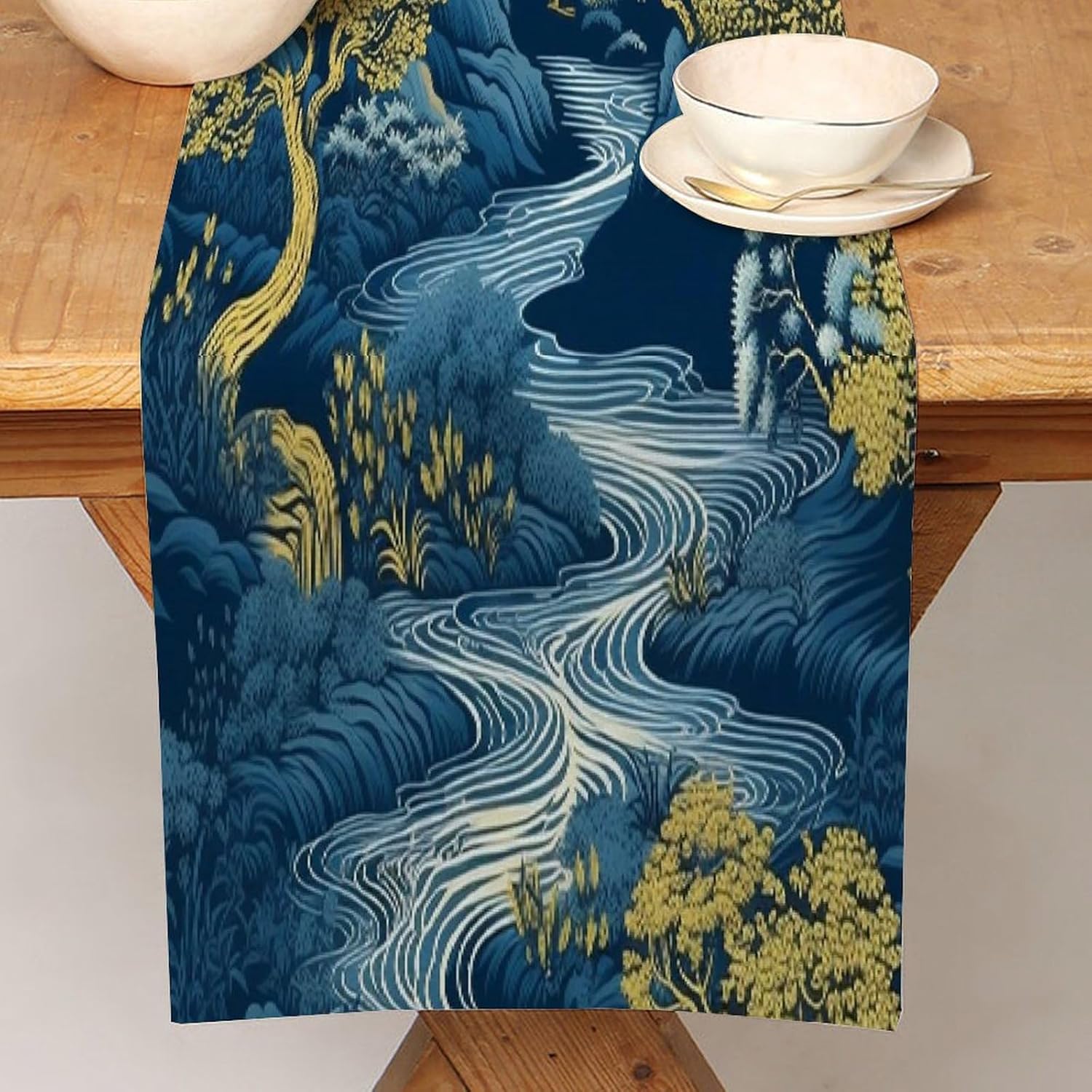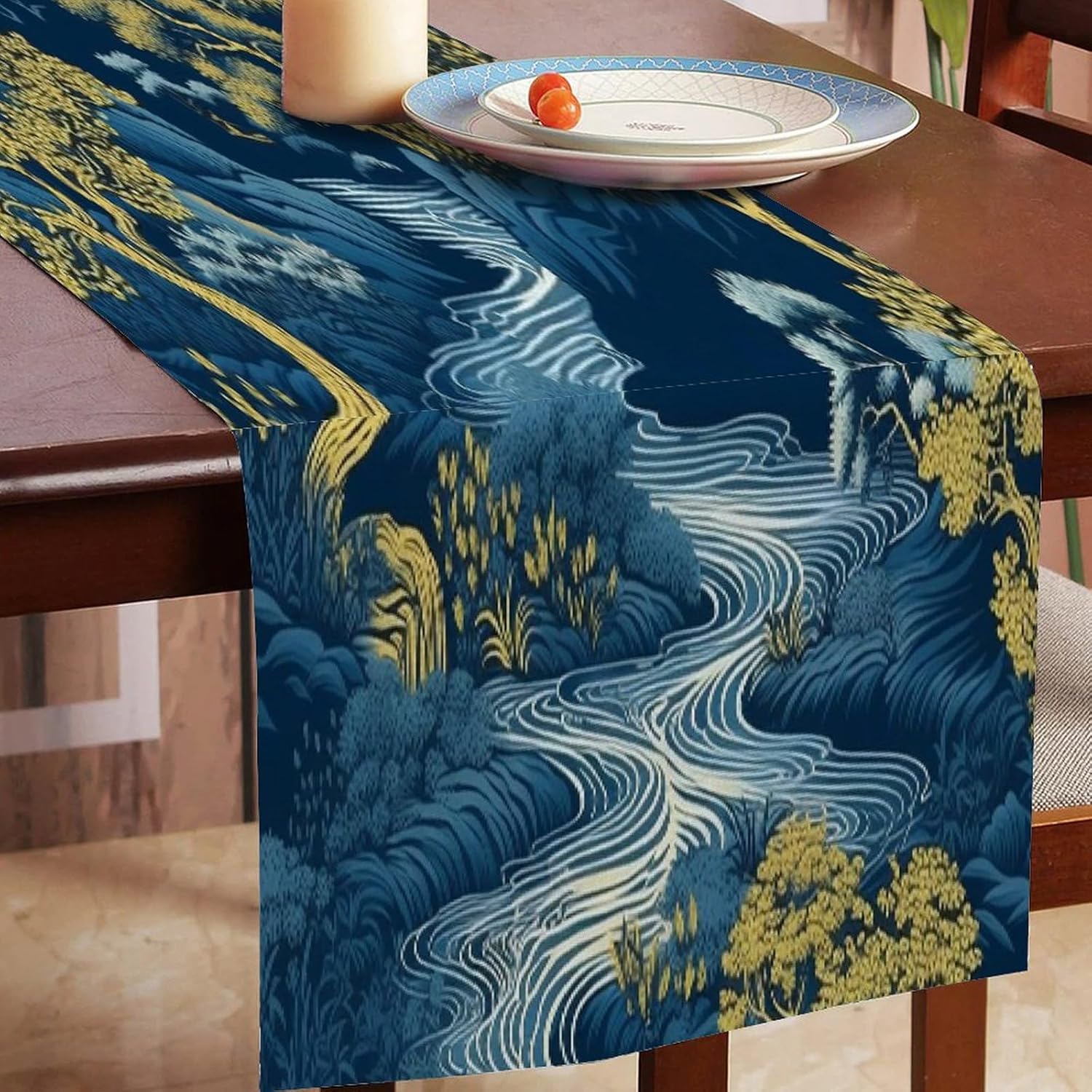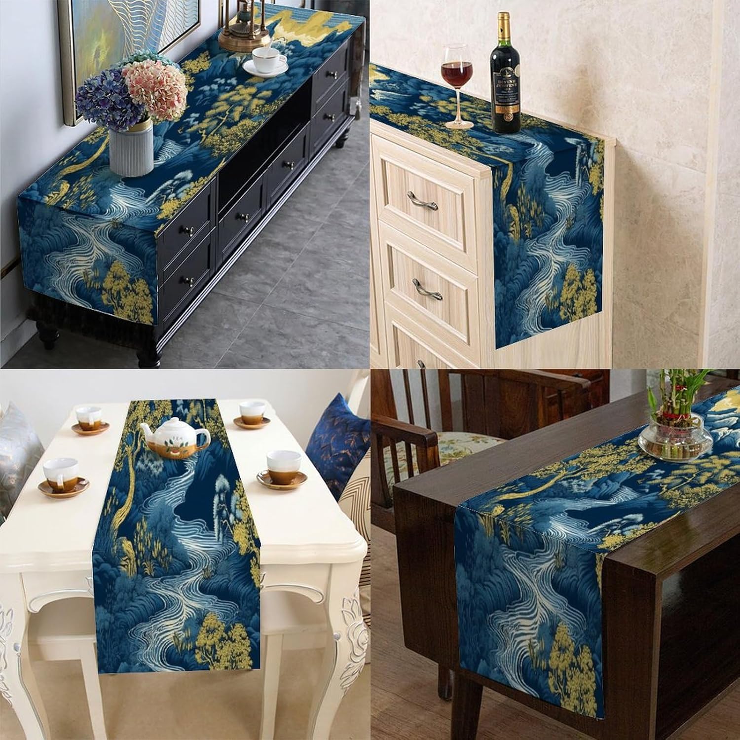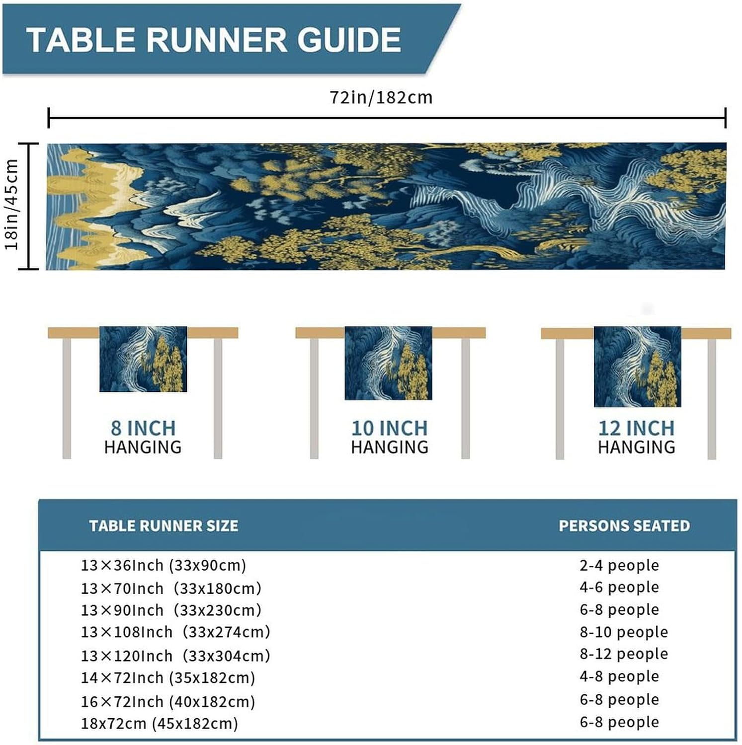 Runner da tavolo indaco blu bianco 18" x 78" Tappetino decorativo per cucina, sala da pranzo, feste, riunioni di famiglia, decorazioni per runner da tavola