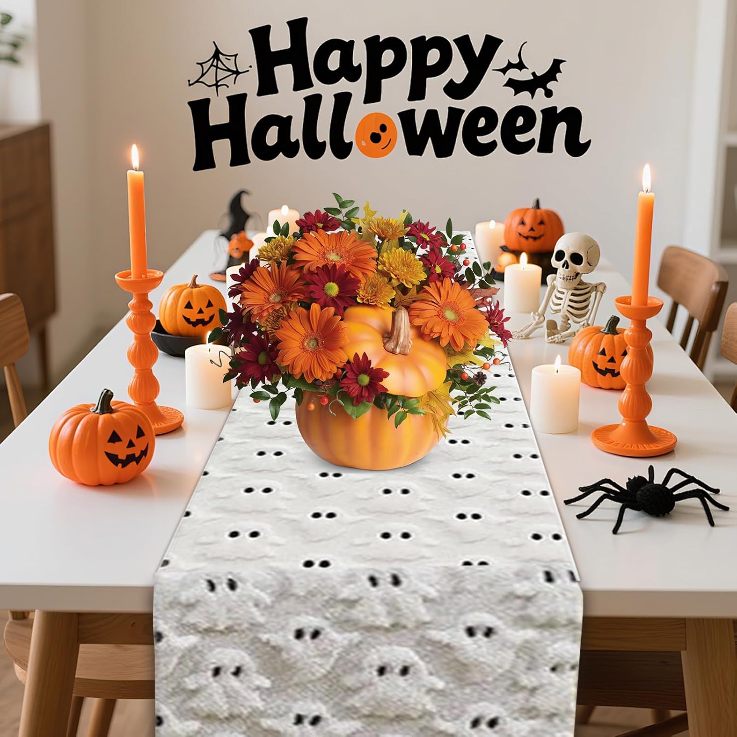 Motivi abbinati: crea una composizione da tavolo sincronizzata con motivi di Halloween coordinati come zucche, pipistrelli e ragnatele per una presentazione da tavolo ben studiata e tematicamente coerente Qualità del materiale durevole: con il minimo scarico di fibre e la rimozione della polvere ottimizzata, il runner da tovaglia mantiene a lungo la sua eleganza estetica grazie alla struttura resistente per una bellezza duratura e una facile manutenzione Decorazione versatile per Halloween: progettata per composizioni festive della panchina da camino, si adatta facilmente alle esigenze quotidiane di decorazione stagionale. Completano strutture dolci o scherzose e si integra armoniosamente con i temi di festa di Halloween. Perfetto per tavoli da buffet, credenze o consolle. Atmosfera spaventosa e giocosa: la base morbida in peluche con rilievo in rilievo crea un effetto di Halloween 3D in plastica e aumenta l'atmosfera decorativa festosa nella stagione Decorazione perfetta per le vacanze: il runner da tavolo è realizzato in morbido poliestere, offre un'esperienza tattile delicata e diffonde un'atmosfera invitante di Halloween durante riunioni sociali e occasioni festive