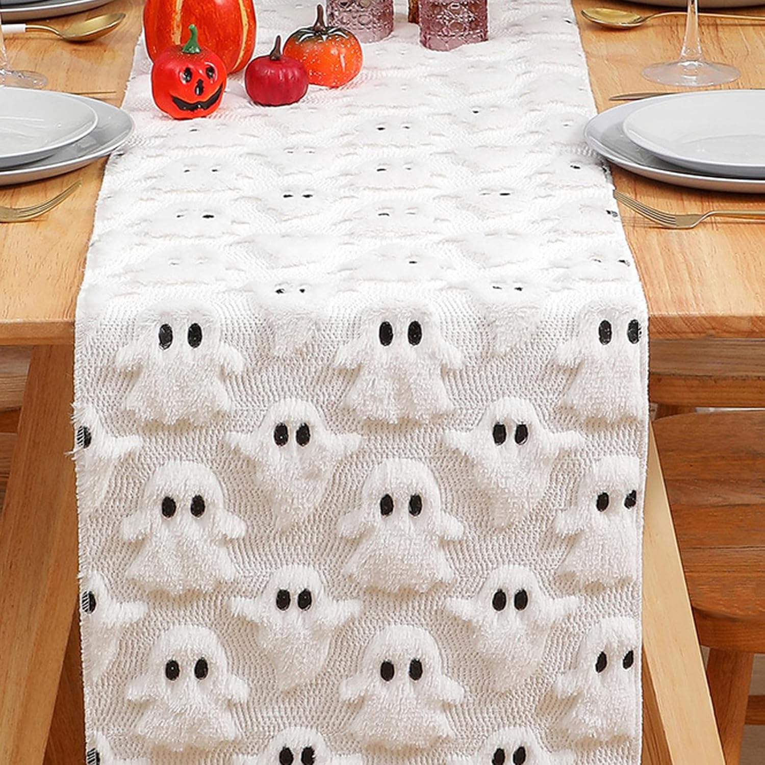 trasforma tavoli da pranzo durante cene, buffet degno di foto di scena per drappeggiare sui banconi dei negozi in spazi commerciali spettrali. La trapunta trapuntata dimensionale presenta motivi giocosi con occhi grandi in sorprendenti contrasti di colore, mentre il supporto in PVC rinforzato offre resistenza e facile manutenzione con comodità lavabile in lavatrice Perfetto per proprietari di case festive, organizzatori di eventi alla ricerca di miglioramenti atmosferici e attività di vendita al dettaglio che desiderano creare esposizioni stagionali coinvolgenti che indurranno i clienti a migliorare il tuo Halloween con Questo runner da tavolo ricamato sequenziale presenta cuciture a sbuffo e design tono su tono, realizzato in poliestere e PVC per durabilità e vivacità resistente allo sbiadimento. Questo versatile centrotavola diventerà un antipasto di conversazione con la sua trama e i suoi motivi ineguagliabili e resisterà a ripetuti cicli di lavaggio per le tradizioni annuali di Halloween