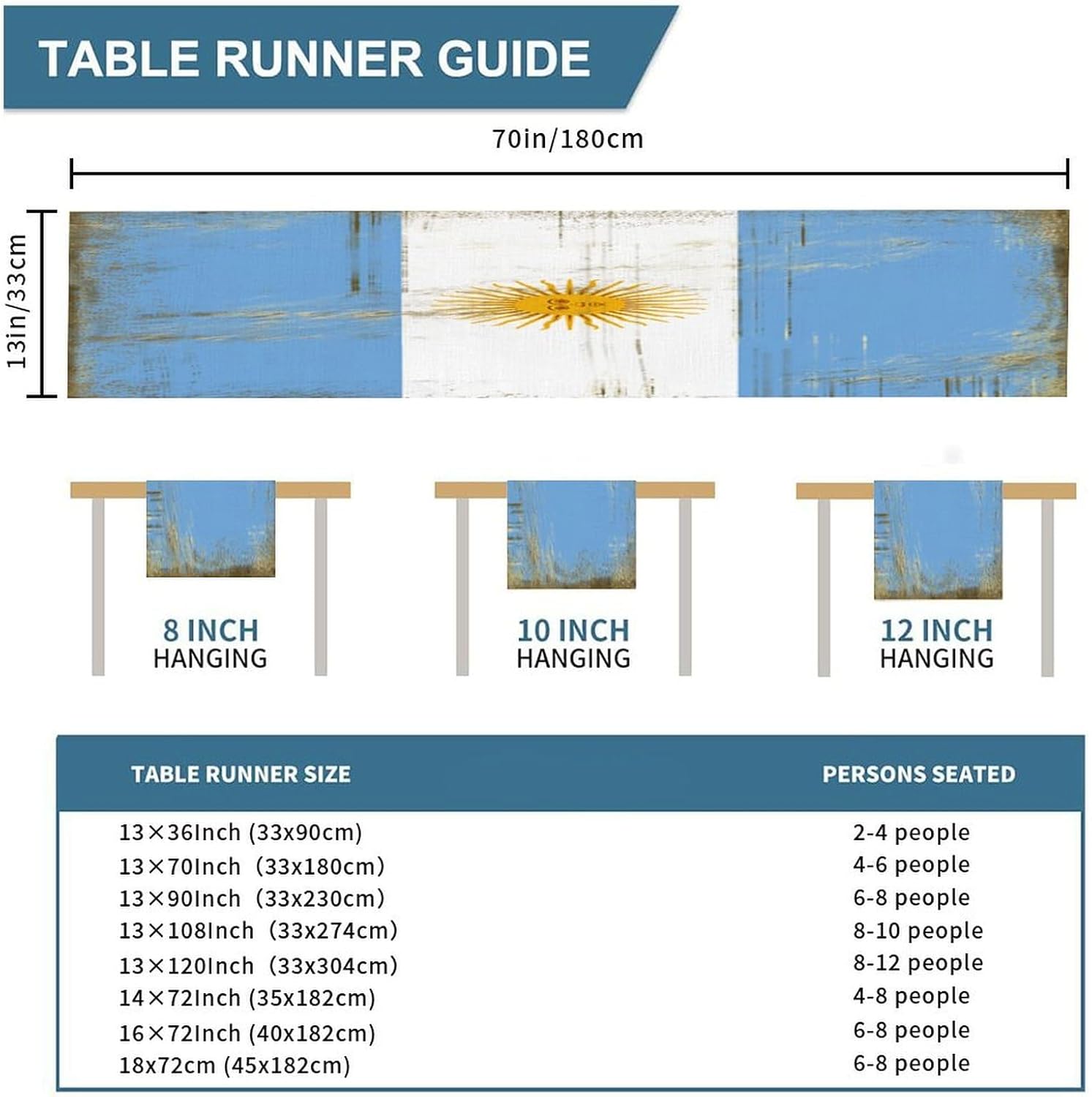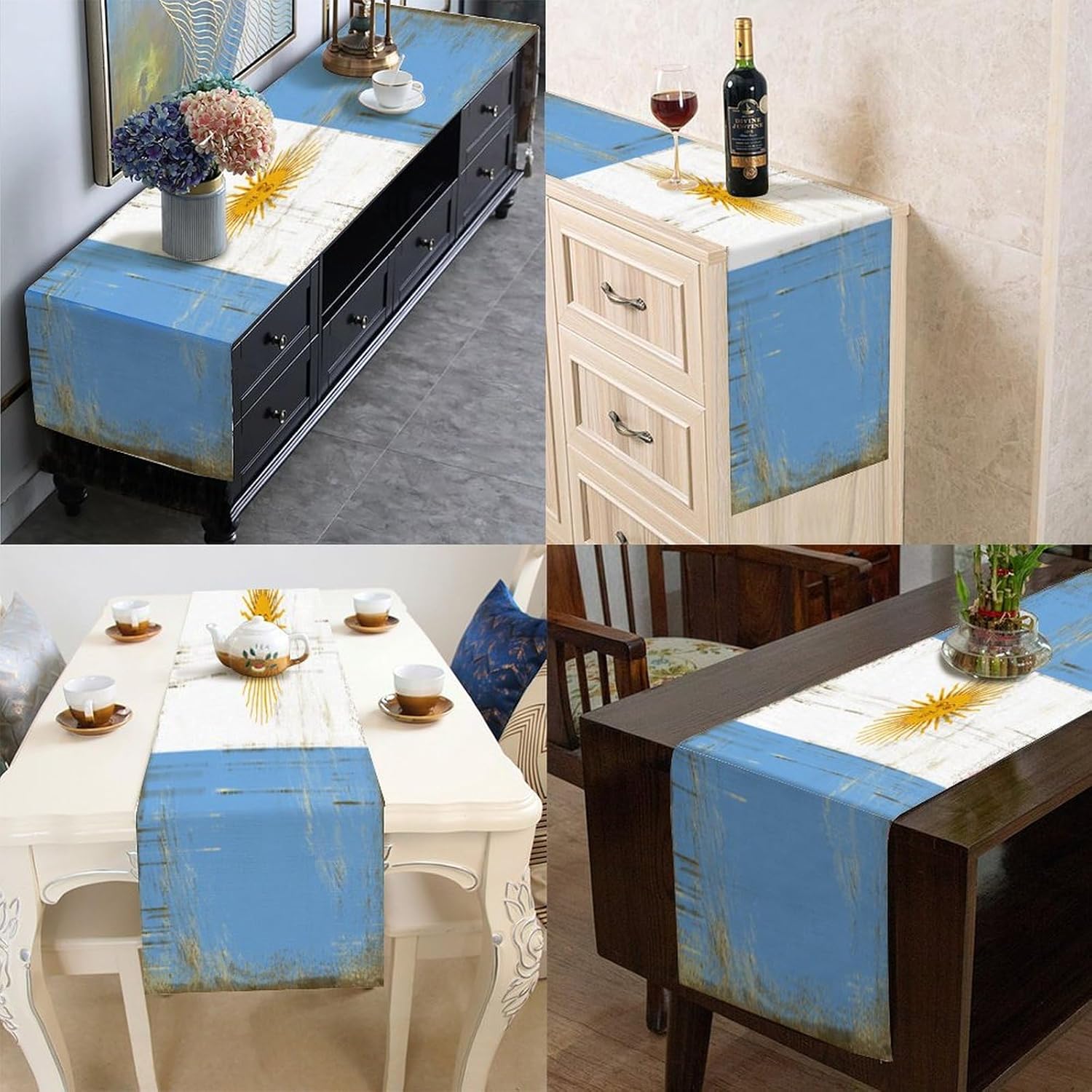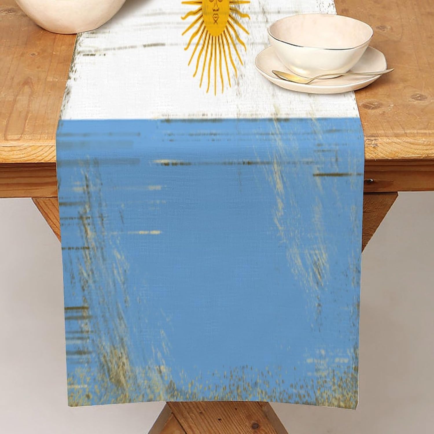 Runner da tavolo vintage con bandiera argentina, decorazione stagionale per la cucina, decorazione del tavolo da pranzo, interni ed esterni, sala da pranzo per feste, 33 x 178 cm