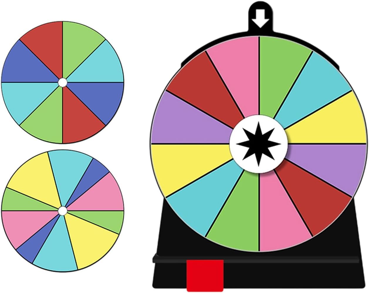 perno della ruota della ricompensa trova centro della ruota con un giunto solido e rotazione L'intero spinner è realizzato in cartone multistrato accuratamente laminato, bordi levigati senza sbavature, comodo tatto Lo spinner delle ricompense è rivestito con uno speciale rivestimento facile da scrivere e cancellabile con un pennarello per lavagna, che non lascia segni con l'uso ripetuto La parte posteriore della ruota girevole con supporto adesivo, che ne facilita fissaggio a un tavolo o a parete. Stabile anche con leggere vibrazioni diametro dello spinner è medie dimensioni, facile da in mano e visualizzare chiaramente ciascuna area