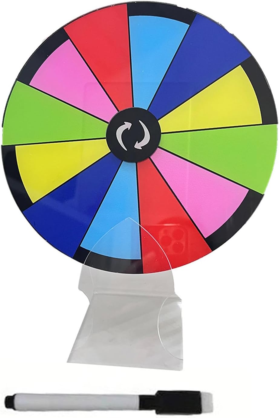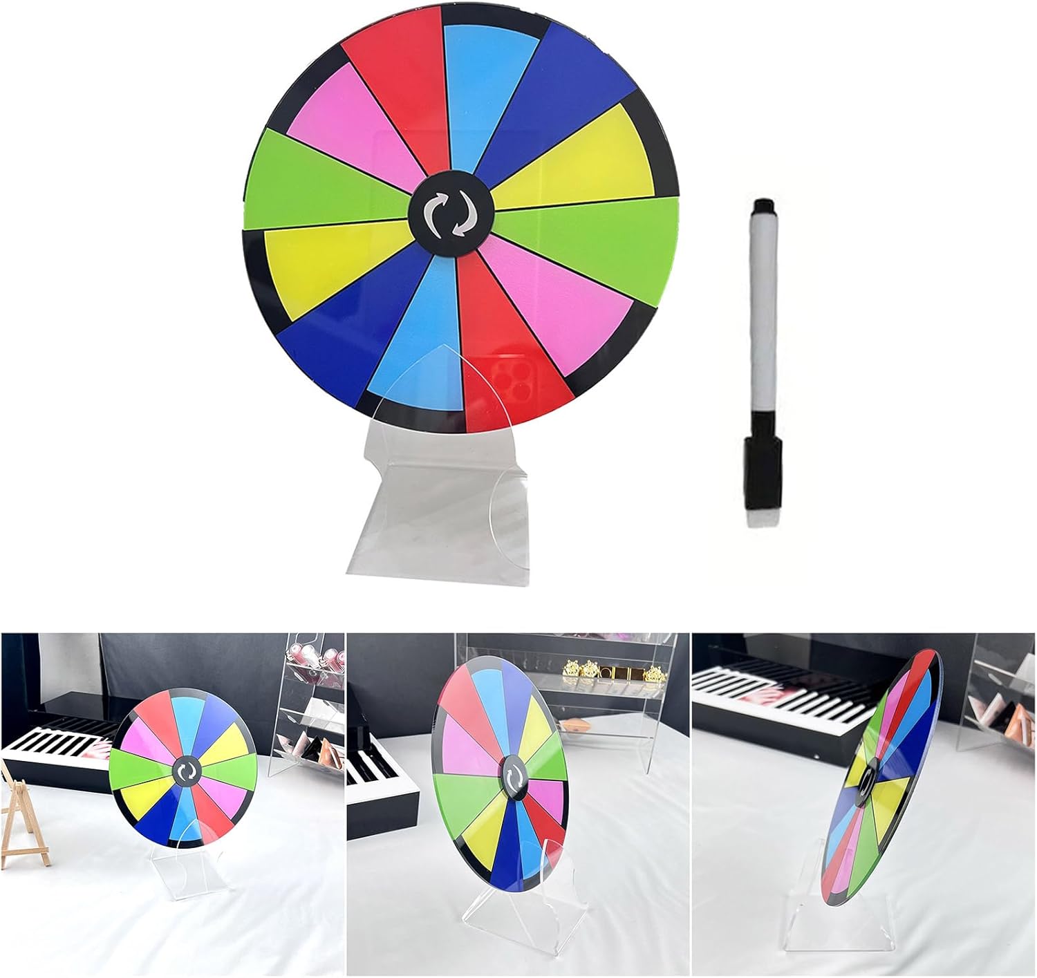 Questo premio è adatto per varie attività commerciali, come fiere, carnevale, raccolte fondi e altro ancora. Può attirare l'attenzione degli altri e creare un'atmosfera divertente Con cuscinetto rotante e piano per garantire una maggiore rotazione e una rotazione più fluida, questa piastra girevole da tavolo offre una buona La ruota colorata può essere posizionata sul tavolo, rendendola possibile utilizzarla in diverse occasioni, ideale per spettacoli, carnevale, feste, supermercati La ruota da tavolo presenta una divisione a forma di ventaglio arcobaleno che consente di personalizzare i premi o i premi in base ai diversi modi di gioco La base acrilica fornisce stabilità e uso a lungo termine. La piastra girevole può essere trasportata in molti luoghi e posizionata su qualsiasi scrivania piatta