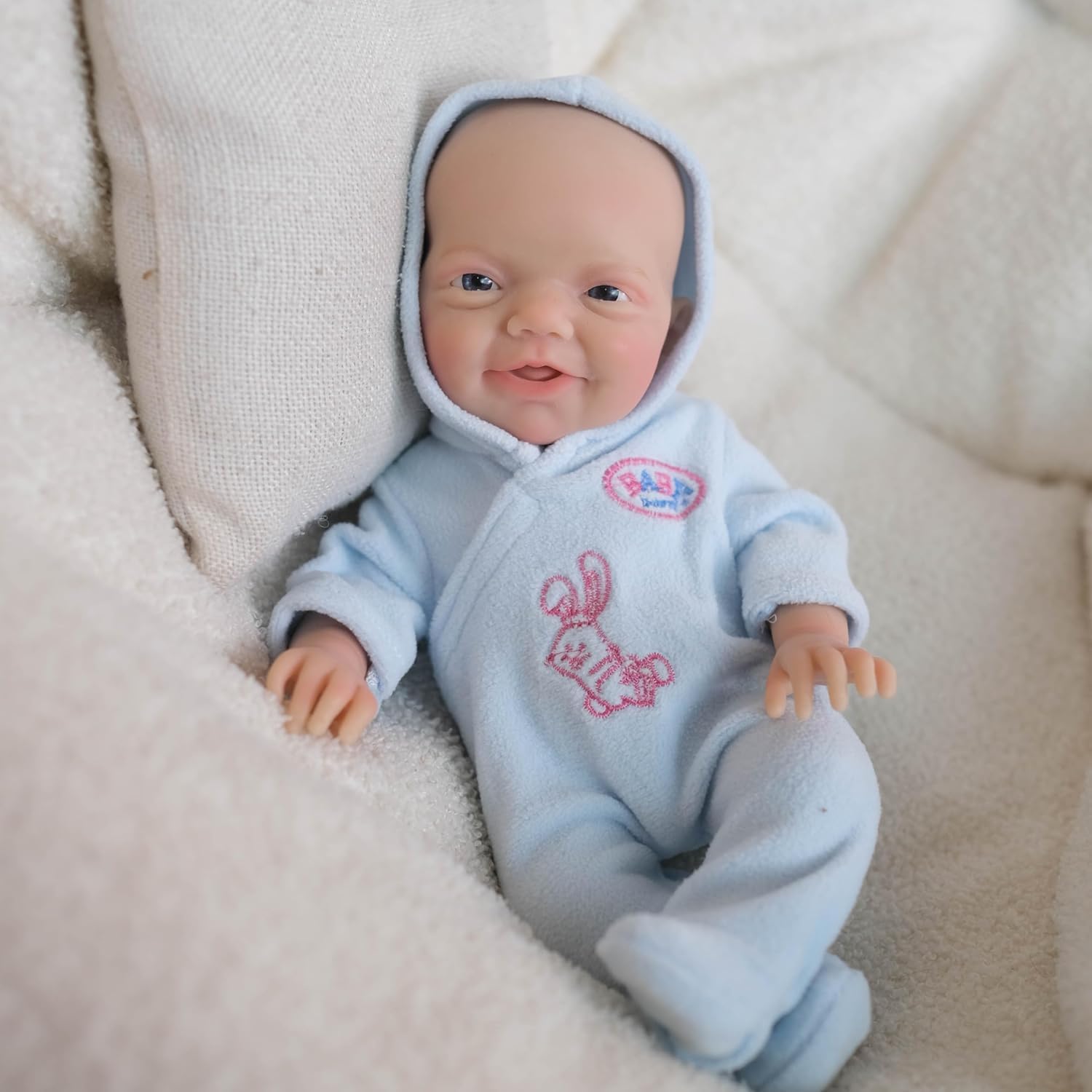Bambola in silicone solido: lui è Charlie, un piccolo neonato sorride dolcemente, la sua dimensione è di 20,3 cm, ha morbidi arti in silicone pieno e corpo in silicone pieno lo fa sentire il vero bambino quando tenuto tra le braccia Mini bambola: questa bambola reale indossa un morbido abito blu di cotone, un simpatico berretto sulla testa, puoi vestirla con vestiti di dimensioni micro bambino Dettagli fatti a mano: le sopracciglia dipinte a mano sono squisite e reali, lo rendono grazioso, le piccole dita rugose e le dita dei piedi brillano di fard, le sue vere espressioni sono irresistibili Bambola anatomicamente corretta: la bambola in silicone liquido ha parti intime con il ragazzo, quindi è un bambino anatomicamente corretto Bambola mobile: gli arti sono snodabili e mobili, il bambino può sedersi, può sdraiarsi, può entrare in acqua per lavarsi; non può stare in piedi o parlare Contenuto della confezione: 1 bambola Reborn, 1 vestito Regalo perfetto: le bambole Reborn sono la buona scelta per regali di Natale o di compleanno dei bambini, aiutano il bambino a sviluppare abilità premurose e socio-cognitive, ideali per accompagnatori e collezionisti dei nonni Certificazione di sicurezza: conforme ai requisiti di sicurezza ASTM F963 e EN71 per bambini dai 3 anni in su, sicuro per i vostri bambini