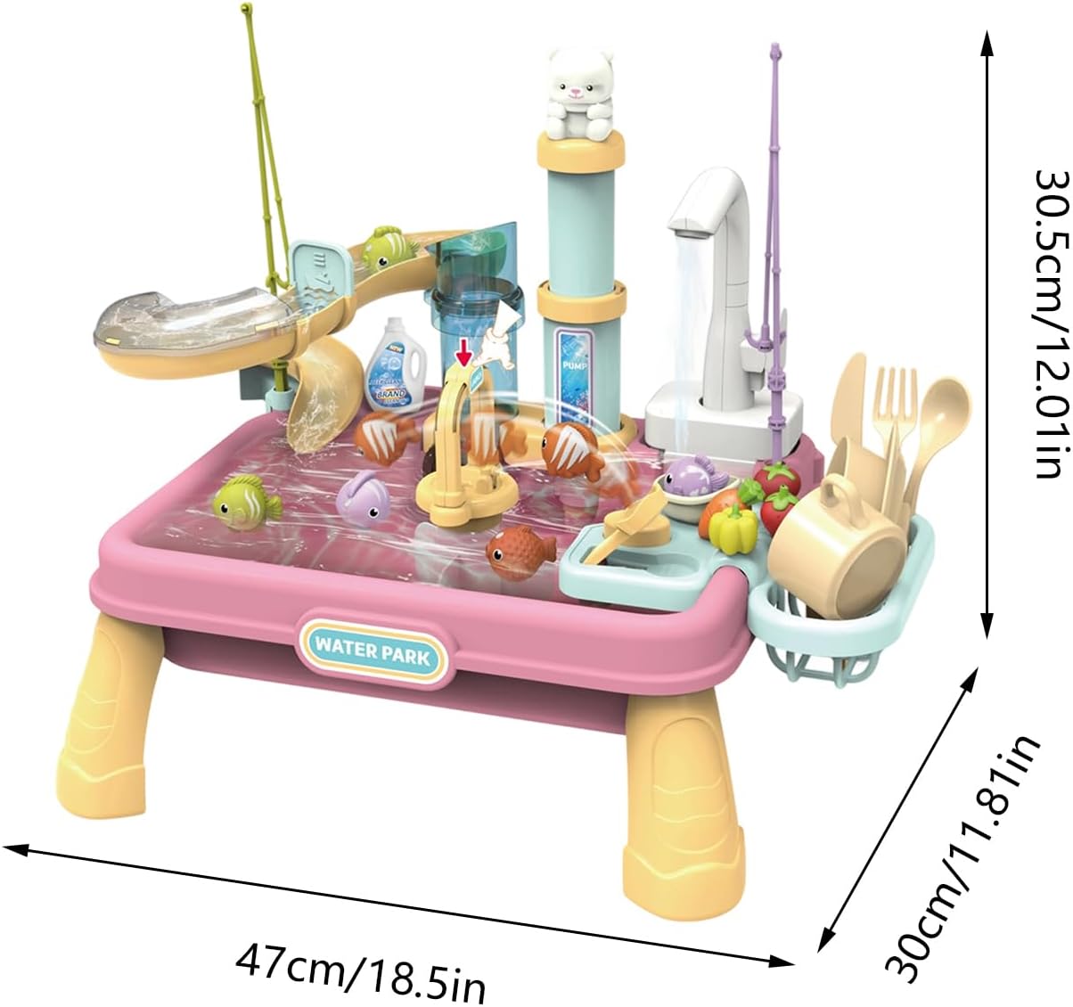 Design di stabilità migliorato: caratterizzato da una struttura di rinforzo laterale abbinata a un avanzato di distribuzione del peso, questa falda di sabbia fornisce stabilità anche durante l'uso energico mentre le sue superfici resistenti allo slip migliorano la convenienza Tabella di esplorazione sensoriale: dotato di accessori interattivi e opzioni di controllo 'acqua, questo tavolo immersivo per il gioco 'acqua promuove il colore e l'esplorazione tattile migliorando il coordinamento motorio fine per le esperienze di gioco coinvolgenti Stazione di esperimento dinamico: dotato di un meccanismo di sollevamento idraulico, questa falda di sabbia crea scenari di esperimento di fisica coinvolgenti che promuovono il pensiero sistematico e la comprensione causale, fornendo un'esperienza interattiva Design interattivo coinvolgente: con un design portatile staccabile, supporta momenti interattivi per genitore-figlio e amplia le possibilità di gioco fantasiose combinando sabbia e acqua in attività coinvolgenti Esperienza di gioco interattivo: supporta la crescita sociale con compiti di pesca simulati e caratteristiche di gioco di ruolo, creando opportunità di interazione emotiva in un ambiente dinamico di gioco d'acqua aperta progettata per i bambini