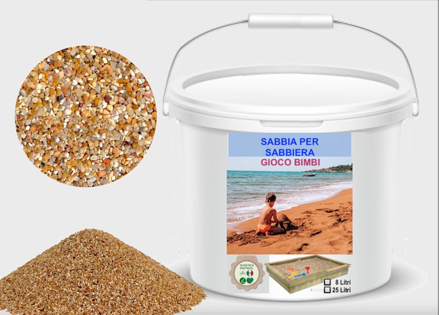 ✅ SABBIA FINE IDEALE PER IL GIOCO DEI BAMBINI, ADATTA PER ACQUARI E PICCOLI ANIMALI. USATA PER POSA CENERI DI LOCALI ✅ COLORE GRIGIO o BIANCO CARAIBICO NATURALE. PRODOTTO TOTALMENTE IN ITALIA. SECCHOO DA 25 KG. LA SABBIA E' DI GRANA FINISSIMA E FACILE DA MODELLARE, QUINDI VERAMENTE PULITA E ADATTA AL GIOCO DEL BAMBINI. SUBISCE UN CONTROLLO FREQUENTE DURANTE LA PRODUZIONE CHE NE GARANTISCE LA QUALITA'Sabbia da gioco naturale, 25 kg,PURA Purezza: esente da inquinanti quali gesso, anidride,silice amorfa, miche, sostanze organiche vegetali, argillose e/o friabli. ✅ Grana arrotondata non frantumata 0,1-0,3 mm, BIANCA ✅ 1 confezione singola da 8 0 25 kg (Secchio con coperchio in PE). Comodissimo per lavare la sabbia e stoccarla nei periodo invernale. ✅ MADE in ITALY Sabbia da gioco, privo di corpi estranei Sabbia lavata e seccata Ottima per far giocare il tuo bambino Prodotto di qualità