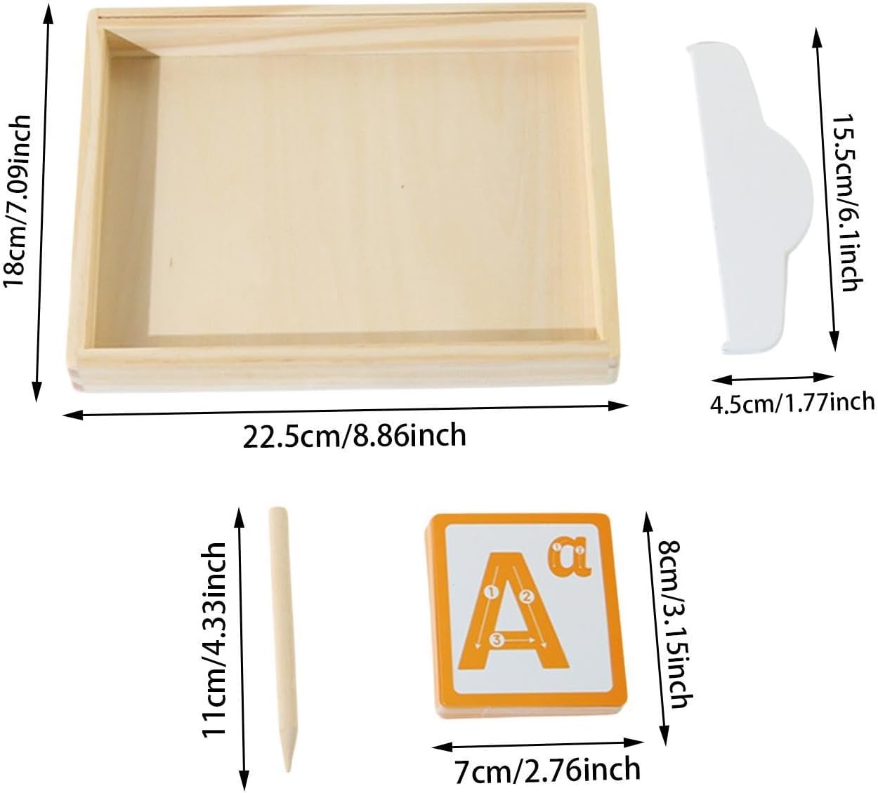 【 le capacità di coordinazione】Progettato per re la coordinazione occhiomano e le capacità motorie fini, questo contenitore di sabbia incoraggia i bambini a sviluppare le loro capacità di scrittura 【Materiale affidabile】Il nostro vassoio di sabbia è realizzato a mano in legno e carta con una sensazione e una levigatezza eccezionali, e i bordi sono lavorati e levigati per essere rotondi e lisci senza ferire le mani, il che è molto amichevole per le piccole mani carine dei bambini 【Scrittura e cognizione】I giocattoli consentono ai bambini di iniziare l'alfabeto, imparare a scrivere lettere, l'arte della sabbia. la creatività dei bambini, crea , 【Regalo】Tutti accessori sono confezionati nel contenitore di sabbia. Ottimo per bambini con difficoltà di apprendimento. Buon regalo di giocattoli di apprendimento per ragazzi e ragazze 【Giocattoli in legno per bambini con vassoio di sabbia】 Un vassoio di sabbia in legno fatto a mano, una penna in legno, strumento per levigare la sabbia, un sacchetto di sabbia, 36 carte bifacciali, che forniscono tutto il necessario per un'esperienza educativa arricchente