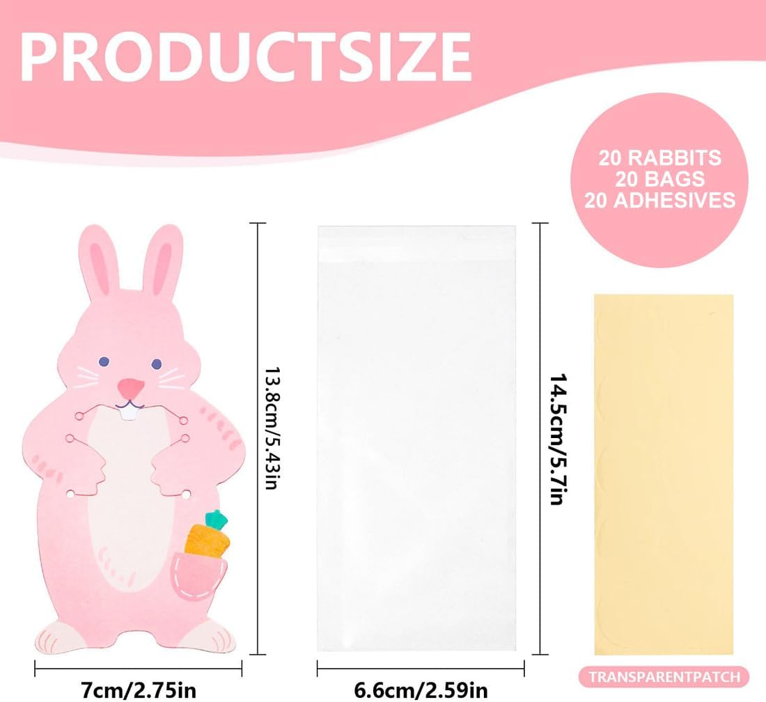 FORMA CARINA: questo set di bustine pasquali è decorato con simpatici e divertenti coniglietti rosa, aggiungendo un'atmosfera vivace a varie occasioni. Materiale di alta qualità: il sacchetto di caramelle è realizzato in materiale di alta qualità, il sacchetto trasparente è resistente e può contenere con sicurezza tutti i tipi di caramelle e snack. Pratico: design ragionevole delle caramelle pasquali, la borsa trasparente è comoda per caricare e scaricare oggetti, adatta per feste, festival e altre occasioni come confezione regalo di accompagnamento. Set di sacchetti di Pasqua: contiene 20 sacchetti di caramelle, che si tratti di una festa di famiglia o di attività aziendali, può essere facilmente utilizzato. Versatile: il sacchetto per caramelle può contenere caramelle, piccoli giocattoli, noci e altri piccoli oggetti, ideale per decorazioni per feste e confezioni regalo.