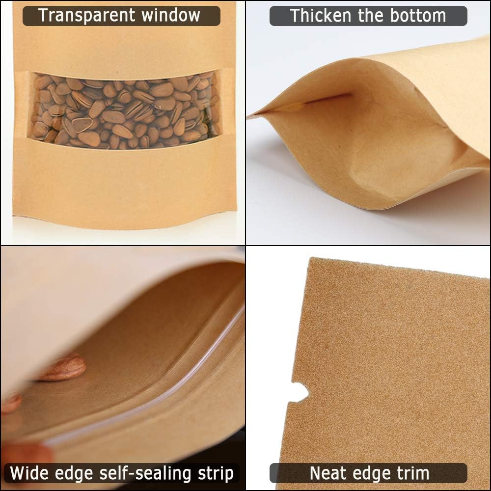 🌿 【Pratico sacchetto di carta kraft】 Il nostro sacchetto di carta kraft marrone è molto adatto per casa, panetteria, bar, ristorante, pasticceria, negozio di alimentari, ecc. È utilizzato per confezionare caramelle, noci, chicchi di caffè, spezie, biscotti, tè, snack, ecc. 🌿 【Design con finestra trasparente】 Questi sacchetti di carta con finestra hanno un design con finestra trasparente, che rende chiaramente visibile il contenuto della borsa, in modo da poter identificare rapidamente il prodotto desiderato. 🌿 【Materiali riciclabili】 Il piccolo sacchetto di carta marrone realizzato in carta kraft naturale e plastica CPP, sano ed ecologico, riutilizzabile. La chiusura a pressione è facile da aprire e chiudere e ha anche una buona tenuta. 🌿 【Superficie interna in cera resistente all'acqua】 La superficie interna in cera alimentare naturale pura può impedire l'ingresso di umidità e polvere, evitare che noci, tè e altri alimenti si bagnino e ammuffiscano. Molto adatto per confezionare alcuni alimenti che devono essere conservati in un ambiente asciutto 🌿【Quantità sufficiente】Che tu lo usi come sacchetto di carta per l'imballaggio per i tuoi clienti o cucini snack a casa e distribuiscili ai tuoi amici e vicini, 150 pezzi sono sufficienti per soddisfare le tue esigenze.