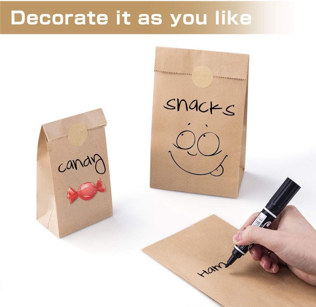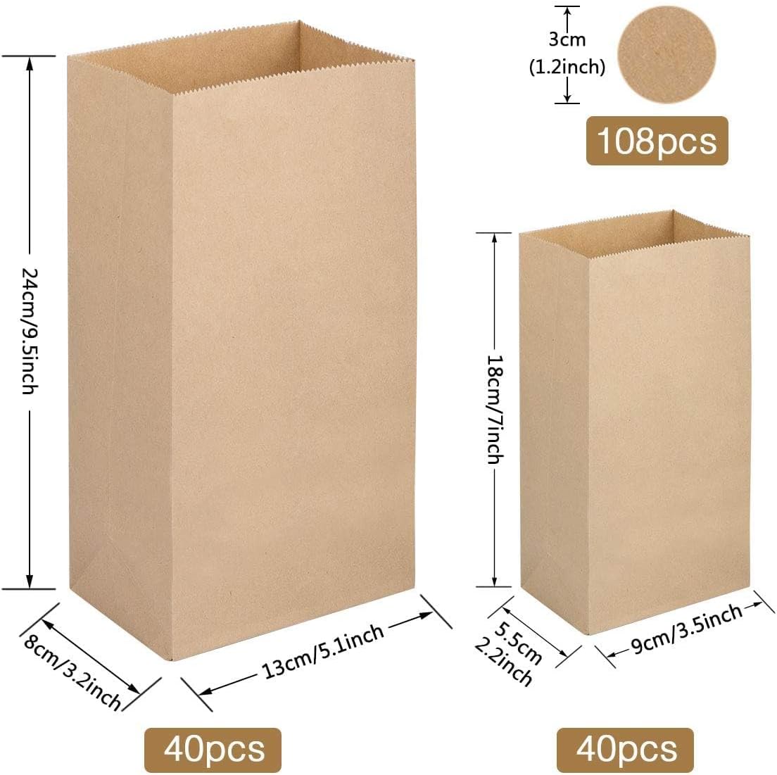 Ecologici e senza BPA: i sacchetti di plastica non sono degradabili e contengono BPA chimico pericoloso che può causare diverse malattie potenzialmente letali. Questi sacchetti di carta sono realizzati in carta kraft ecologica per proteggere l'ambiente e la salute. Sicuro e inodore: i sacchetti di carta kraft sono realizzati con carta kraft di alta qualità, inodore, atossica e sicura. Fai da te: entrambe le superfici laterali dei sacchetti di carta sono piatte e lisce. Perfetto per scrivere, disegnare o dipingere con penne a sfera, matite colorate, pennarelli o matite acquerellabili. Ideale per artigianato, confezioni regalo, ecc. Facile da usare - Il set contiene 40 sacchetti di carta grandi (24*13*8 cm) e 40 sacchetti di carta piccoli (18*9*5,5 cm) per soddisfare le diverse esigenze. Inoltre viene fornito con 108 adesivi di bloccaggio per evitare che il contenuto cada. Ampia Applicazione - I sacchetti regalo in cartone sono adatti per l'uso domestico, nei negozi di articoli da regalo, nei negozi al dettaglio, nei negozi di alimentari e nel settore dell'ospitalità. Ideale per panini, dolci, biscotti, popcorn, pane, frutta, verdura, pasta, semi di cereali e fiori e altro ancora.