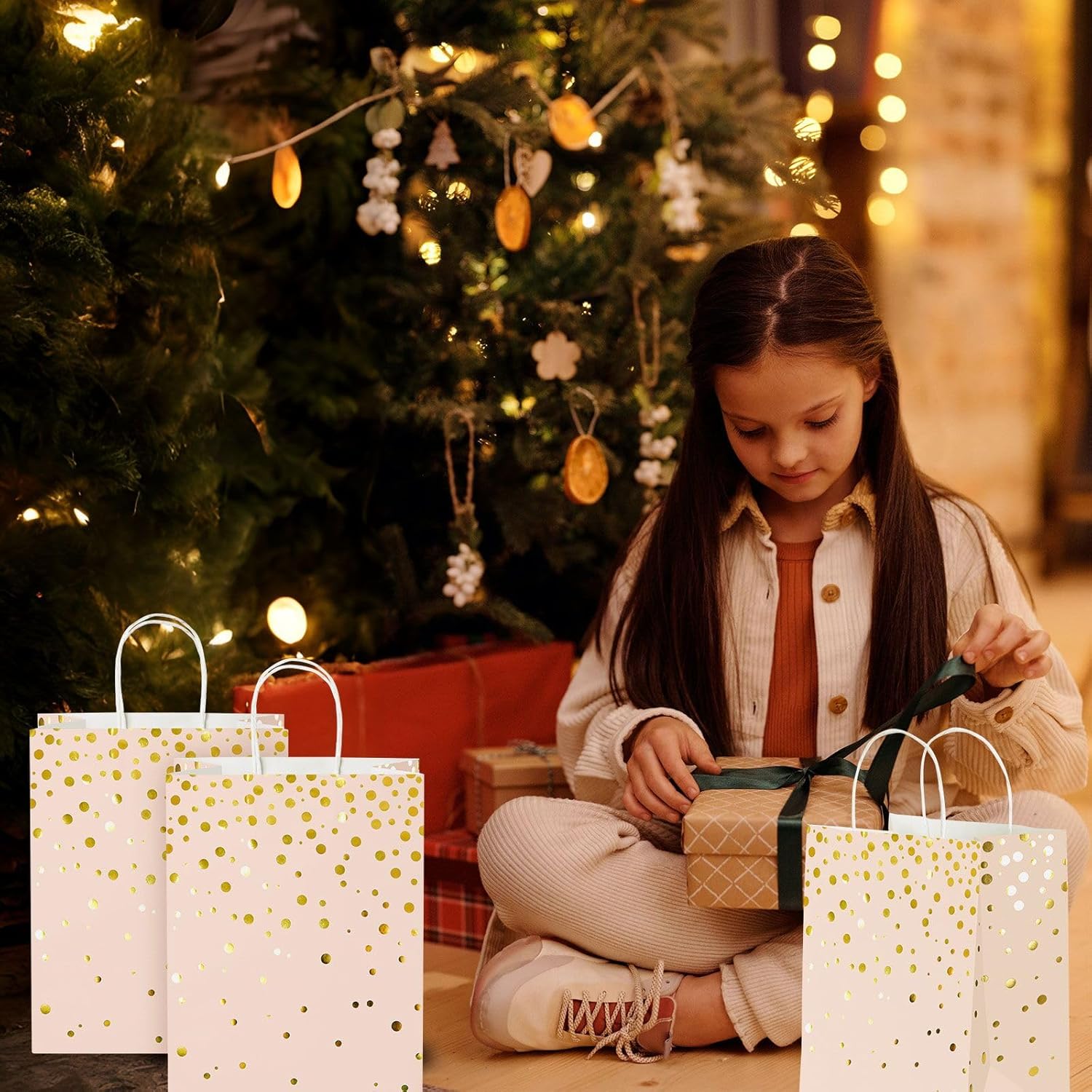 Set di 24 sacchetti di carta grandi con pois in lamina d'oro - larghezza: 20 cm, soffietto: 14 cm, altezza: 25,5 cm