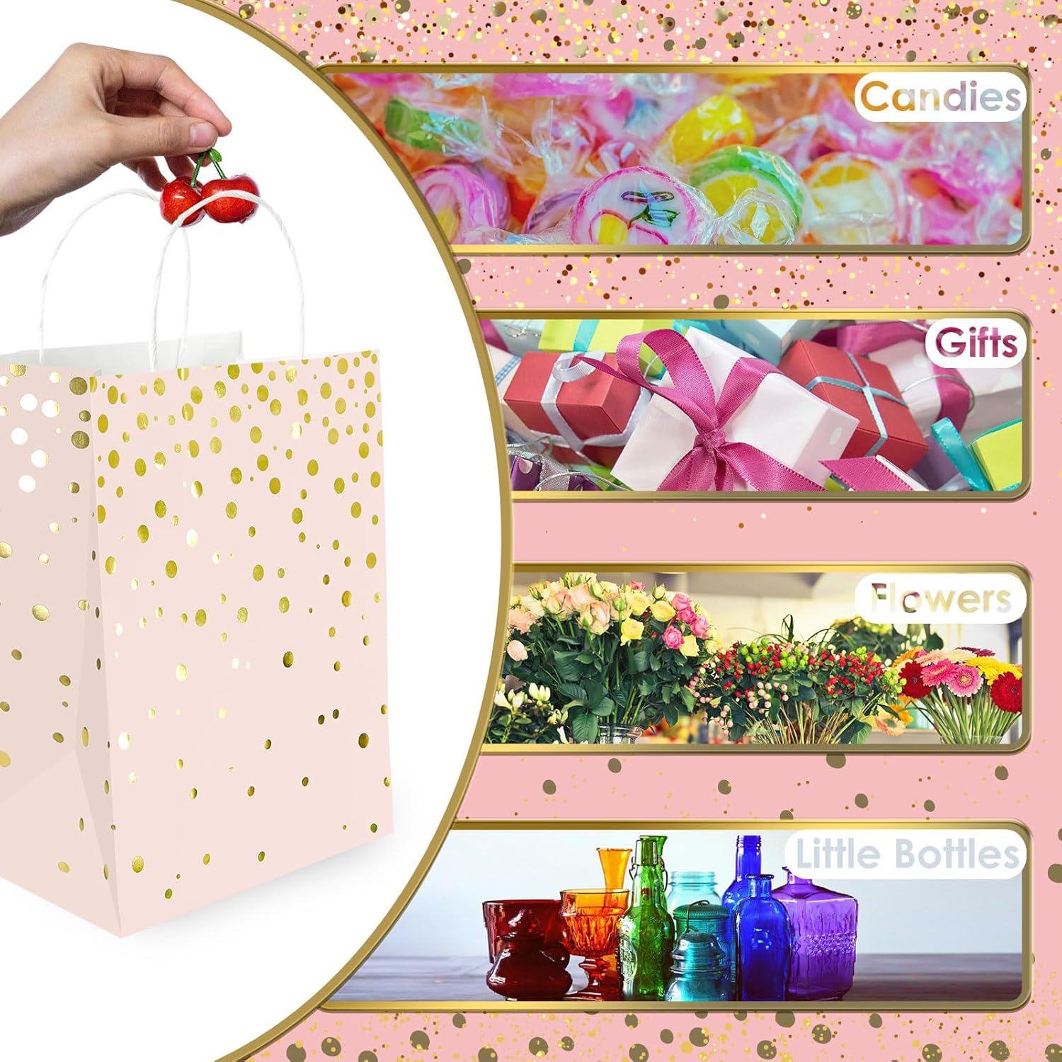 Sacchetti di carta oro rosa Confezione da 24 sacchetti di carta grandi sacchetti regalo con manico 25 x 20 x 14 cm Sacchetti di carta Kraft riutilizzabili, decorazione di carta