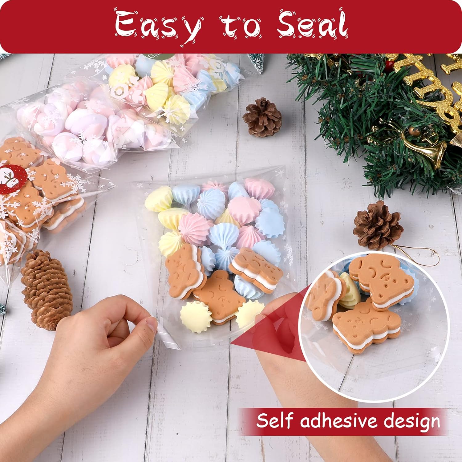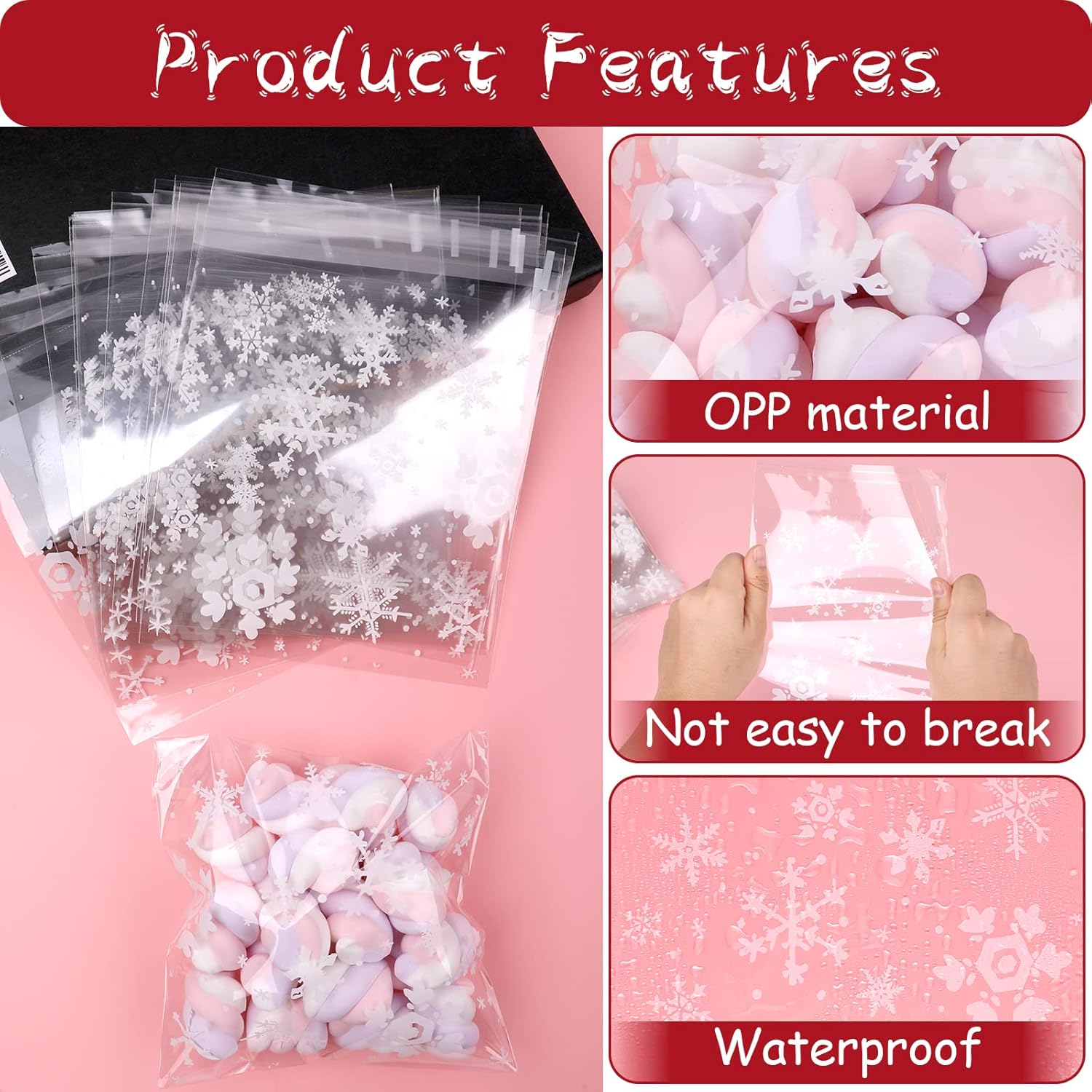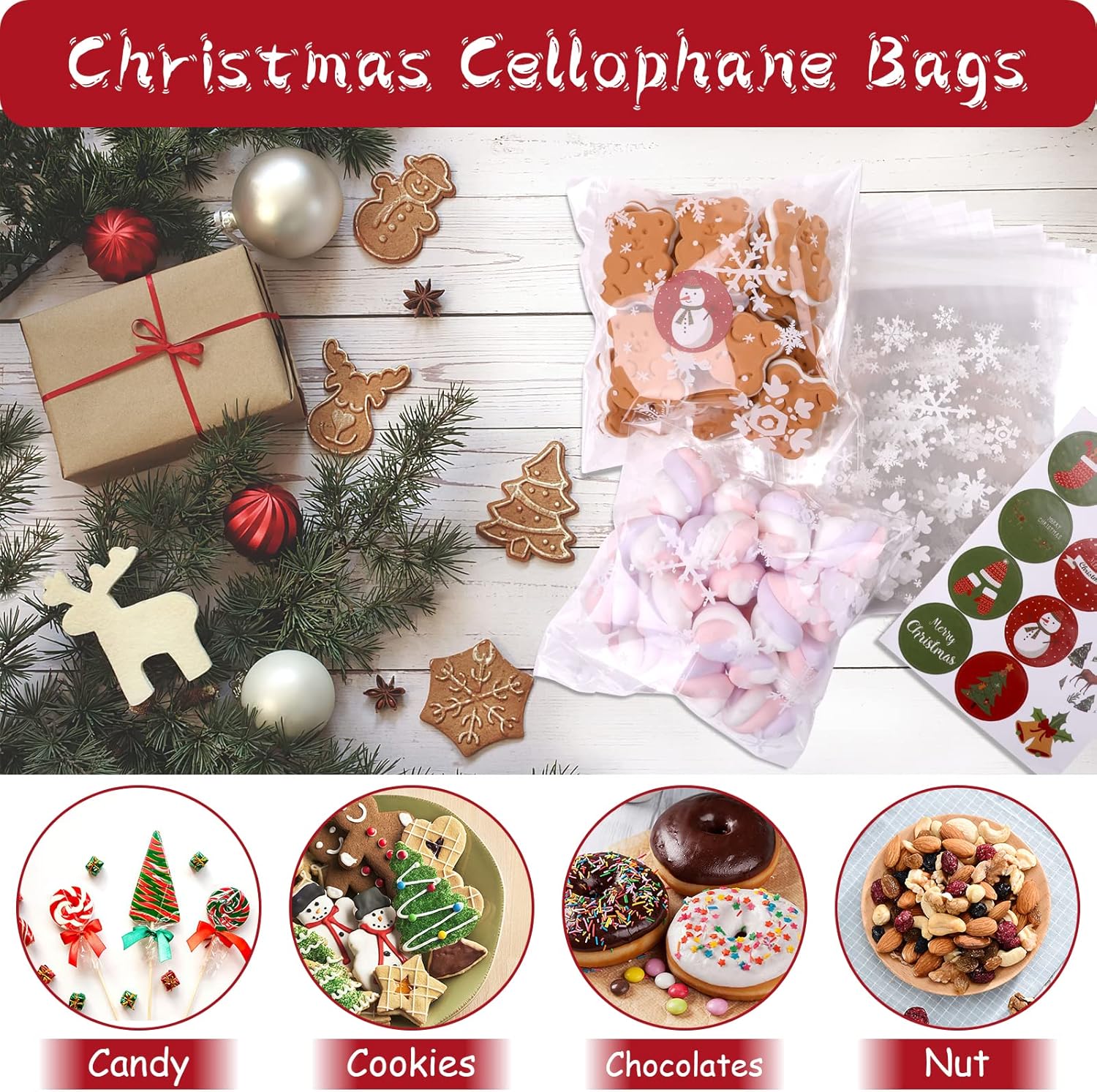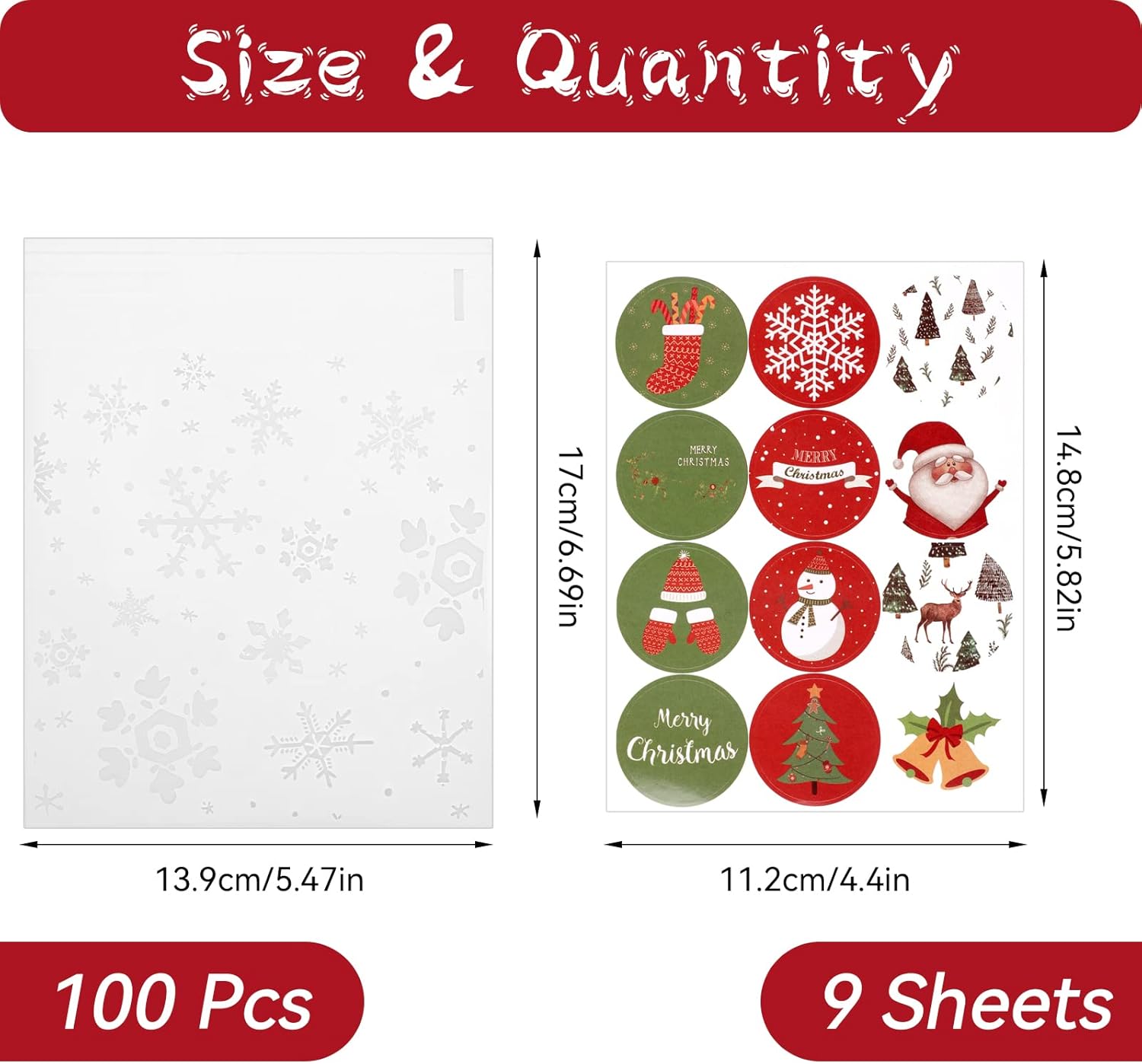 【KIT SACCHETTI PER BISCOTTI NATALIZI】 La confezione contiene 100 sacchetti per biscotti natalizi (14x14 cm) e 9 fogli/108 pezzi di adesivi natalizi. La quantità è sufficiente per le tue esigenze, perfetta per dolcetti fatti in casa o per decorare regali di Natale. 【DESIGN FIOCCHI DI NEVE】 I nostri sacchetti di cellophane sono appositamente progettati per il Natale, stampati con motivi a fiocchi di neve su entrambi i lati. Questi modelli possono portare una forte atmosfera invernale e creare un'atmosfera natalizia per il tuo evento. 【MATERIALE ALIMENTARE】 I nostri sacchetti per biscotti natalizi sono realizzati in materiale OPP, materiale ecologico, sicuro da usare, adatto per l'imballaggio alimentare e può mantenere il cibo fresco. 【FACILE DA SIGILLARE】 Questi sacchetti di cellophane sono autoadesivi, non è necessario utilizzare altri strumenti, adatti per sigillare per mantenere il cibo fresco ed evitare che cada. E decora anche il tuo sacchetto di caramelle con adesivi natalizi. 【UTILIZZO ESTESA】 I sacchetti di cellophane possono contenere vari piccoli oggetti come regali, caramelle, biscotti, lecca-lecca, snack, cioccolatini, ecc. Ideale per compleanni, matrimoni, decorazioni per feste di Natale.