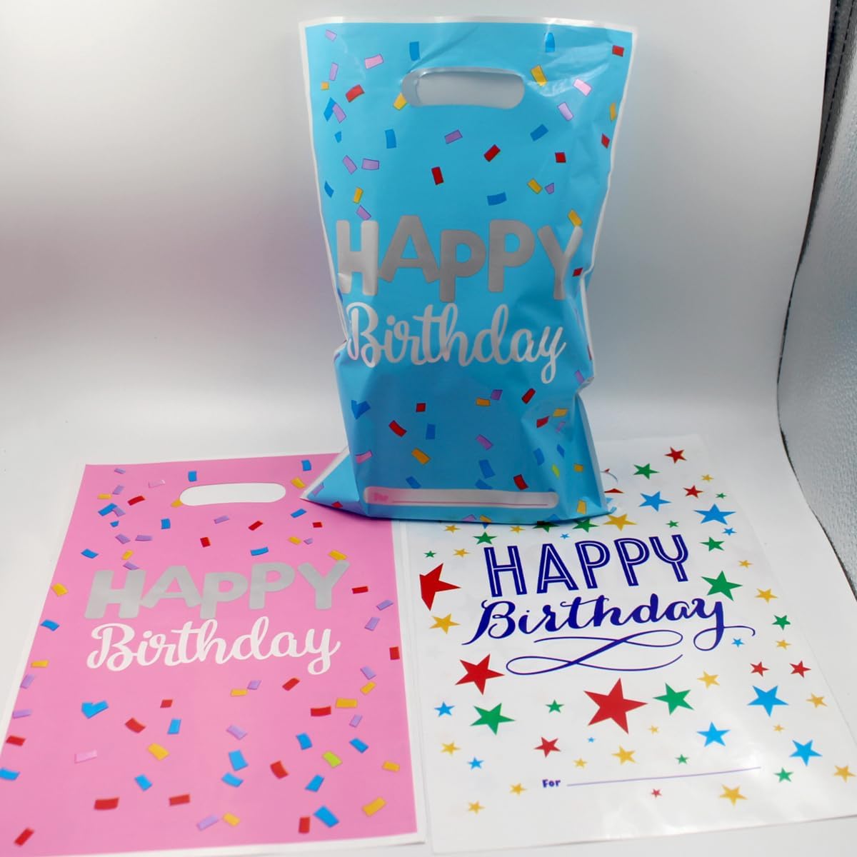 Bellissime borse in alluminio spesso: le borse da festa per bambini sono realizzate in un foglio di alluminio spesso con un adorabile design a forma di cartone animato, che crea un'atmosfera più allegra alla festa. Ragazze e ragazzi lo adoreranno. Sacchetti regalo di compleanno per bambini: la dimensione di ogni sacchetto è 25 cm x 16,5 cm/9,84 x 6,5 pollici, perché i sacchetti per bomboniere sono una varietà di piccoli giocattoli, caramelle e biscotti, ecc. Design carino e pratico: stelle, palloncini, nastri, torte e design Happy Birthday, colorati e carini, da tenere in mano per un facile accesso e trasporto, rendendoli perfetti per le feste. Vari colori e stili: sacchetti regalo fai-da-te per il compleanno dei bambini, colori vivaci, superficie liscia e lucida, i tuoi bambini lo adoreranno. Riceverai: 30 sacchetti per feste di compleanno in plastica, puoi combinare sacchetti di colori diversi per creare regali diversi. I sacchetti regalo con manico esprimono i tuoi migliori auguri incartando regali per gli altri.