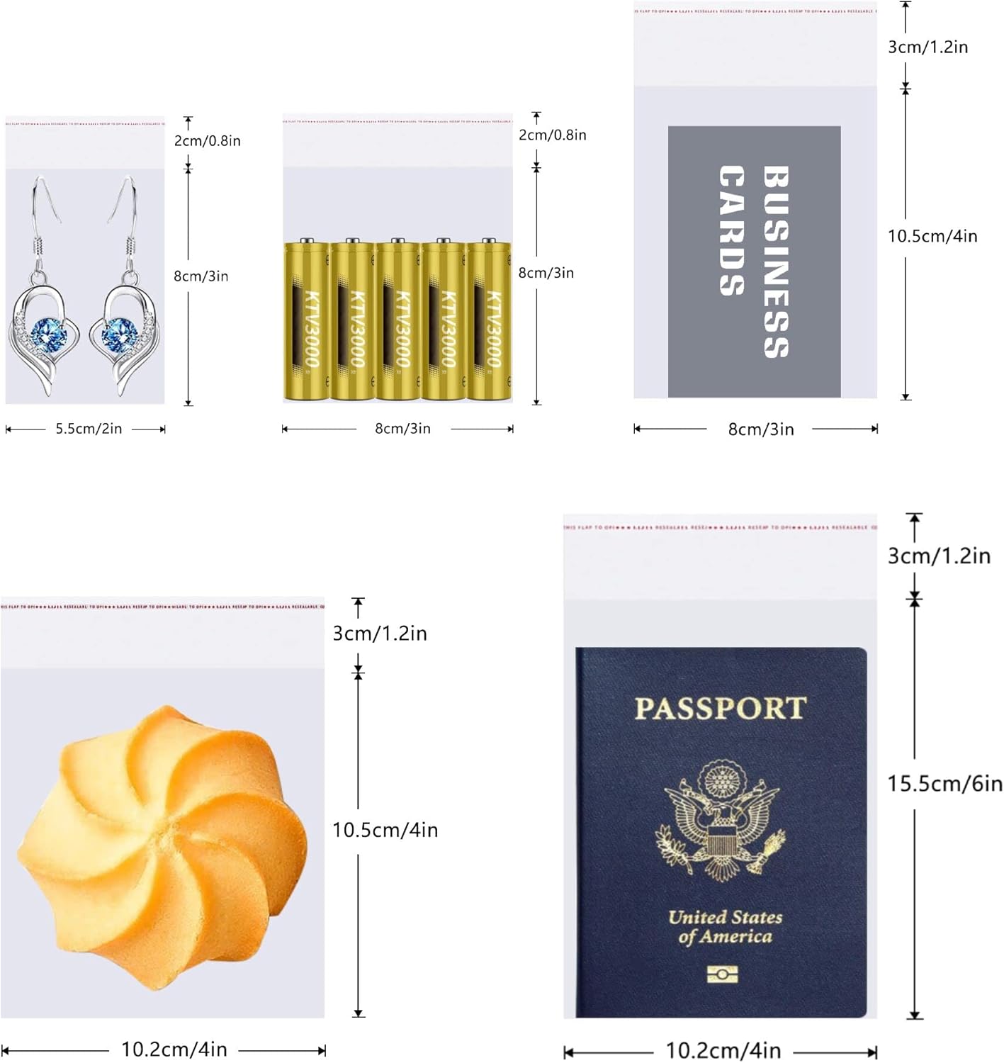 Buste trasparenti autosigillanti 300 pezzi, 10,2x15,5 cm (patta non inclusa), spessore 50 µm (bifacciale), senza ventilazione. Certificato FDA e RoHS e CE/1935/2004 e LFGB tedesco, sicuro per il contatto con gli alimenti, realizzato in nuovo materiale di polipropilene (OPP), privo di acidi, ecologico e durevole. Mantieni il tuo cibo fresco e gustoso più a lungo, prolungane la durata. E proteggi gli oggetti da umidità e polvere. I sacchetti di plastica con adesivo flessibile e richiudibile offrono ai tuoi clienti o parenti un facile disimballaggio. Ideale per prodotti da forno, biscotti, gioielli, perline, orecchini, caramelle, lecca-lecca, sapone, orsetti gommosi, cioccolato, regali, regali di compleanno, artigianato, ecc.