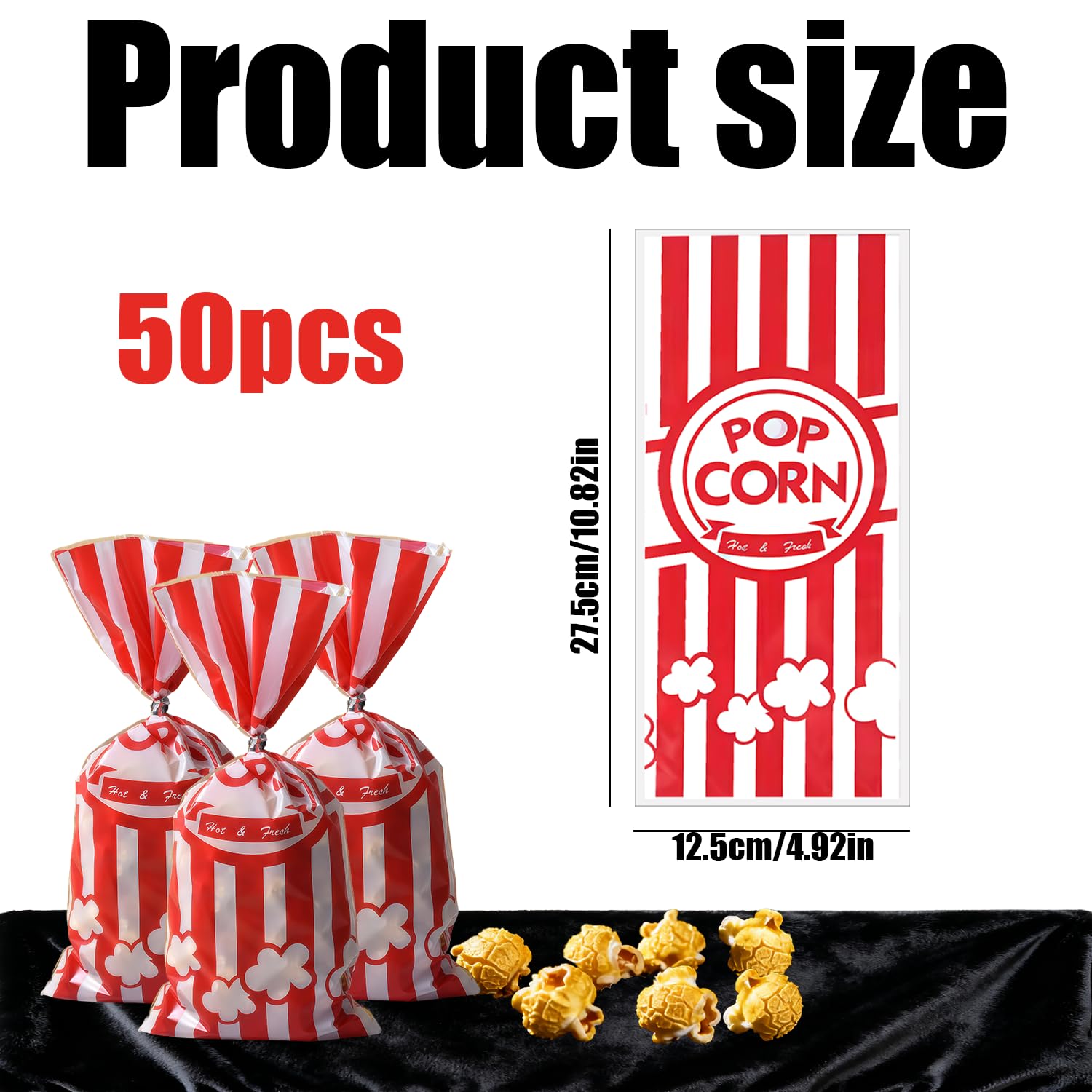 【SACCHETTI PER POPCORN】Il nostro set contiene 50 piccoli sacchetti per popcorn, una quantità sufficiente per soddisfare le tue esigenze quotidiane. Ogni sacchetto per popcorn da festa è largo 9 cm e alto 21 cm, la capacità è abbastanza grande da contenere più snack.,Materiale di alta qualità: i sacchetti per popcorn sono realizzati in carta di alta qualità e sono leggeri. I sacchetti per popcorn hanno anche un rivestimento resistente all'olio, il materiale è spesso e l'olio non penetra facilmente.,Design unico: questi sacchetti per popcorn hanno un design retrò a strisce rosse e bianche con vari elementi di popcorn. Semplice ed elegante, vivace e interessante e crea facilmente un'atmosfera di festa.,AMPIO UTILIZZO: puoi utilizzare questi sacchetti non solo per popcorn, ma anche per una varietà di cibi, crocchette di pollo, biscotti e snack. Inoltre, puoi usarli per varie occasioni: cinema, picnic, feste, carneva, SERVIZIO POST-VENDITA: Grazie per il tuo supporto al nostro negozio, tutti i prodotti del negozio sono supportati post-vendita, se ci sono problemi con questo prodotto, contattaci, risolveremo il problema in tempo, sbrigati e aggiungilo al carrello