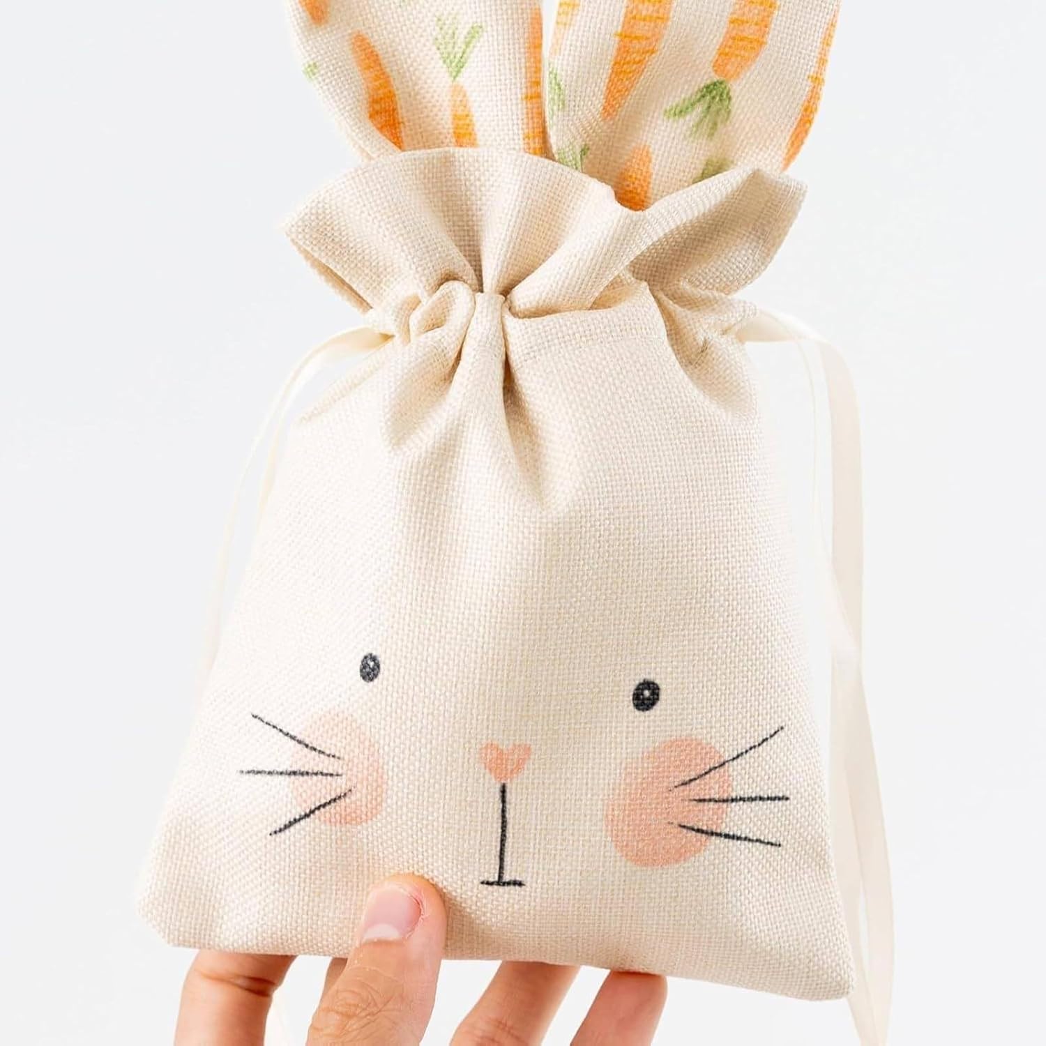 Robusto e materiale: questa borsa di stoffa con coniglietto pasquale è realizzata in iuta. Ha una struttura robusta e può sopportare un certo peso di oggetti. È molto flessibile e non facile da rompere dopo l'uso. Può essere utilizzato per varie attività di vacanza molte volte Design creativo e carino: il design di questa borsa da coniglietto pasquale combina simpatici volti di coniglietto, motivi morbidi e carote. È pieno di Pasqua e carino. Può istantaneamente il cuore di bambini e giovani e un'atmosfera gioiosa al festival Dimensioni adatte e pratiche: questa borsa pasquale misura circa 26 x 20 cm e sono circa 10,5 cm. La capacità può contenere un sacco di e piccoli regali, che è per le attività pasquali. Non è né troppo piccolo, ed è facile da trasportare e distribuire Comodo metodo di apertura e chiusura: questa borsa a forma di coniglietto ha coulisse su entrambi i lati. È possibile chiudere la borsa con una leggera trazione. L'operazione è semplice. Anche i bambini possono usarlo facilmente per oggetti che cadono, ed è comodo da riporre e trasportare Ampia gamma di usi: è molto adatto come borsa pasquale o sacchetto di caramelle. Può essere utilizzato anche per decorare la casa e come borsa per riporre piccoli oggetti. Ha molti usi e soddisfa varie esigenze