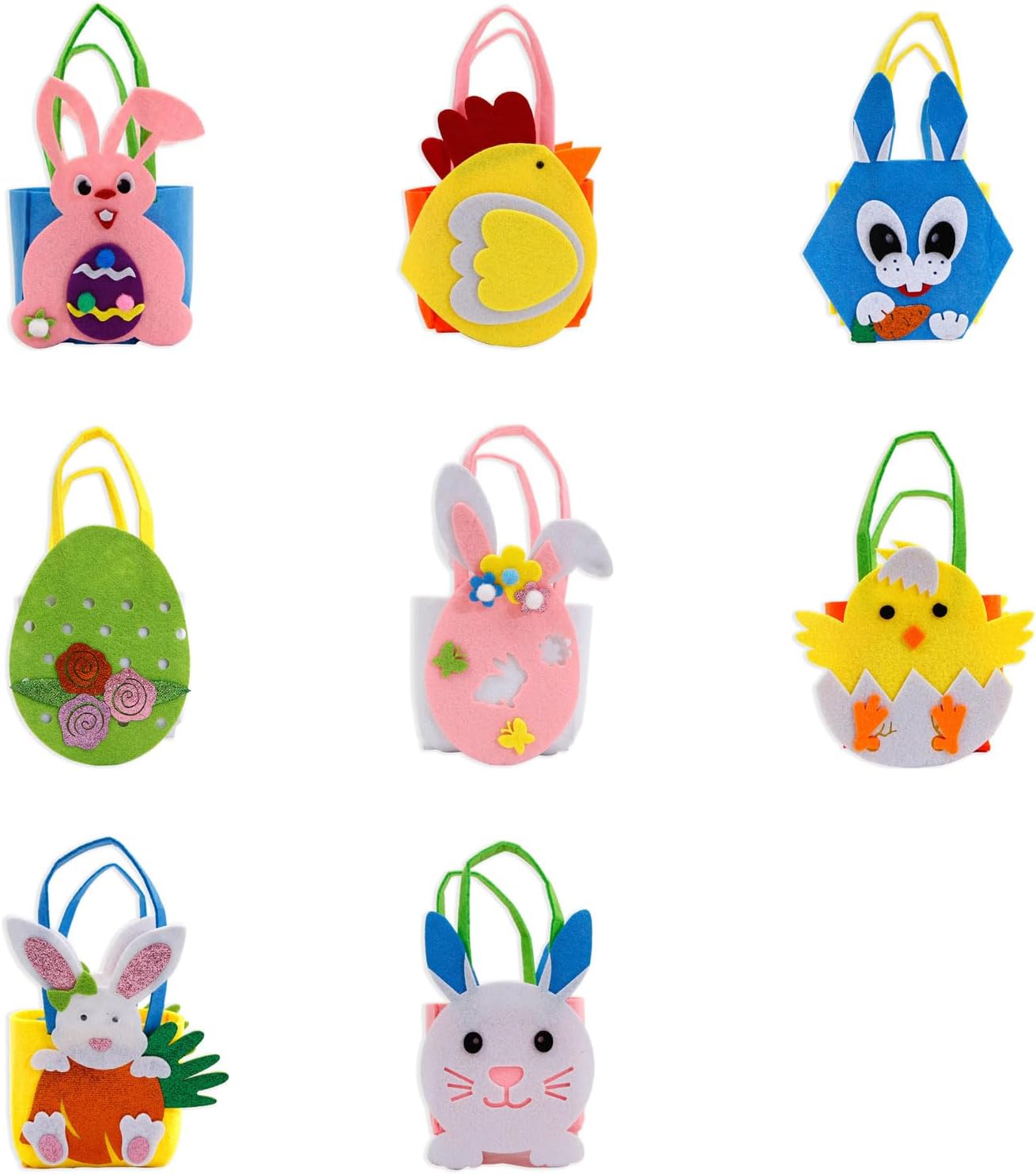 Adatto per bambini e famiglie che cercano di migliorare la creatività e le abilità pratiche attraverso attività coinvolgenti Utilizzare questi cestini pasquali riutilizzabili in feltro per decorare la casa, conservare stagionali o anche appendere alla parete per accento decorativo Per la caccia alle uova di Pasqua, artigianato di famiglia o come regalo di festa, queste borse aggiungono un tocco a qualsiasi celebrazione Realizzati in feltro, questi sacchetti sono facili da pulire, ideali per trasportare uova di Pasqua, caramelle e altri dolcetti festivi Festeggia la Pasqua con le nostre borse pasquali, con adorabili disegni di conigli e pulcini che combinano divertimento e praticità per qualsiasi esigenza di vacanza